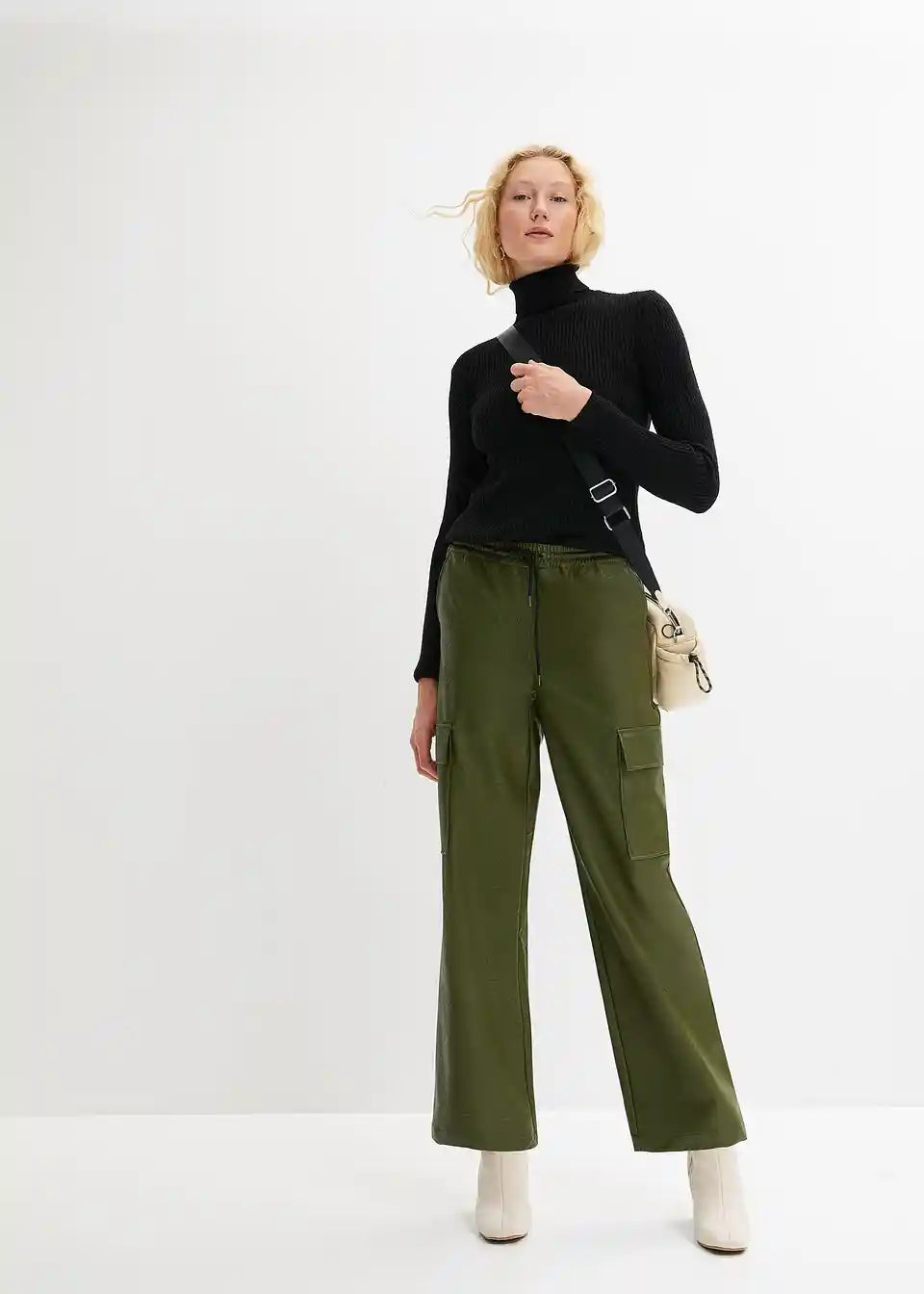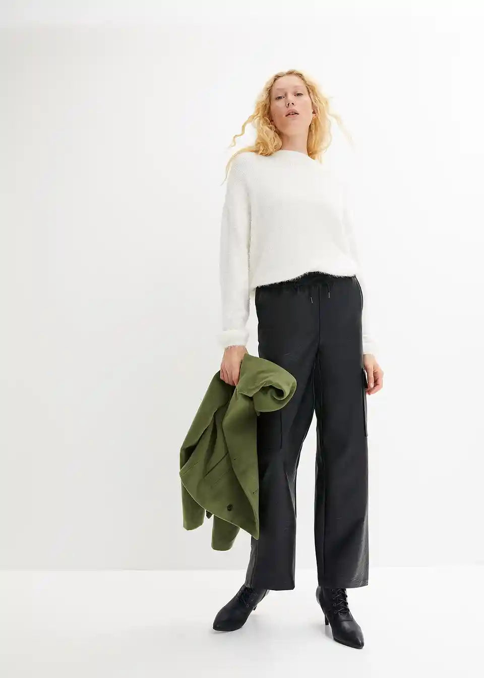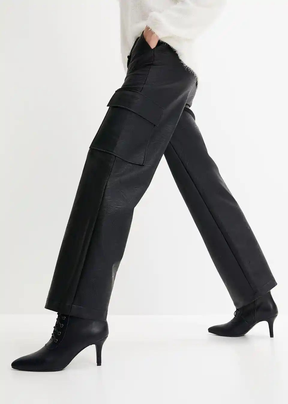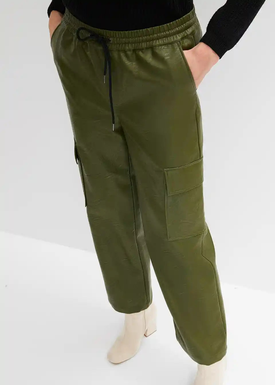 trendovske hlače iz umetnega usnja z elastičnim pasom