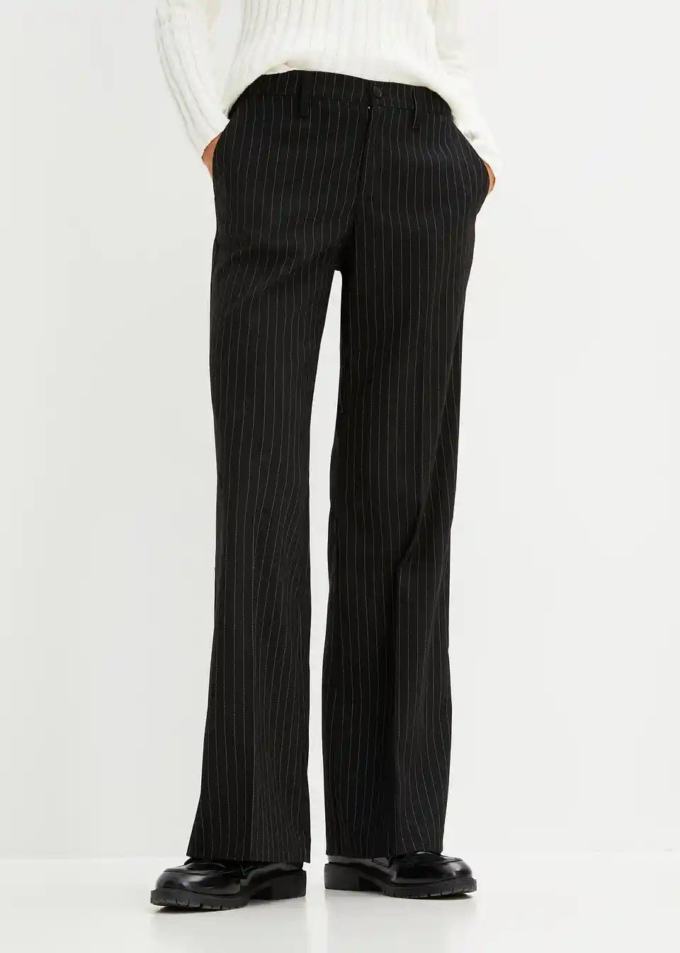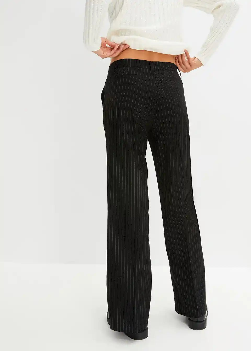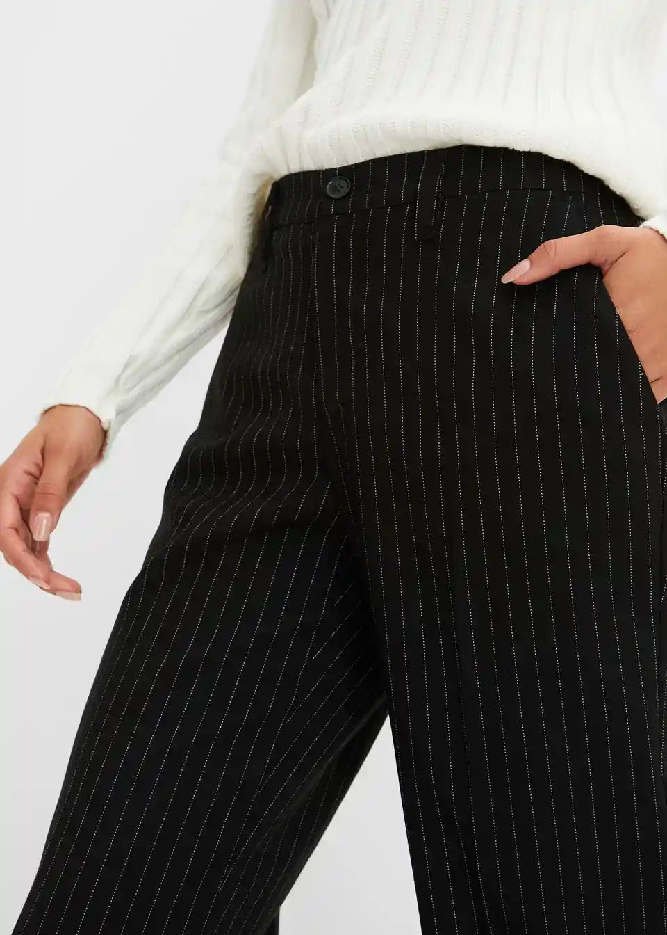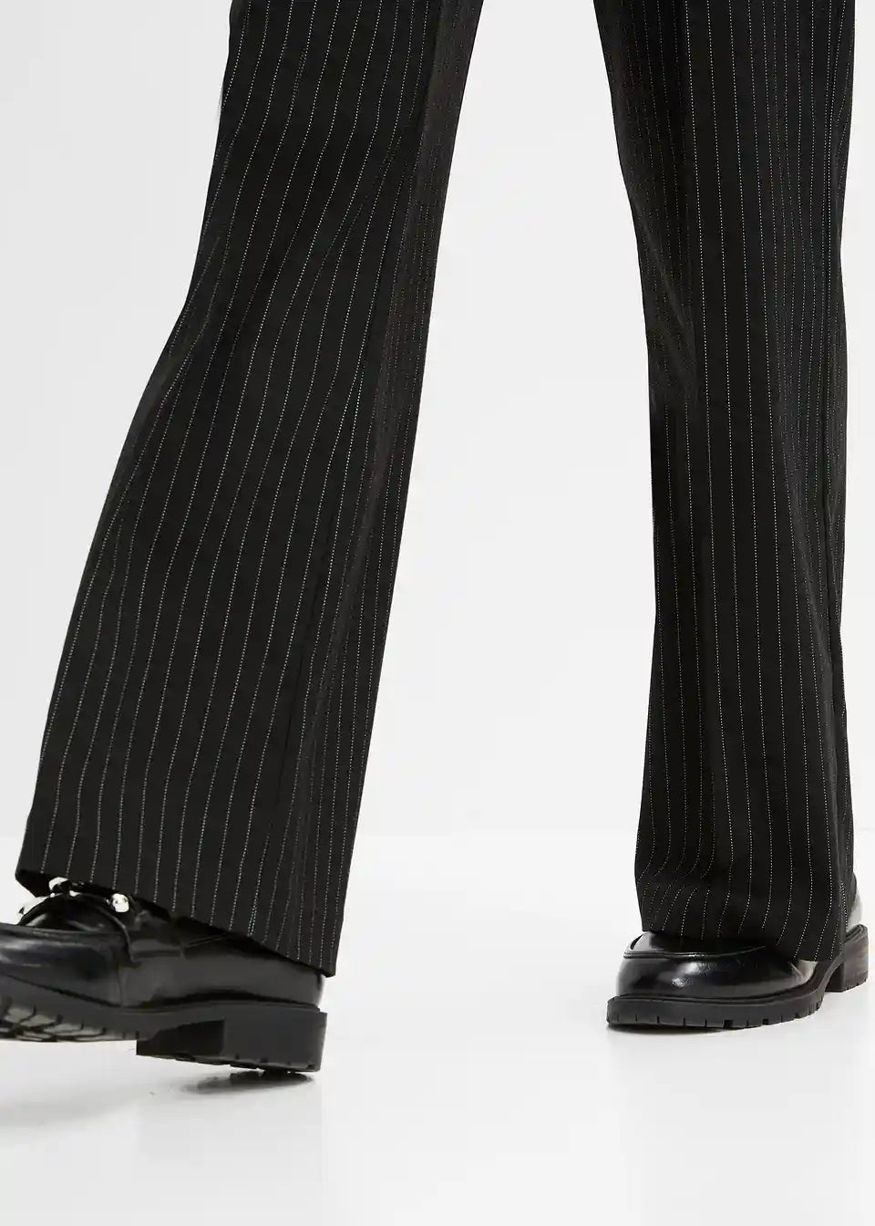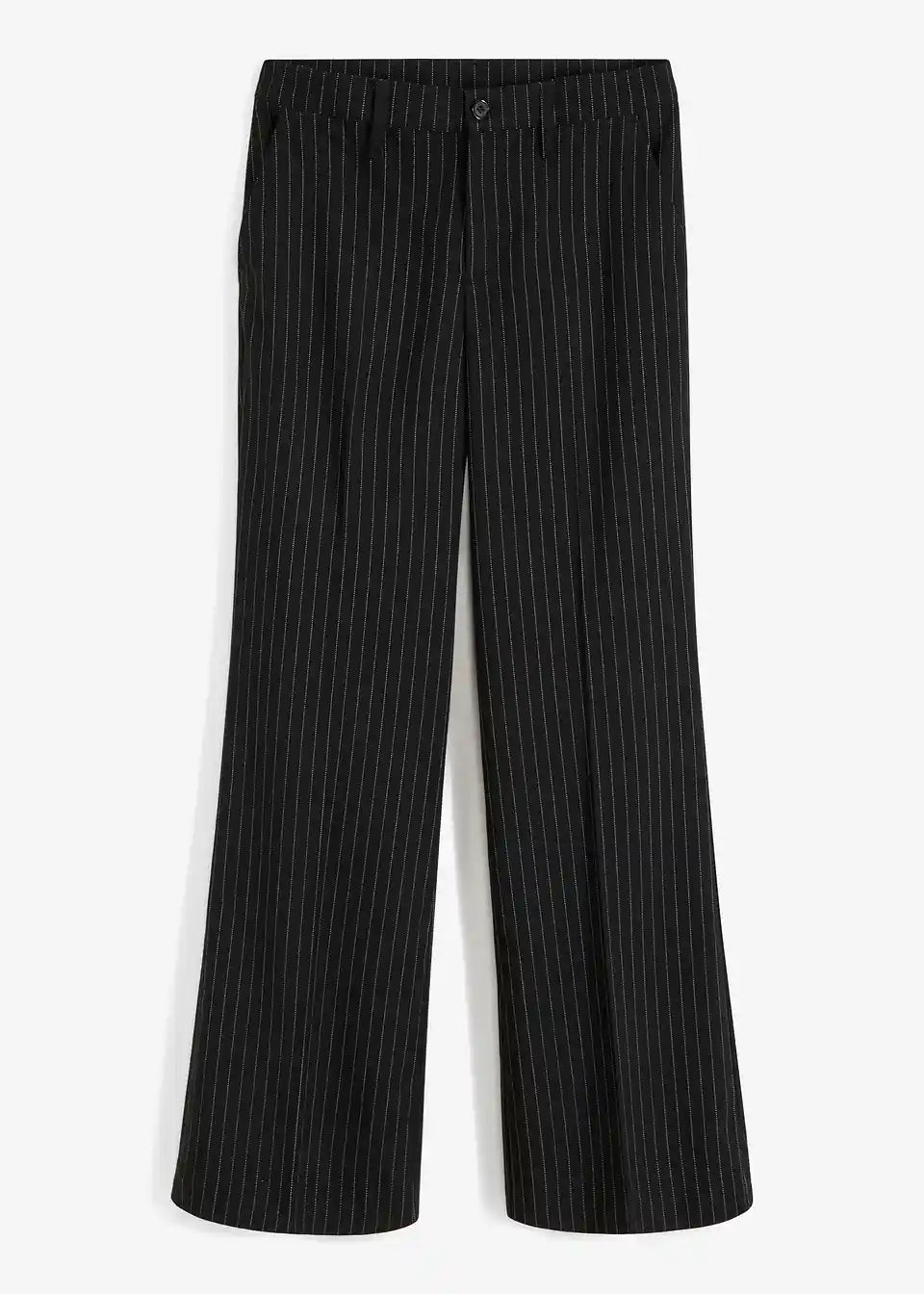Šik hlače na igličaste črte z modnimi, širokimi hlačnicami.
