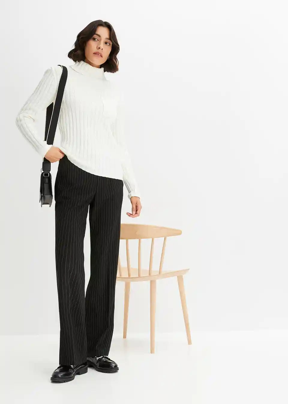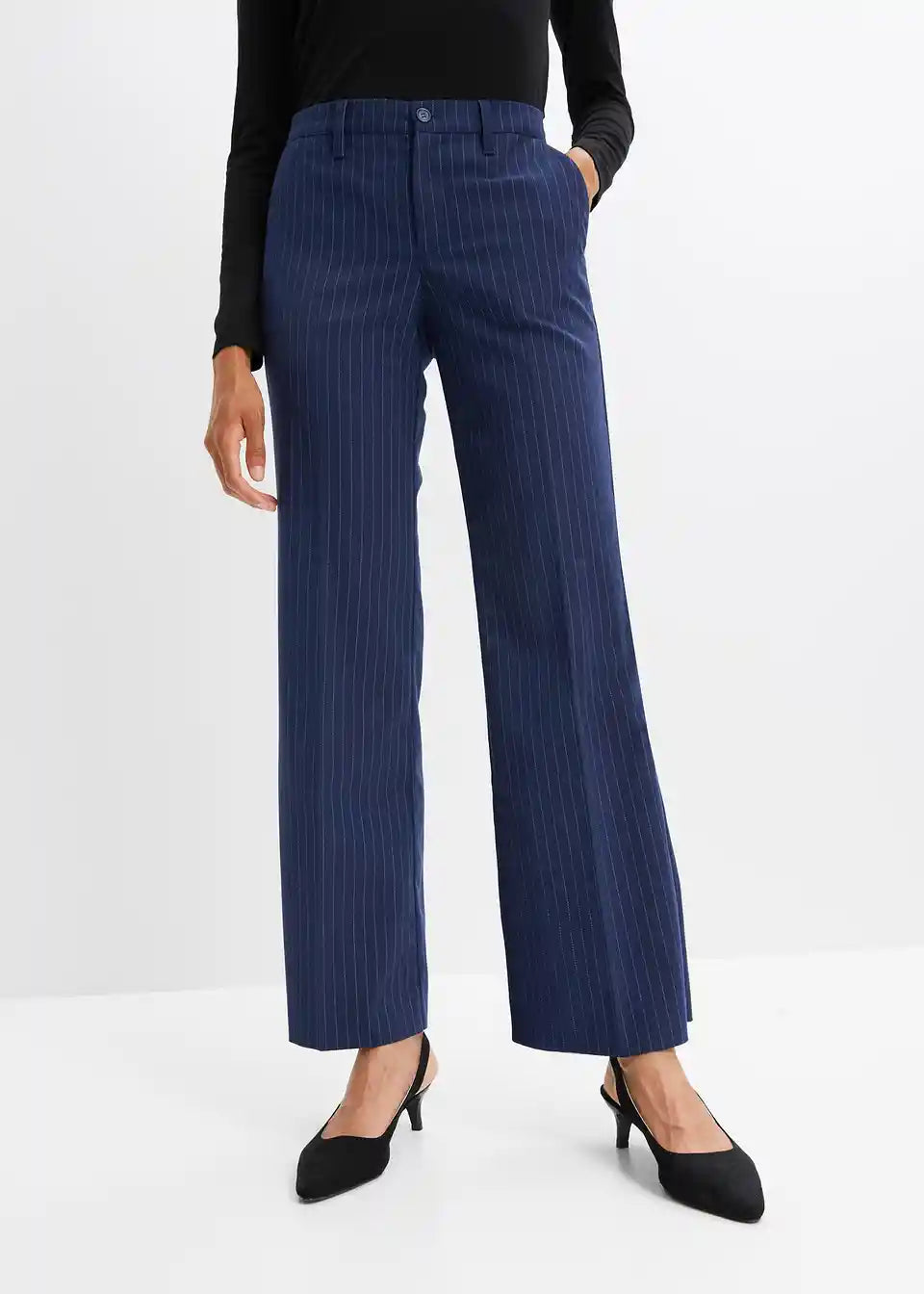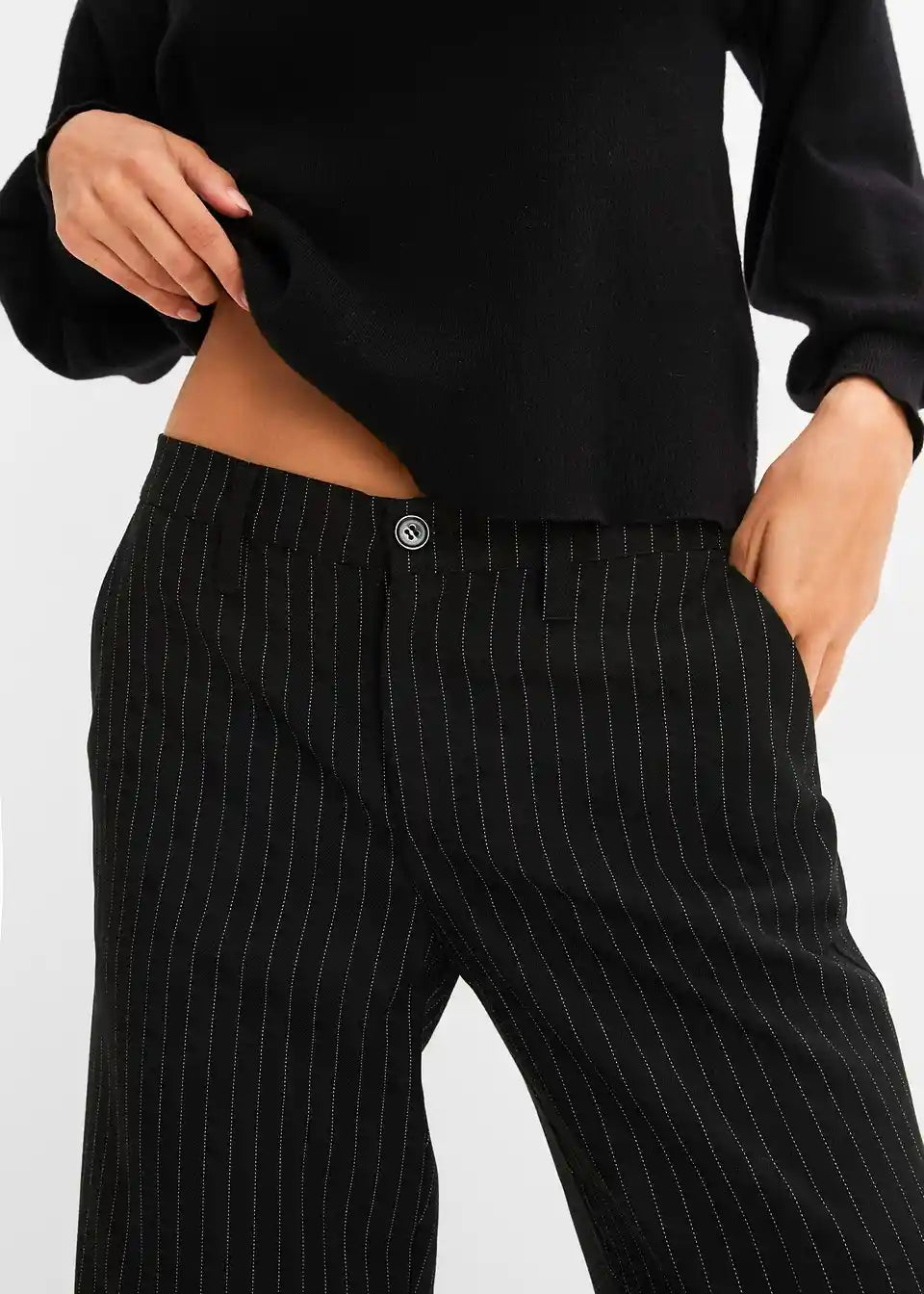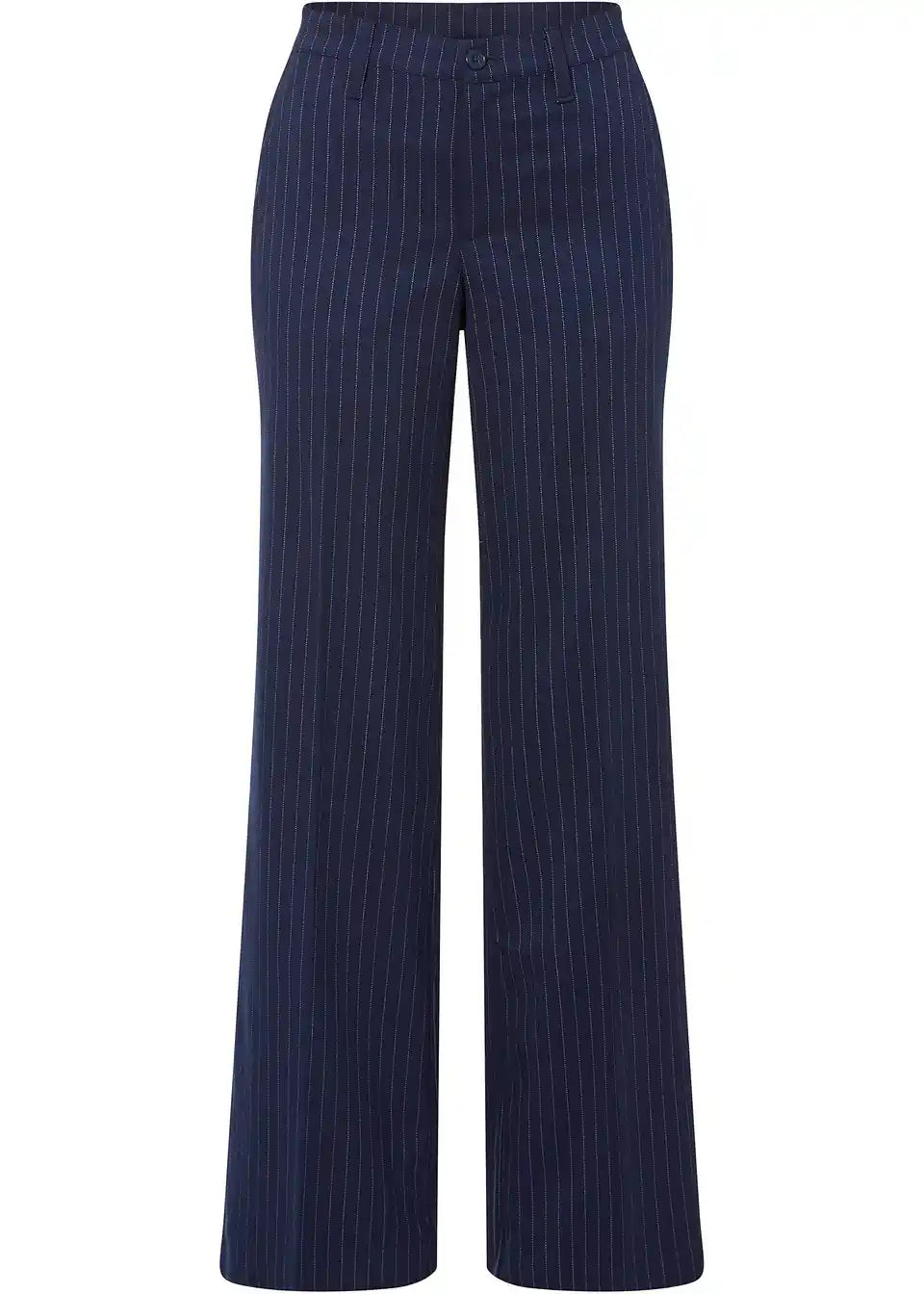Šik hlače na igličaste črte z modnimi, širokimi hlačnicami.