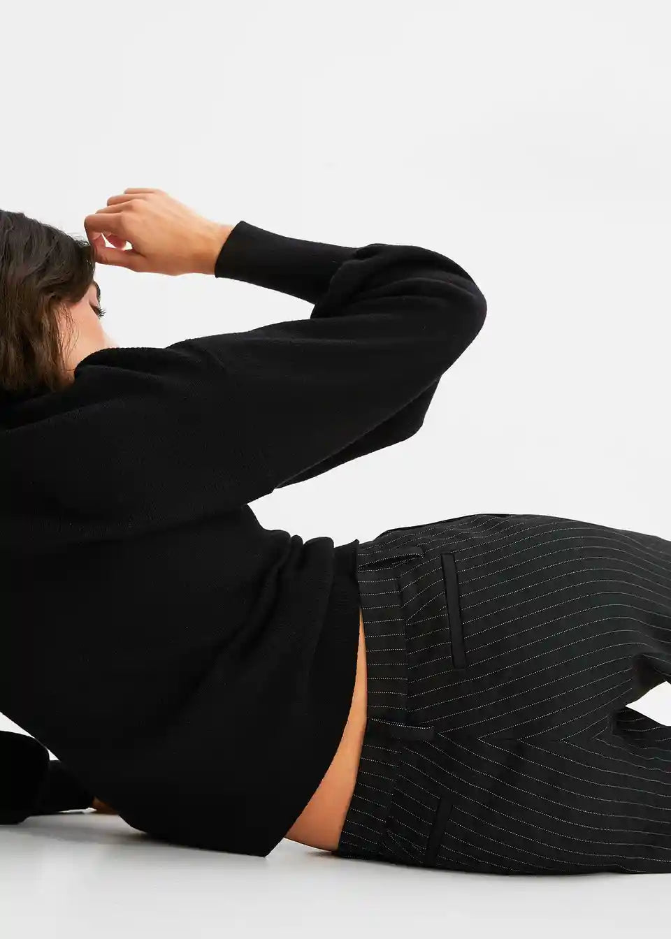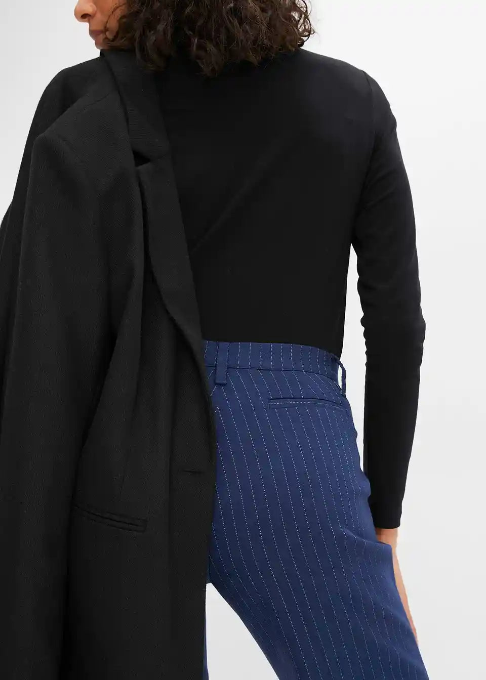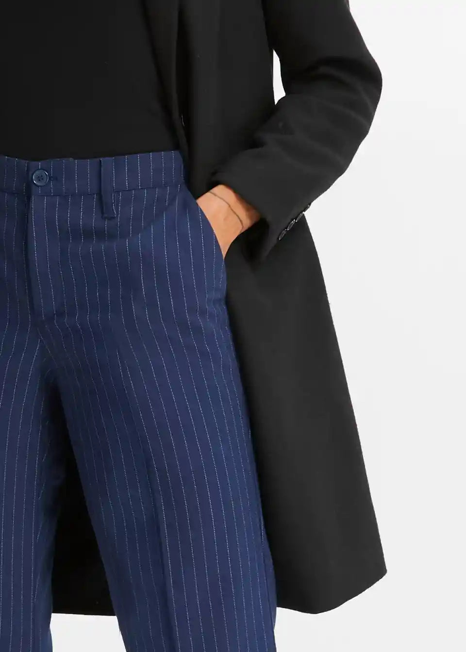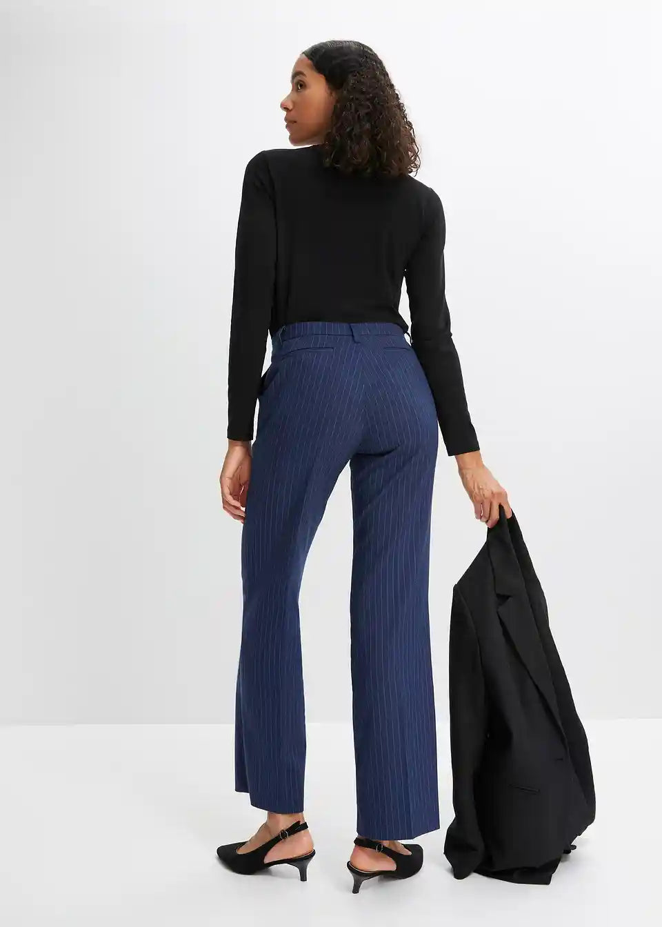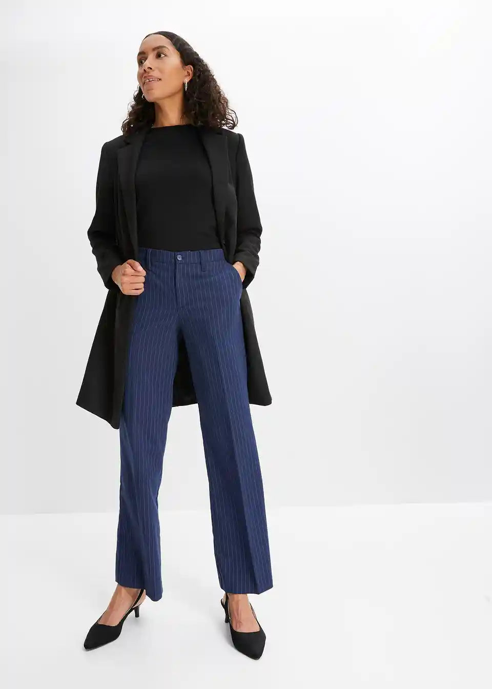 Šik hlače na igličaste črte z modnimi, širokimi hlačnicami.