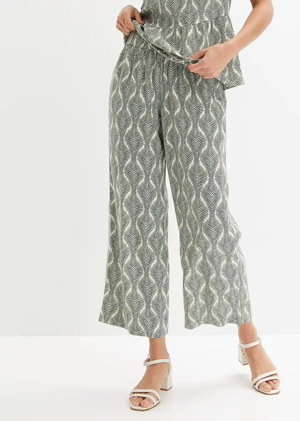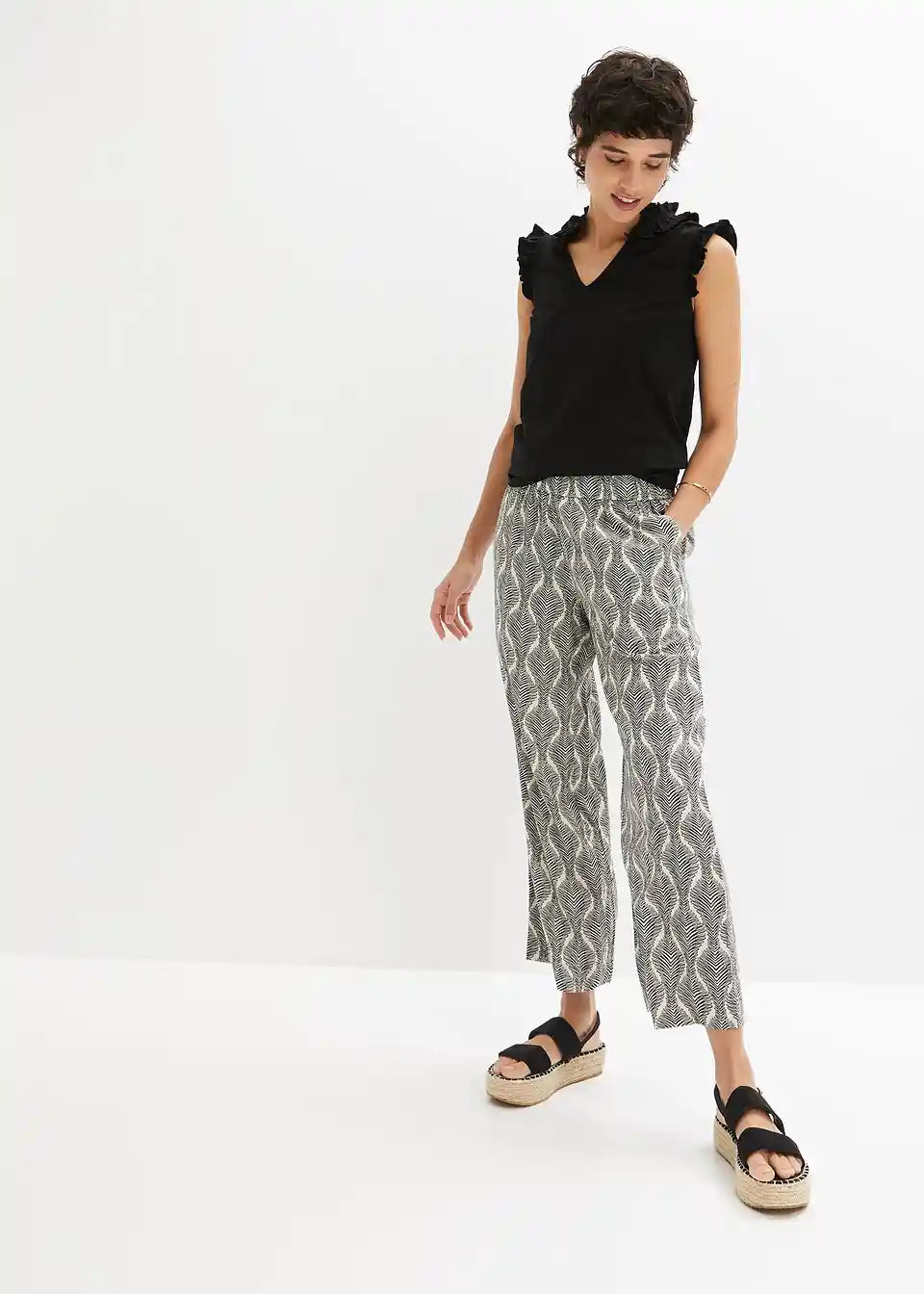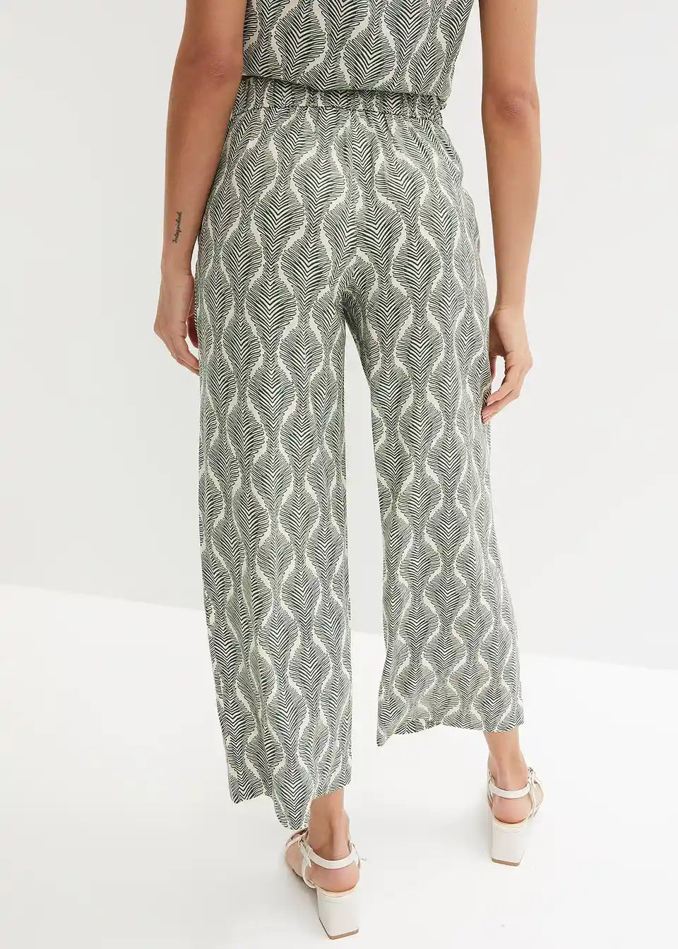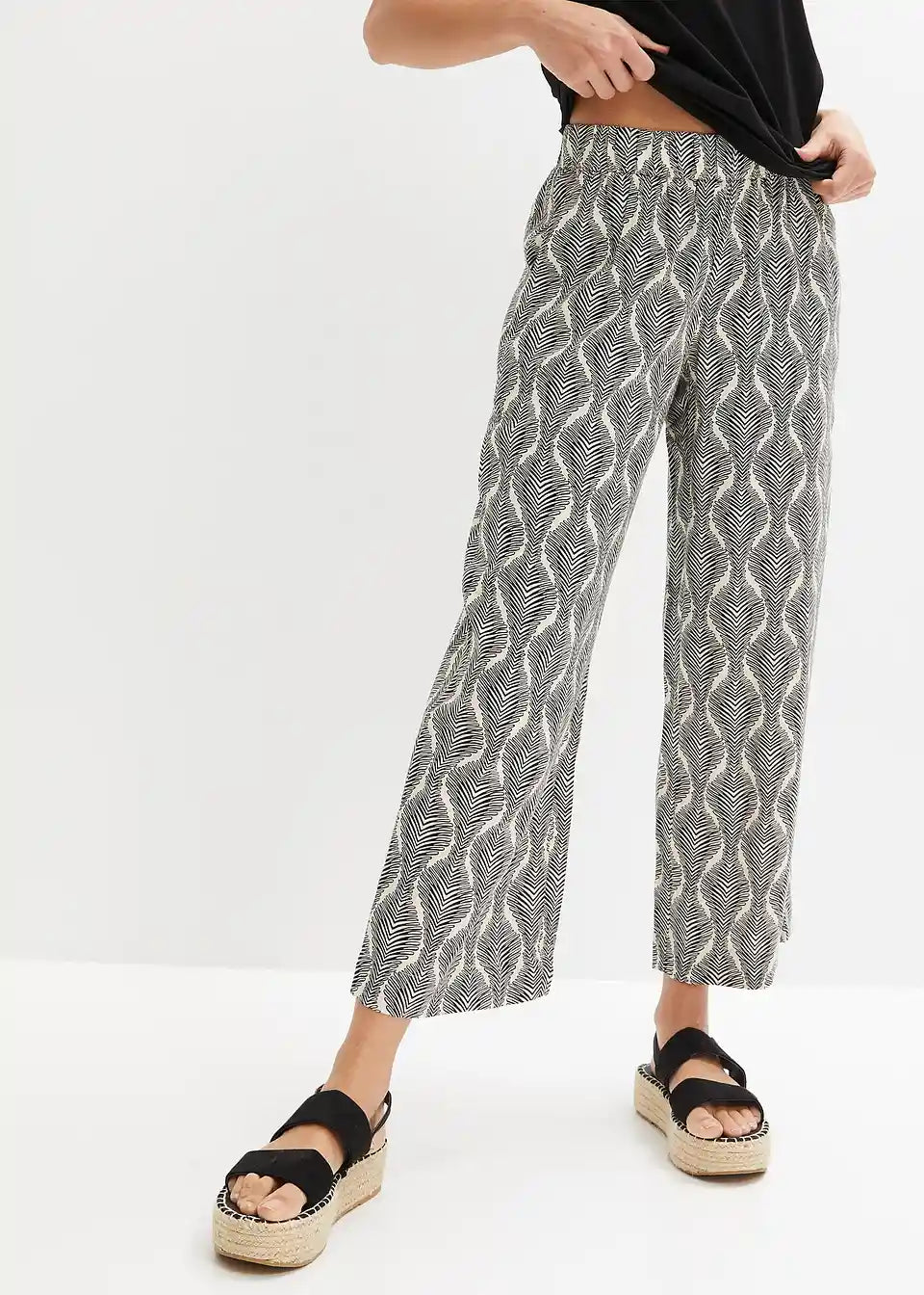 Udobne 7/8 hlače na slip z udobnim elastičnim pasom in trendovskim potiskom.