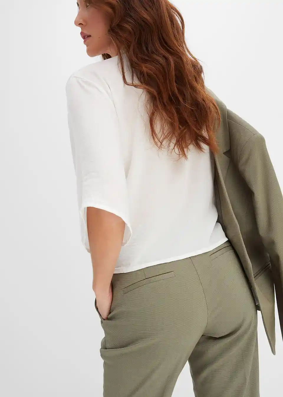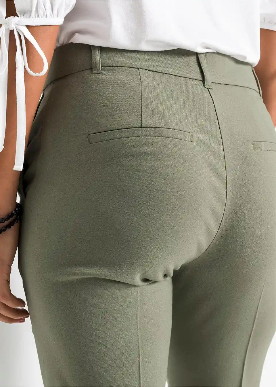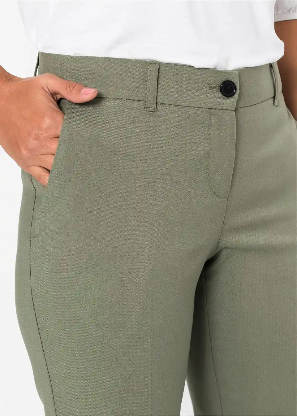Poslovne hlače s stranskimi žepi. Z likalnimi gubami na sprednji in zadnji strani hlače dobijo posebej eleganten videz.