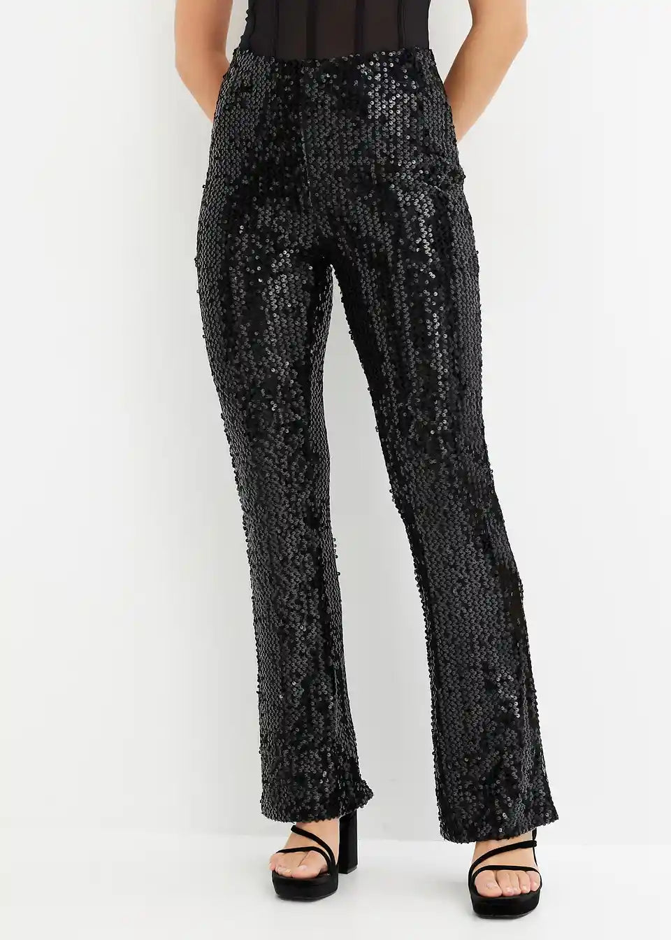Moderne in ženstvene: dolge hlače s bleščicami in rahlo širjenim krojem