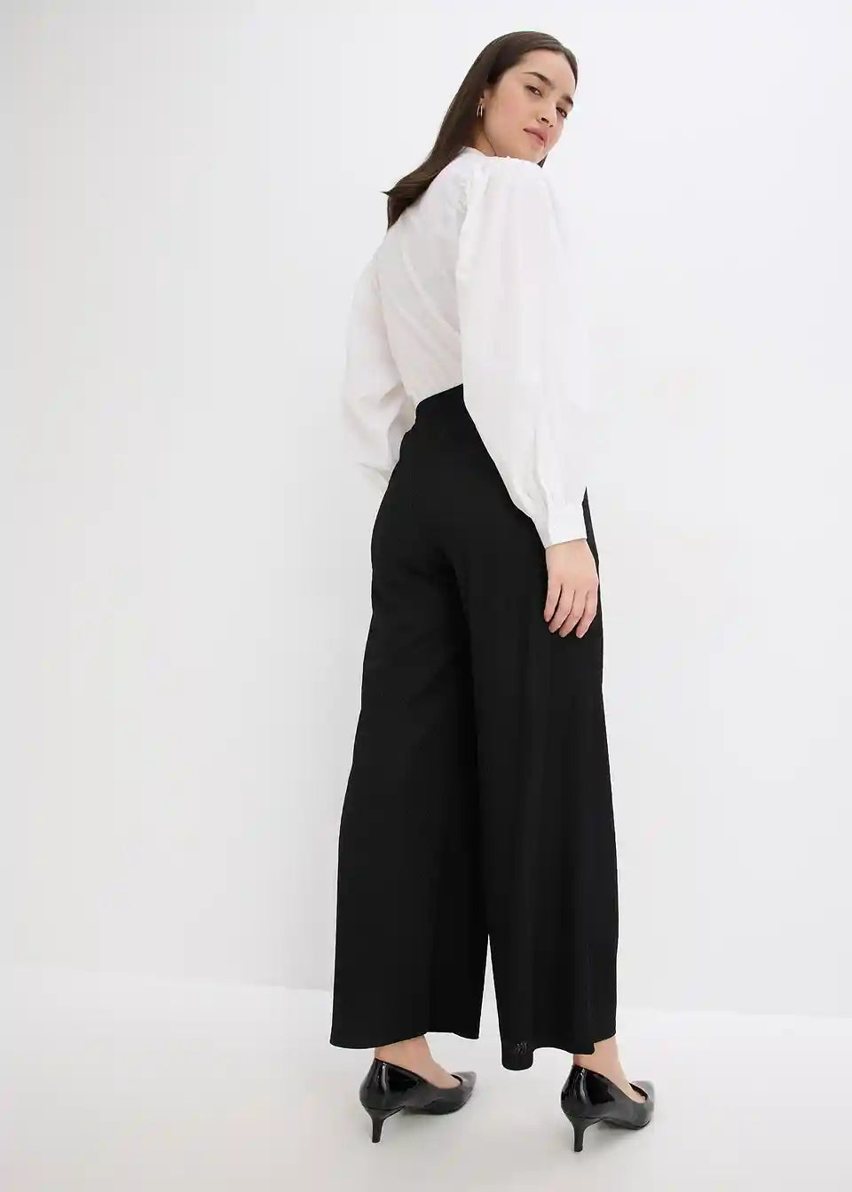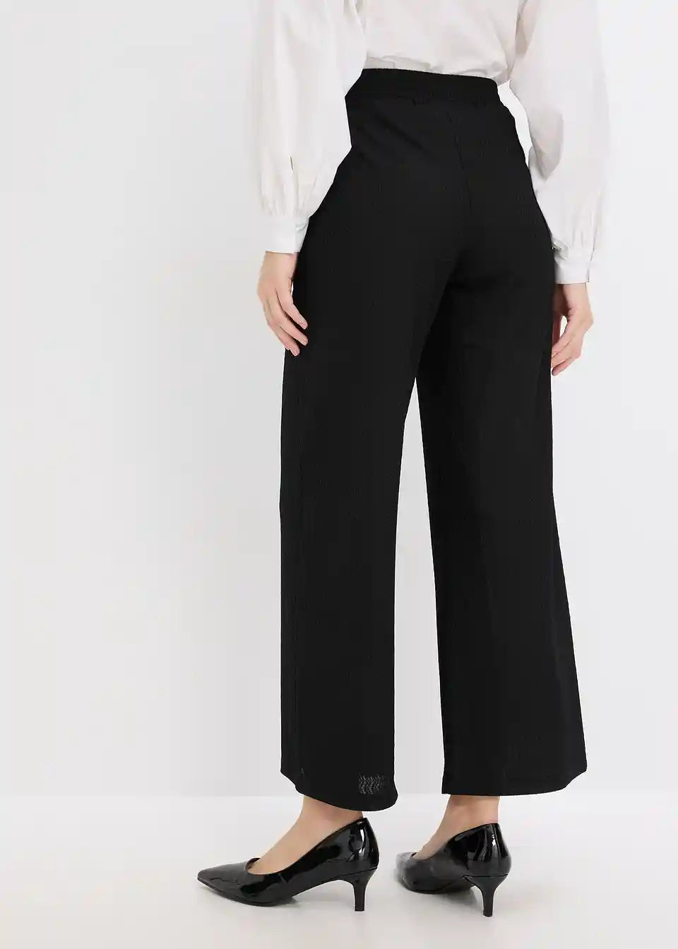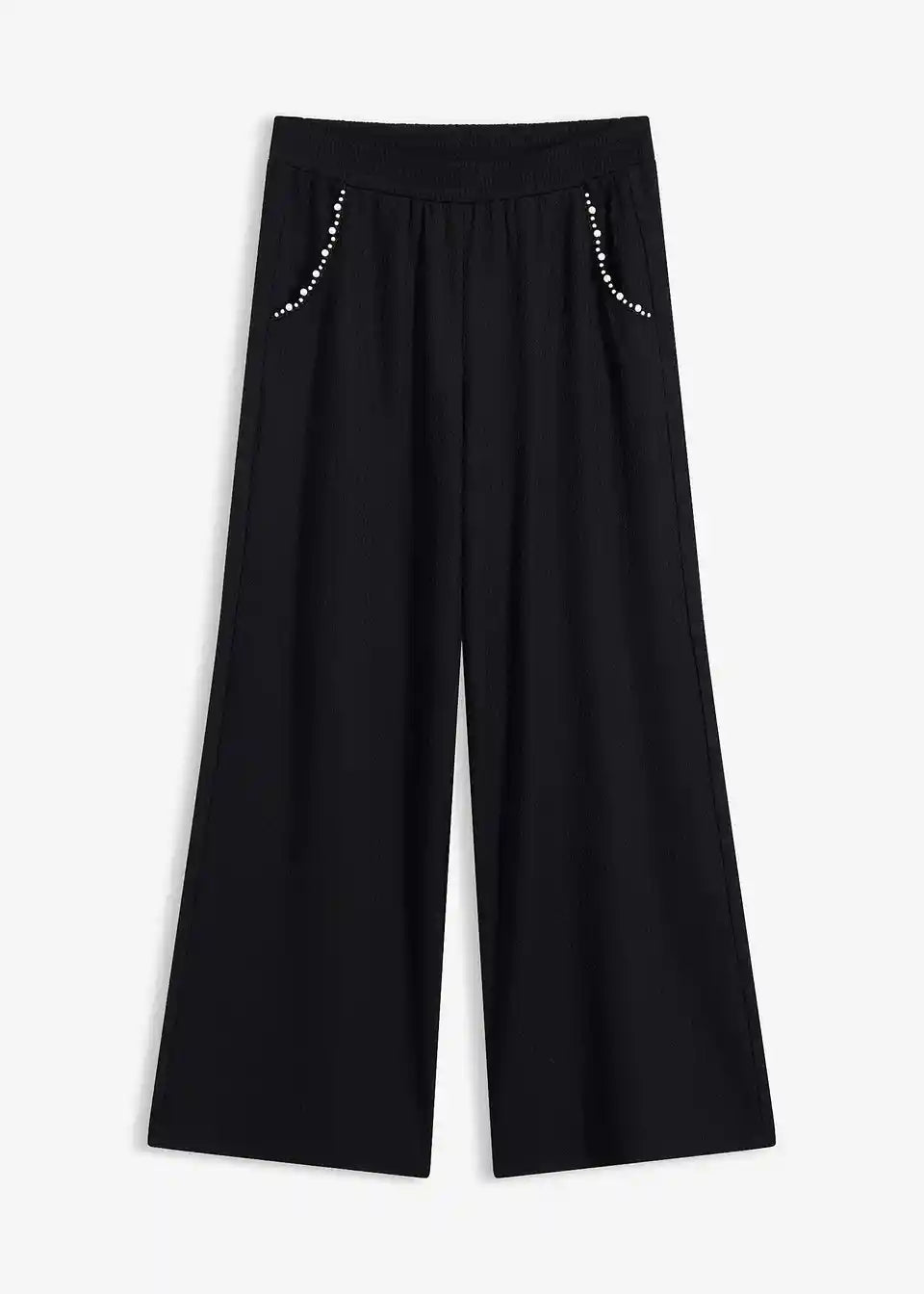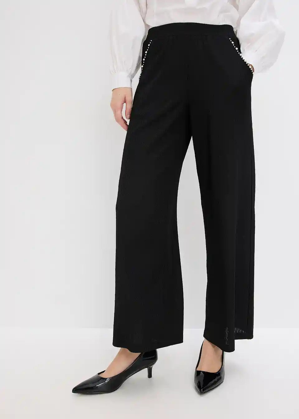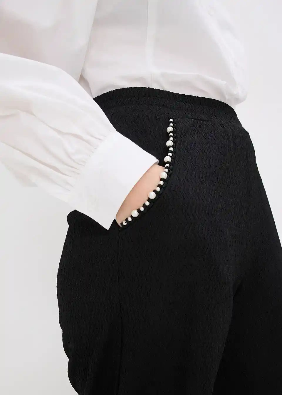 Hlače z aplikacijo biserov iz strukturiranega jerseyja