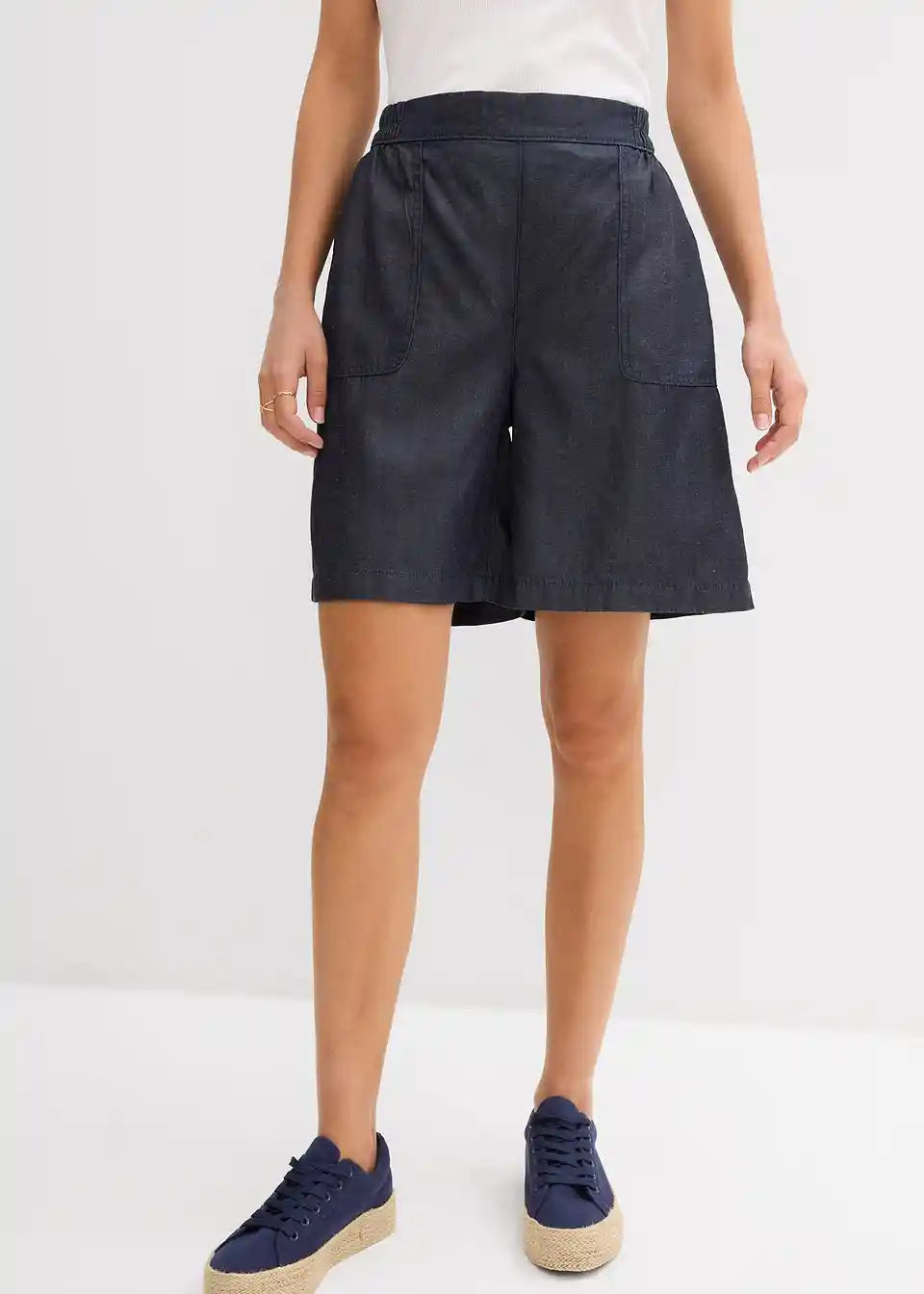 Ohlapne kratke hlače dolžine bermuda z delno elastičnim udobnim pasom