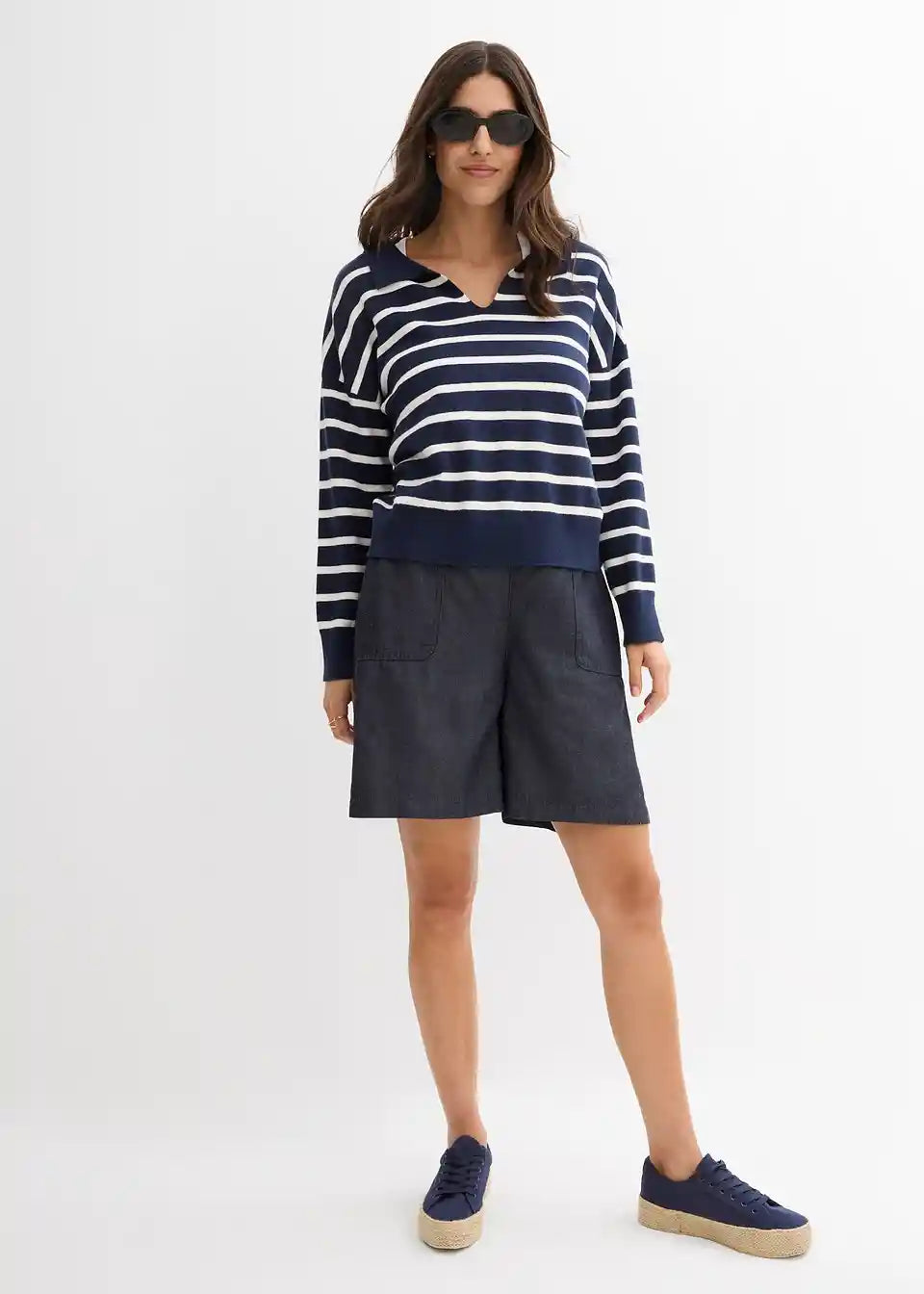 Kratke hlače brez zapenjanja z deležem hladnega lanu