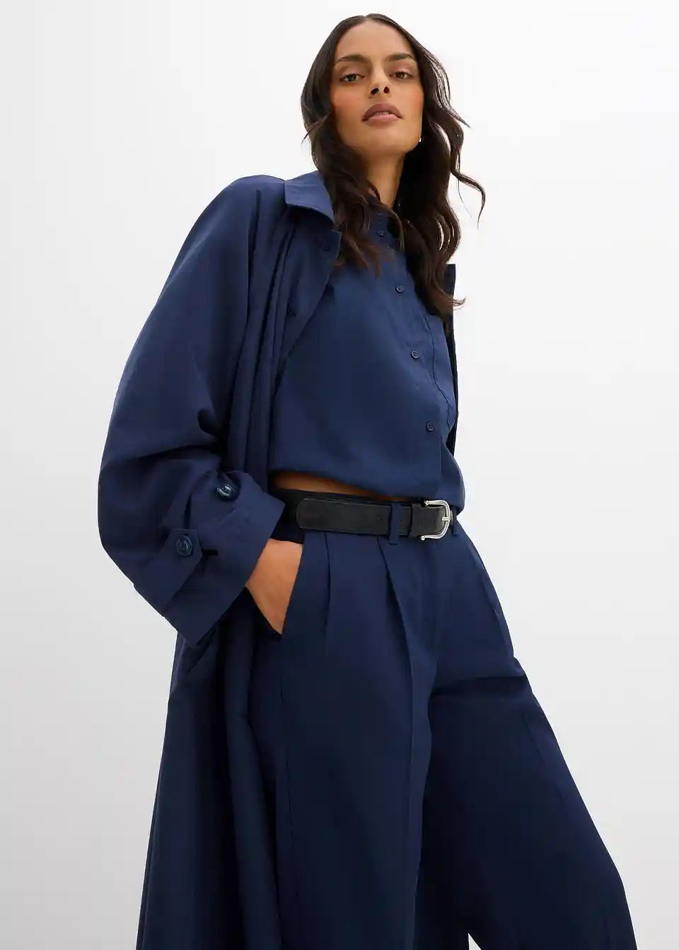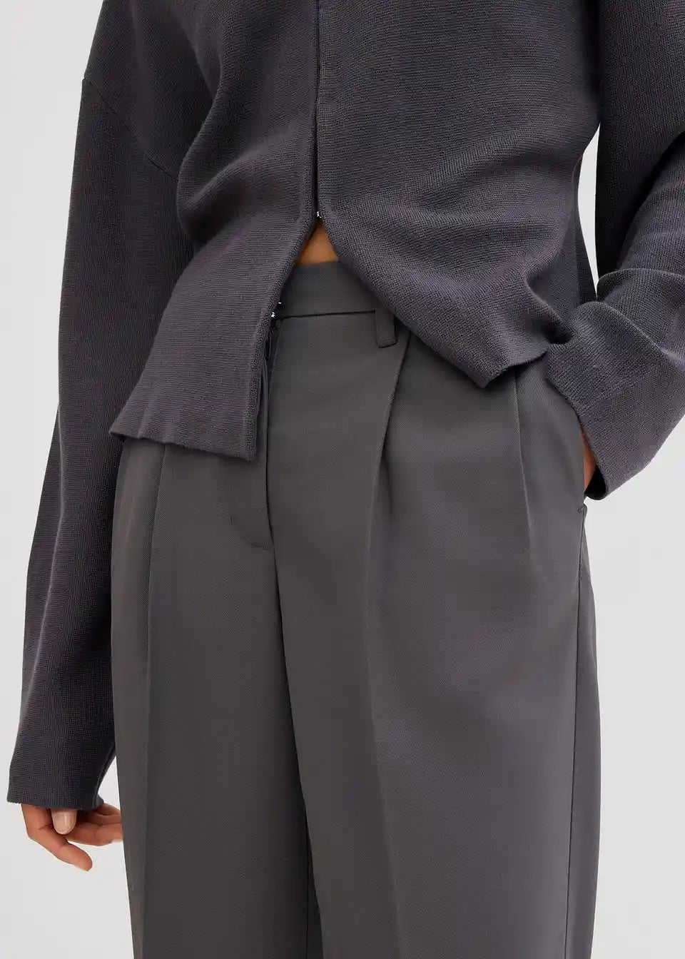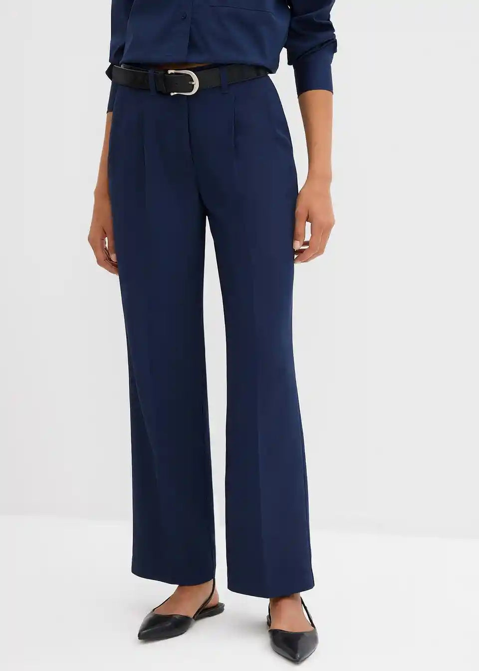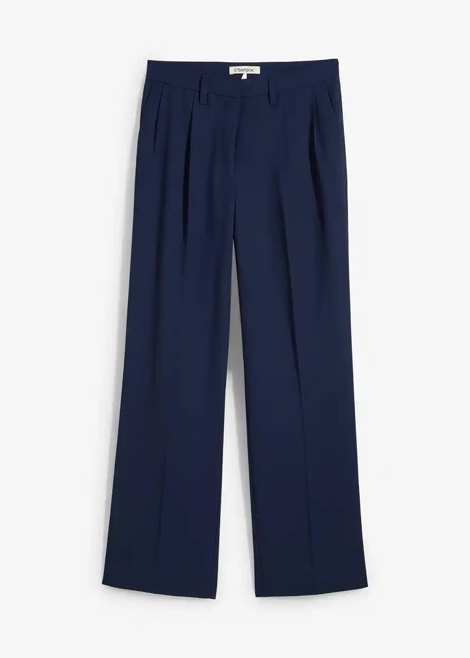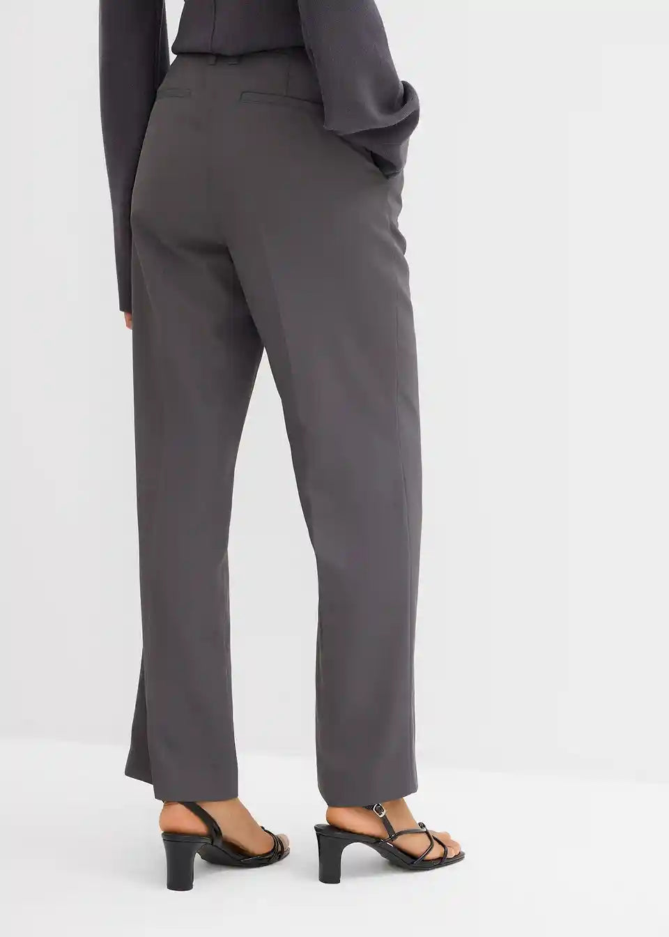 Elegantne hlače iz blaga s sprednjim likanim robom in stranskimi žepi