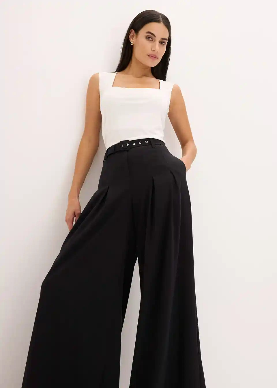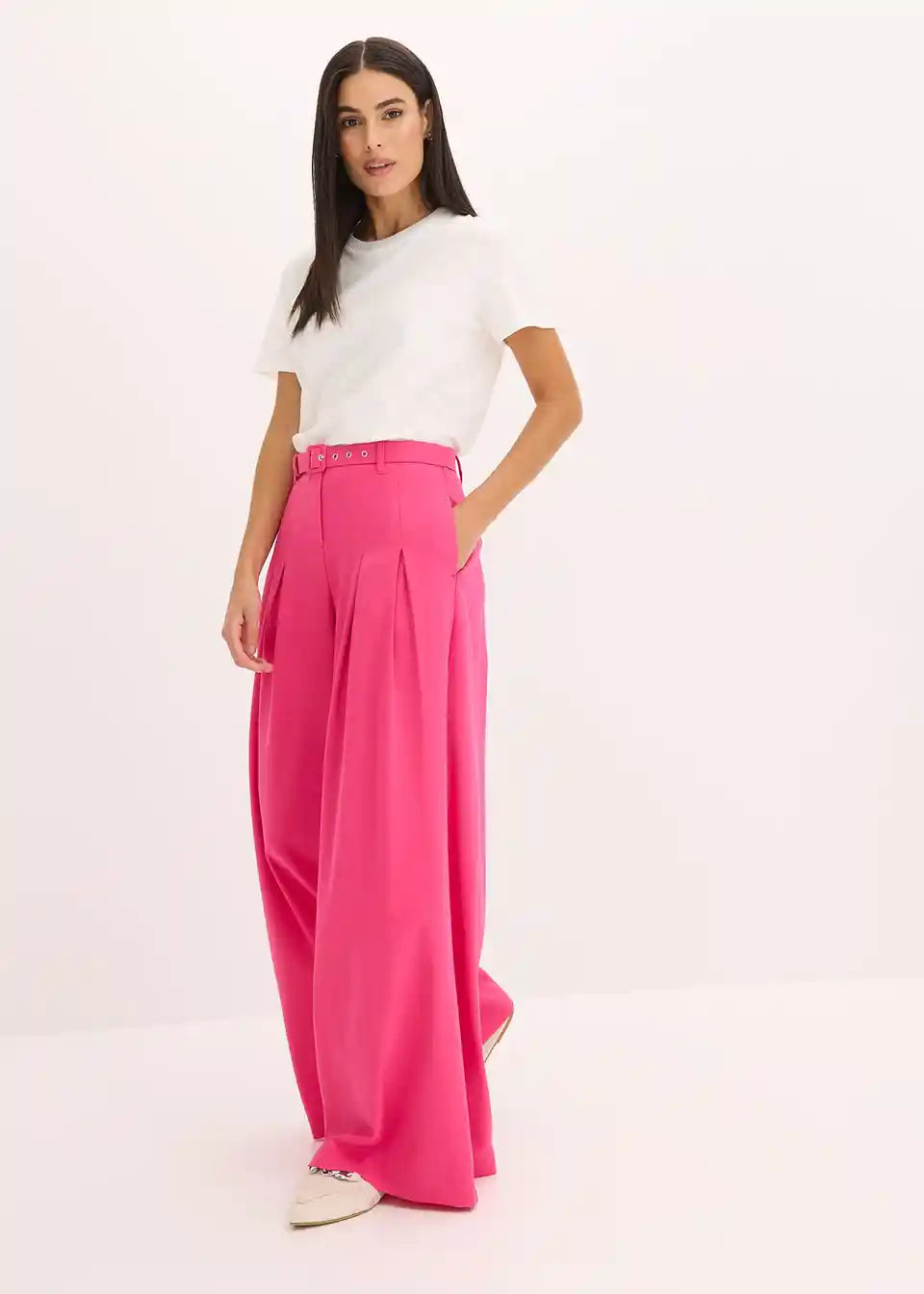 Hlače z gubami v pasu in pas