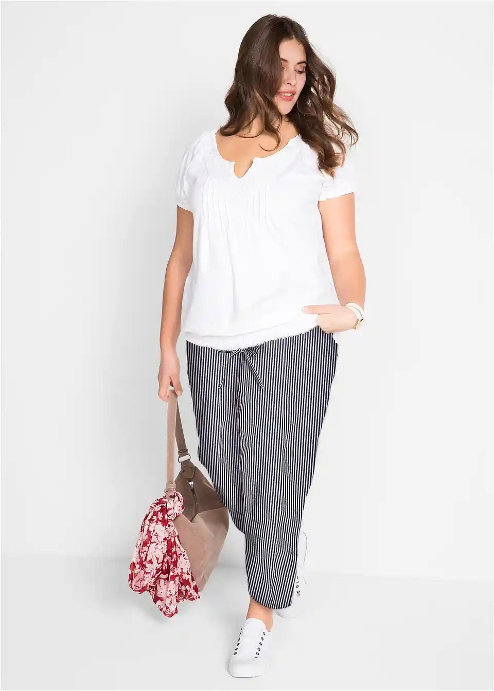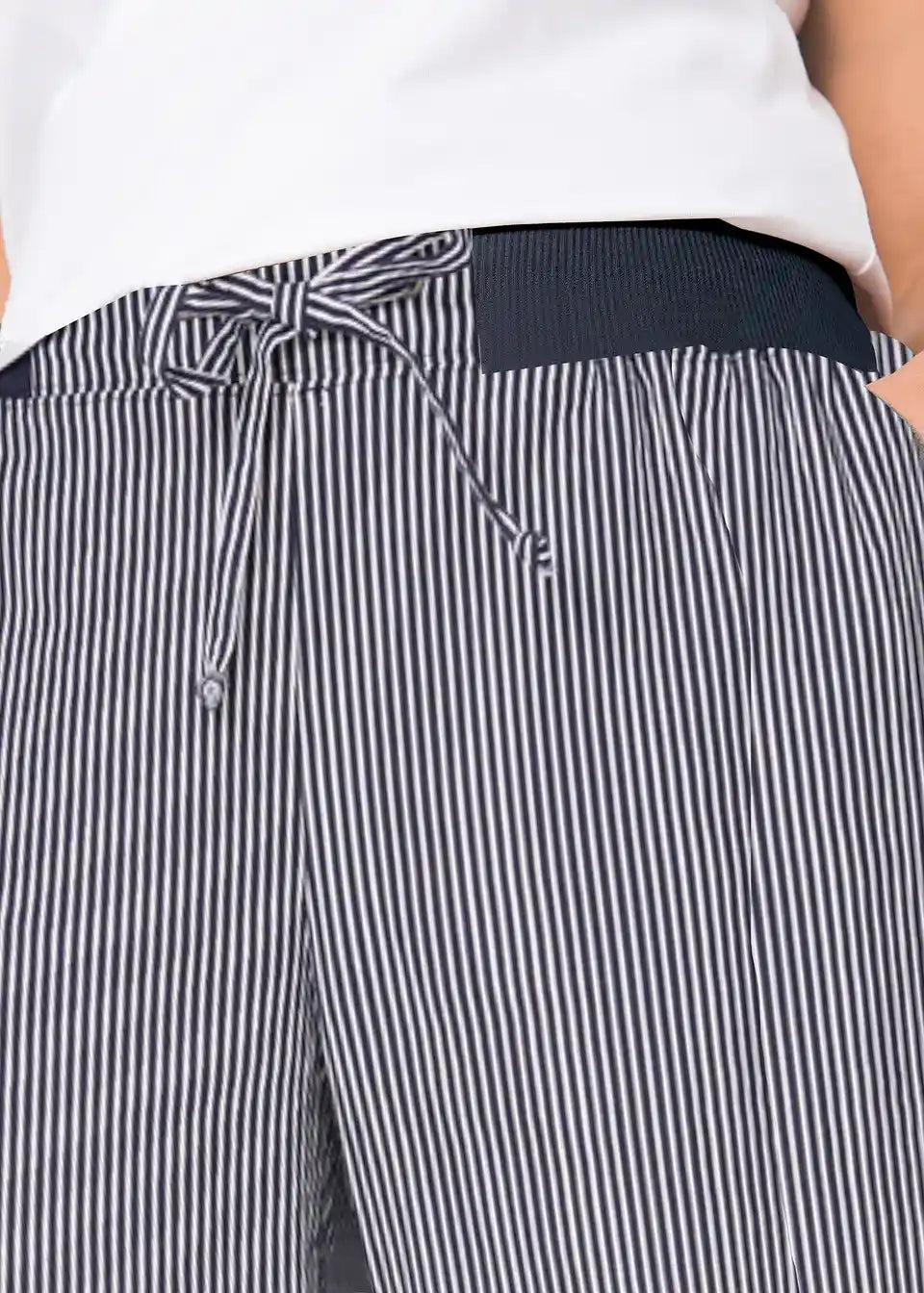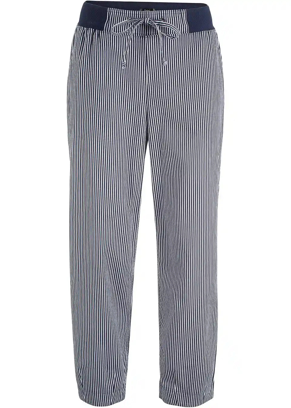 Udobne hlače iz mešanice lana z vezalnim trakom in povišanim pasom
