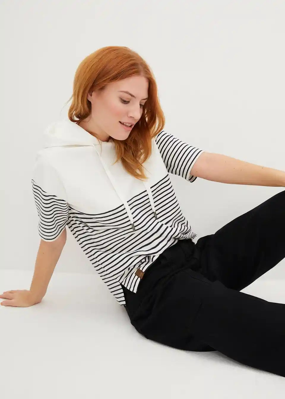 Ohlapno krojena majica s kapuco in kratkimi rokavi