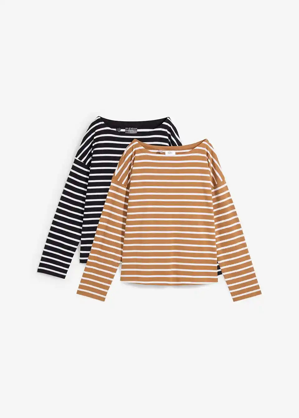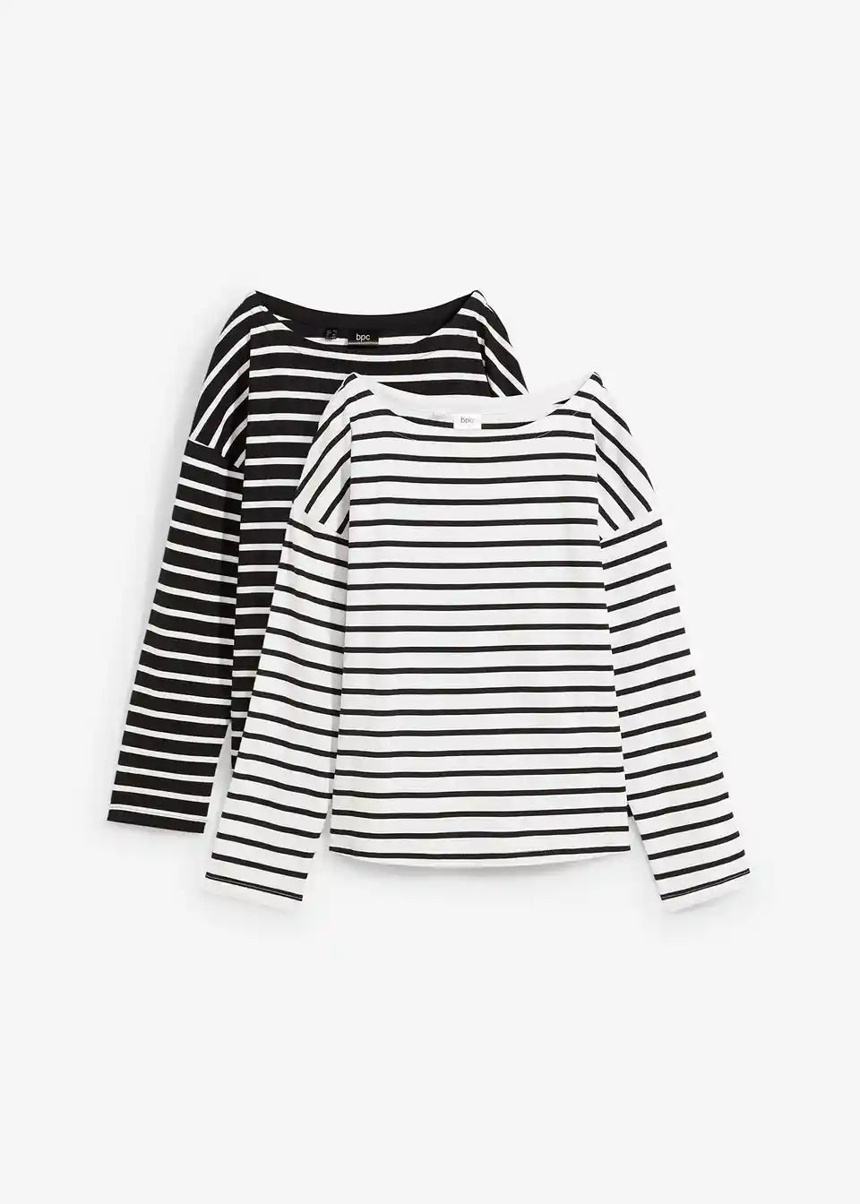 Interlock majica z dolgimi rokavi, ekološkim bombažem in lahkotnim ladijskim izrezom (2 kosa)