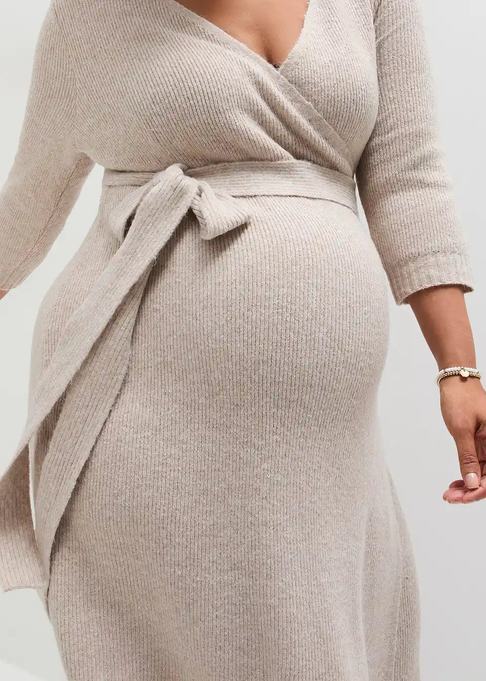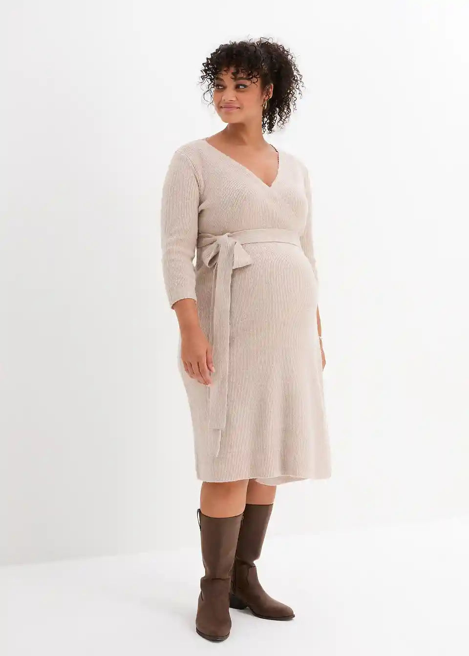 Izjemno mehka pletena obleka za nosečnost in dojenje s 3/4-rokavi