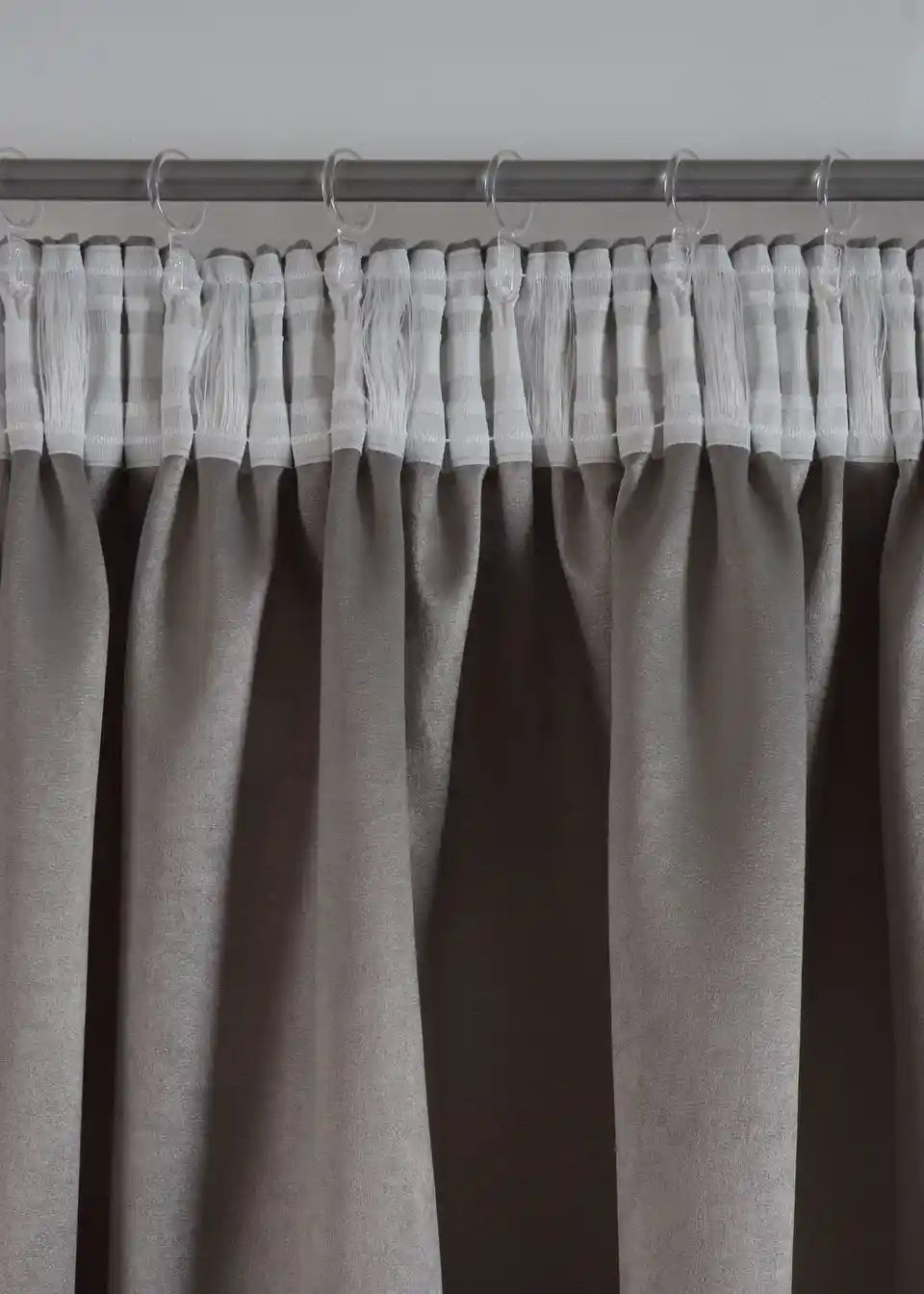Zatemnitvena zavesa ima rahlo strukturirano površino in optimalno zatemni tvoje prostore. Podnevi je zavesa elegantna okenska dekoracija.