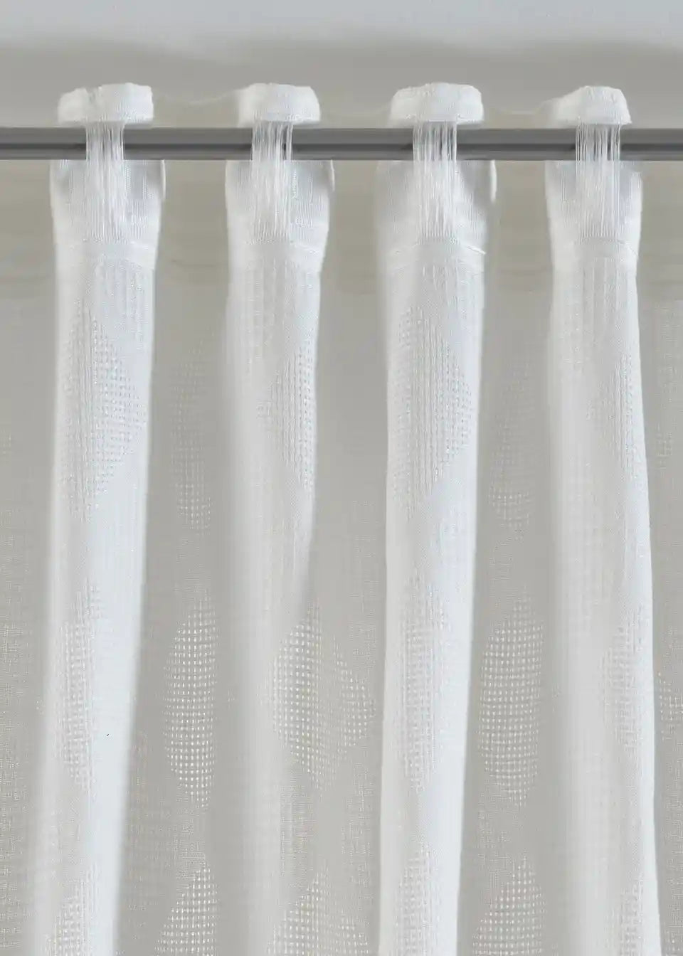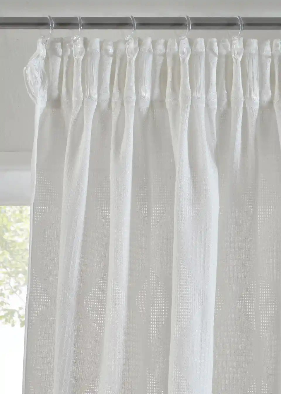 Moderna Jacquard zavesa z diskretnim vzorcem rombov.