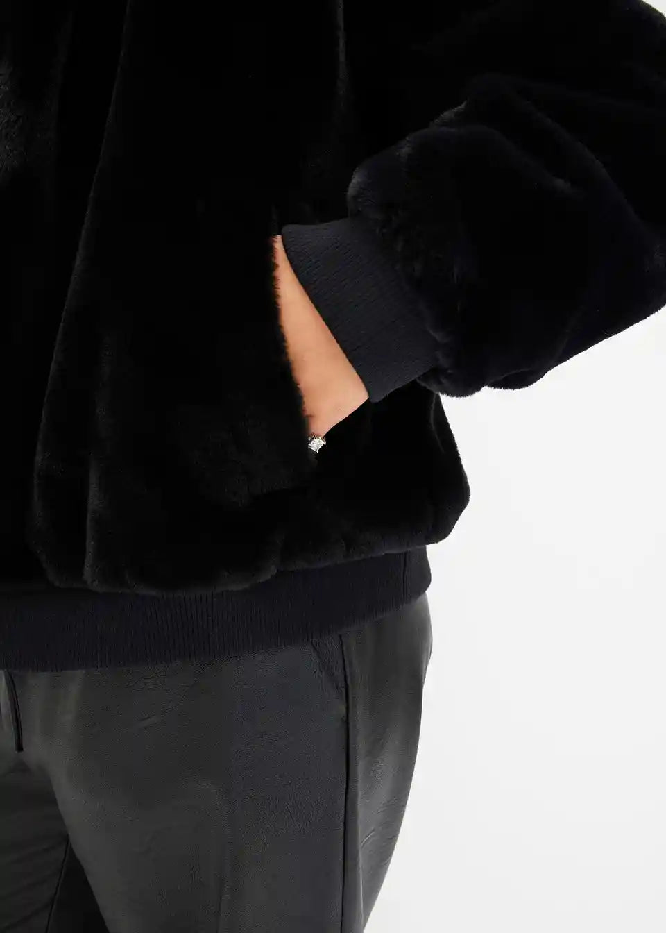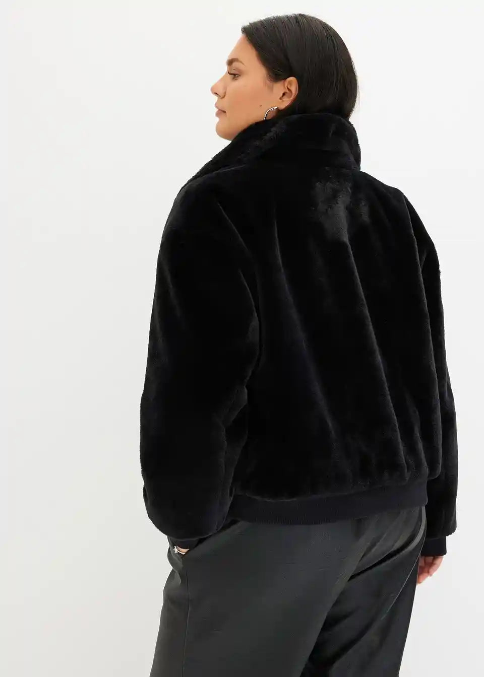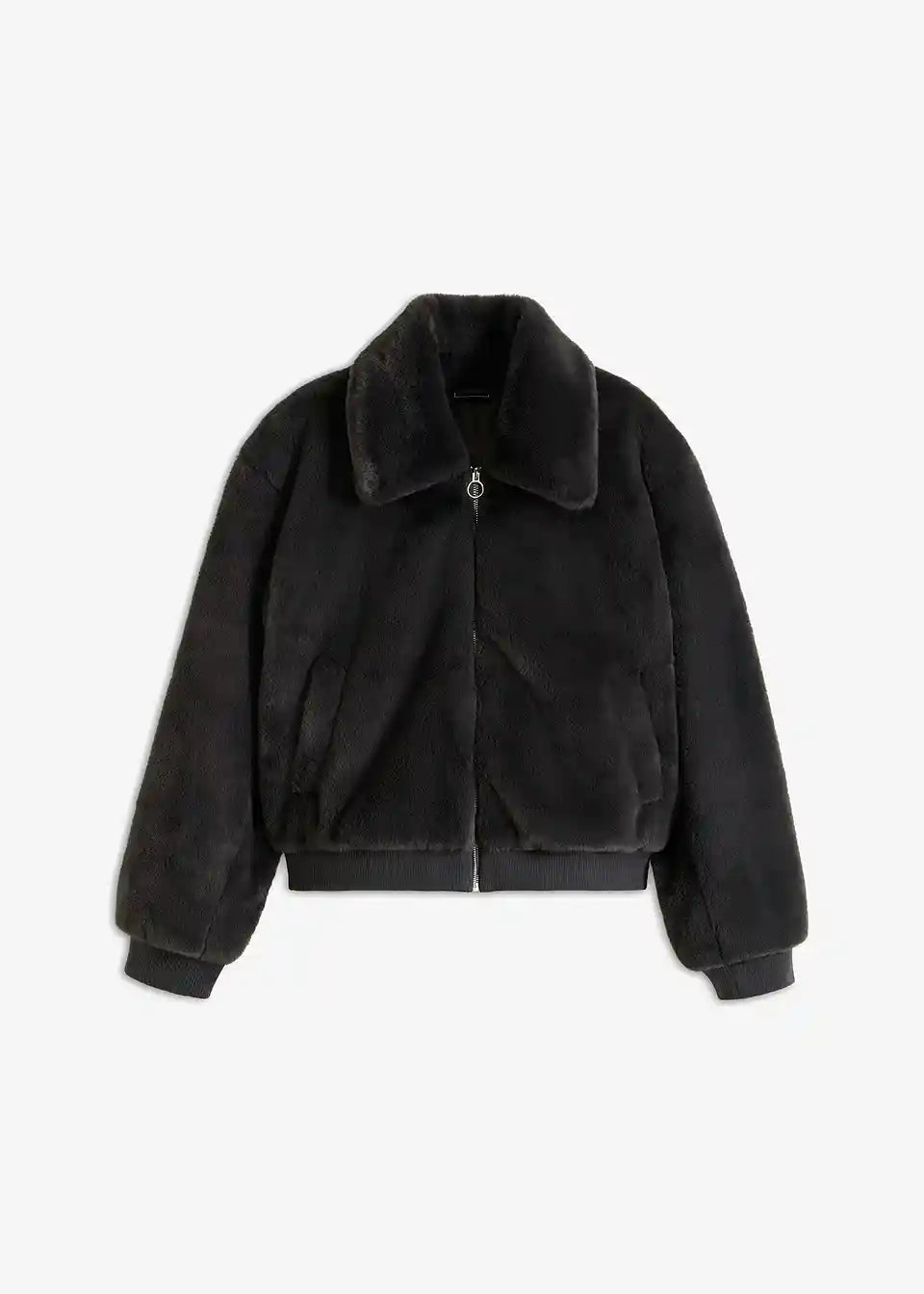 Moderna jakna iz imitacije krzna s ovratnikom in žepi