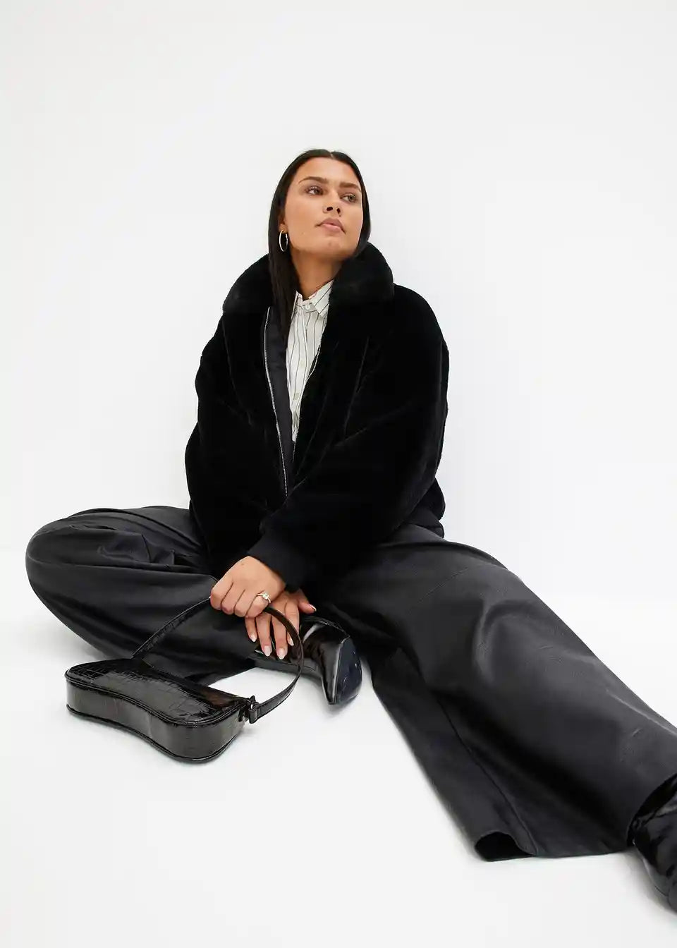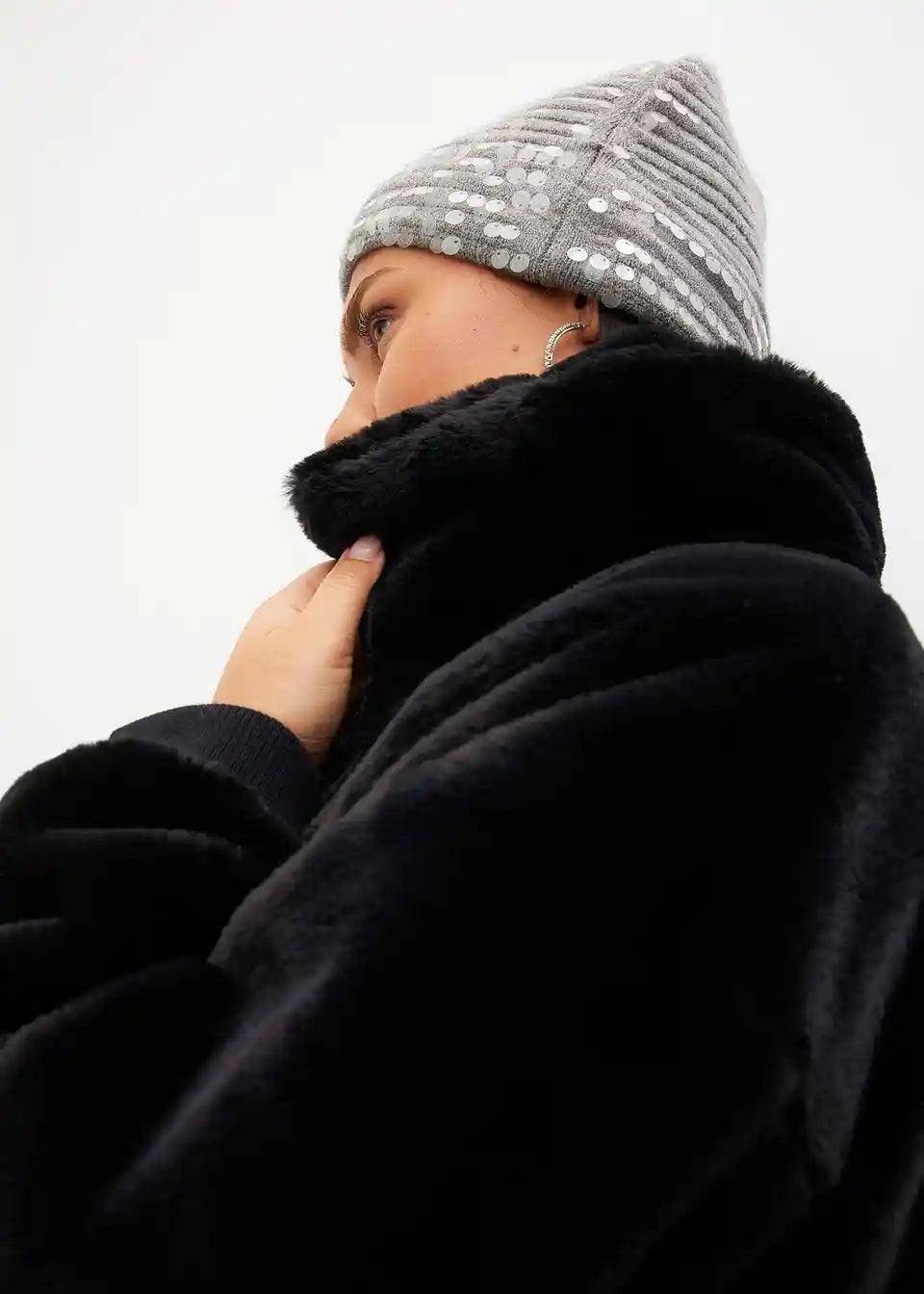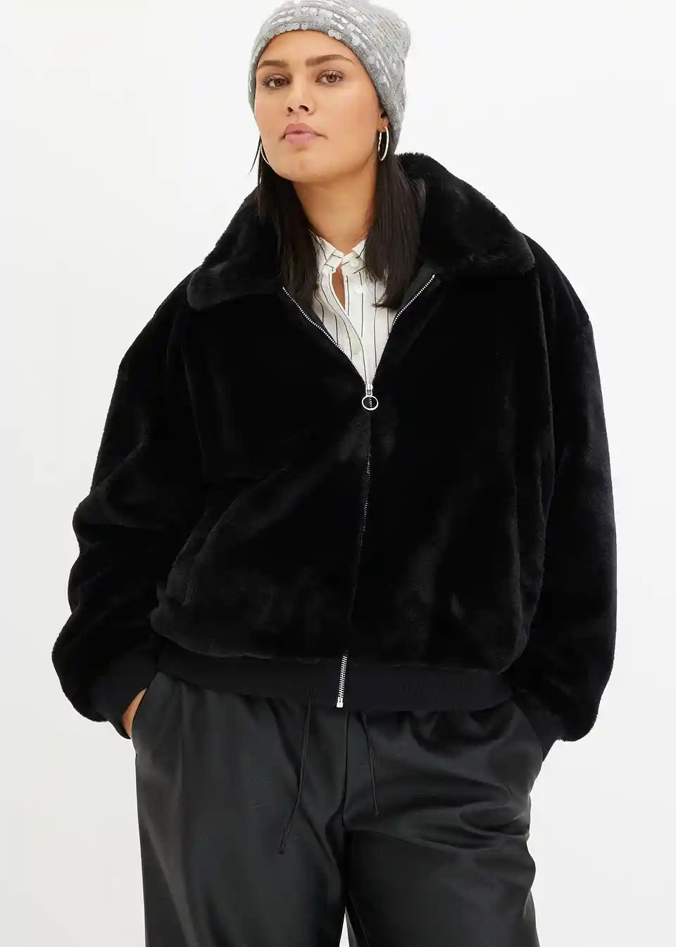Moderna jakna iz imitacije krzna s ovratnikom in žepi