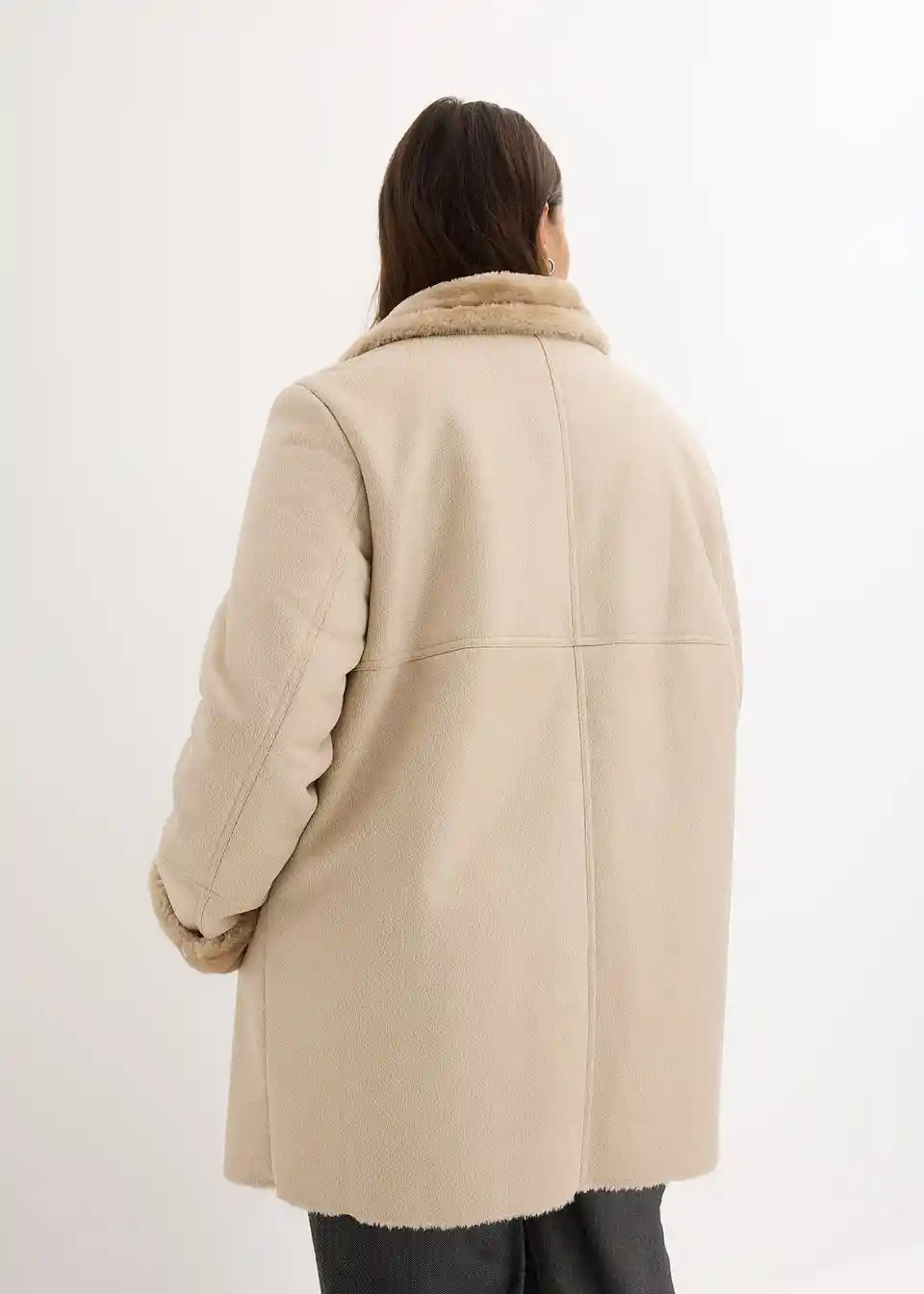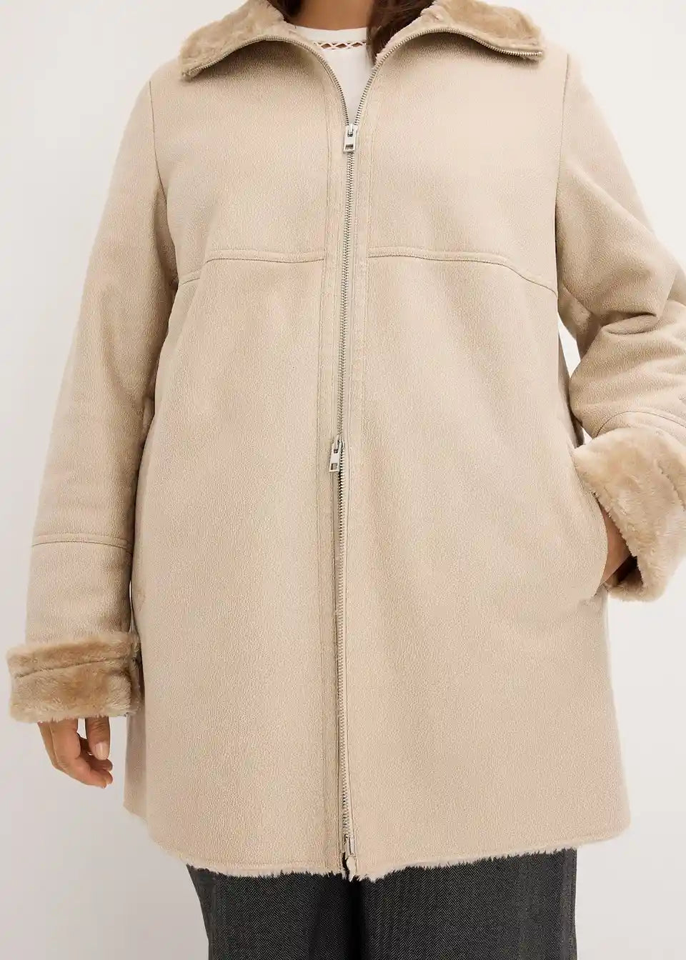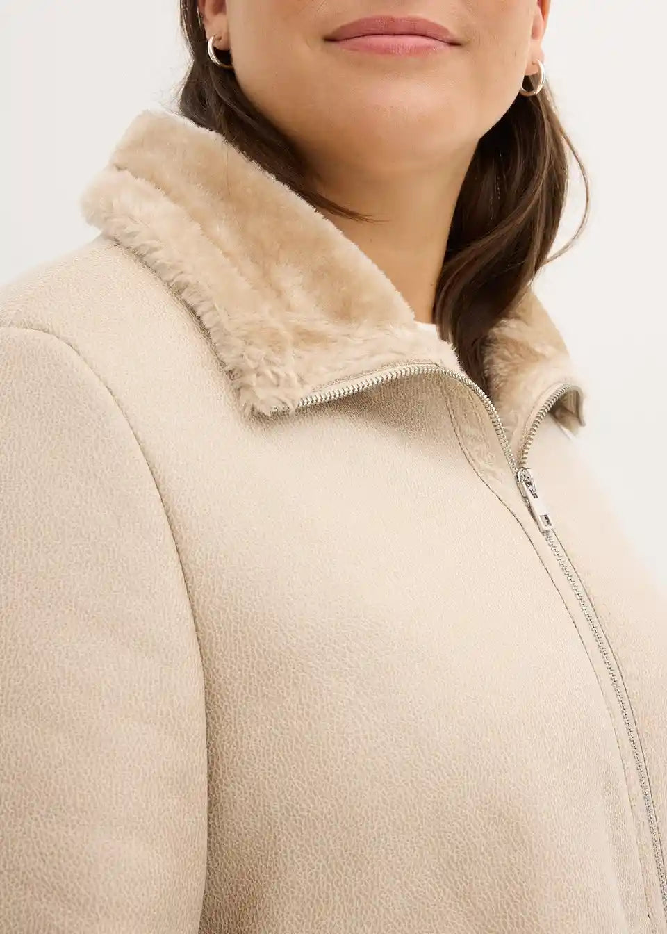 Udobna jakna iz imitacije ovčje kože z visokim ovratnikom in žepi. Ni primerna za strojno pranje. Prosimo, da čistite samo kemično.