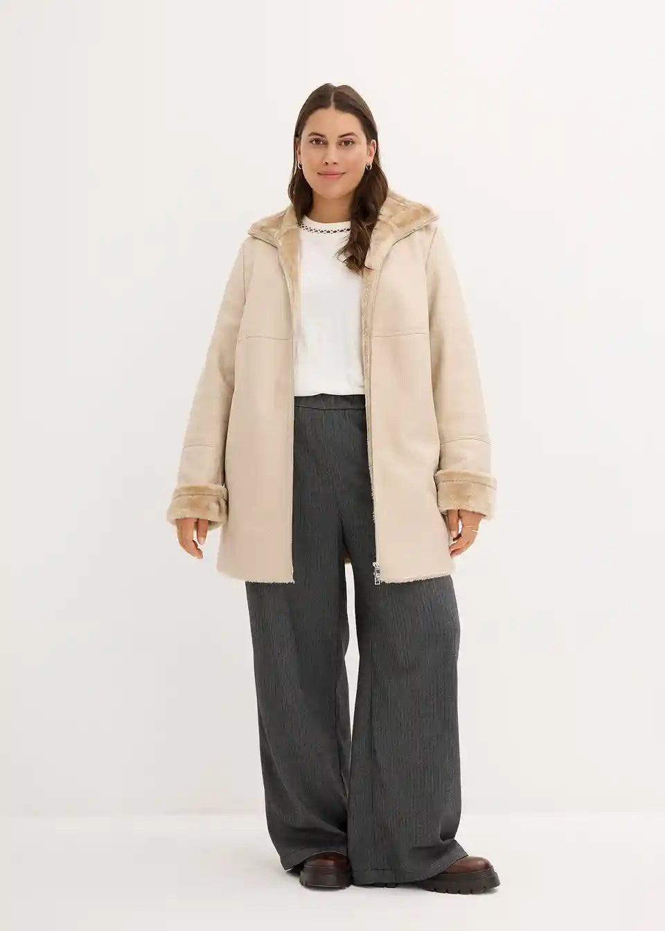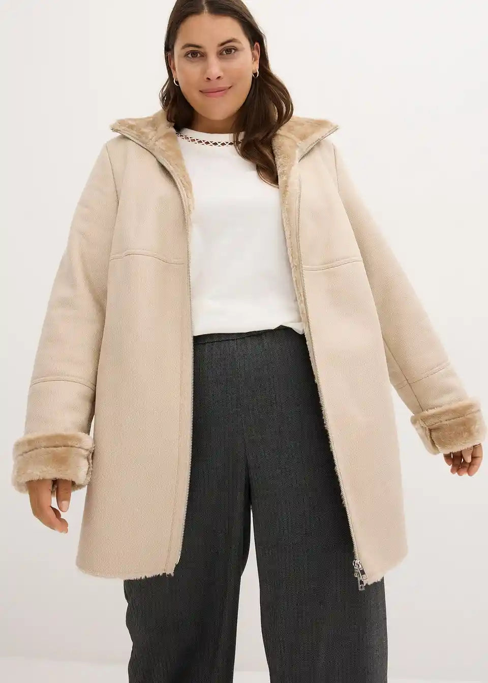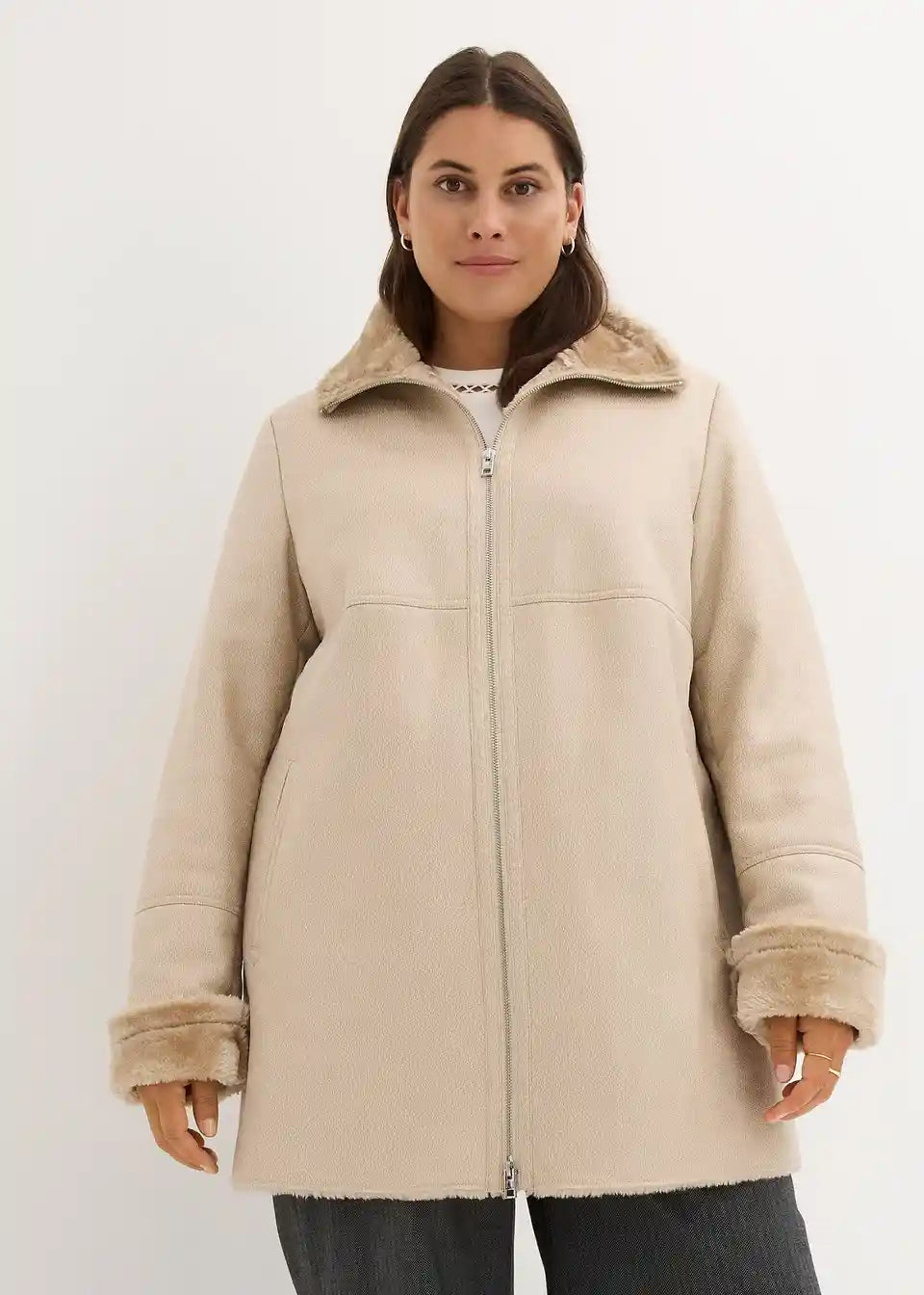 Udobna jakna iz imitacije ovčje kože z visokim ovratnikom in žepi. Ni primerna za strojno pranje. Prosimo, da čistite samo kemično.