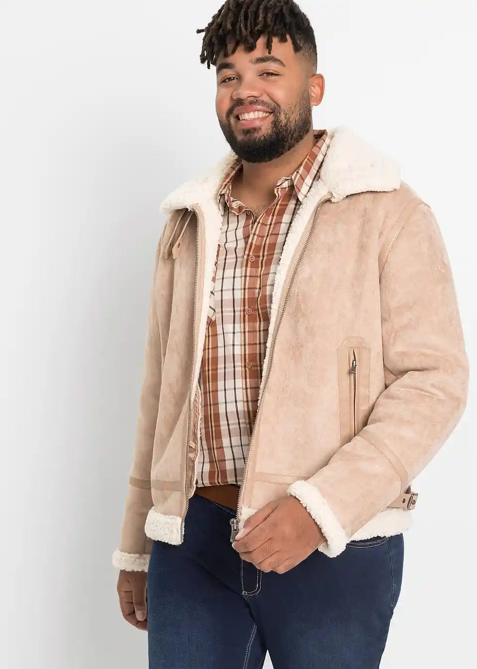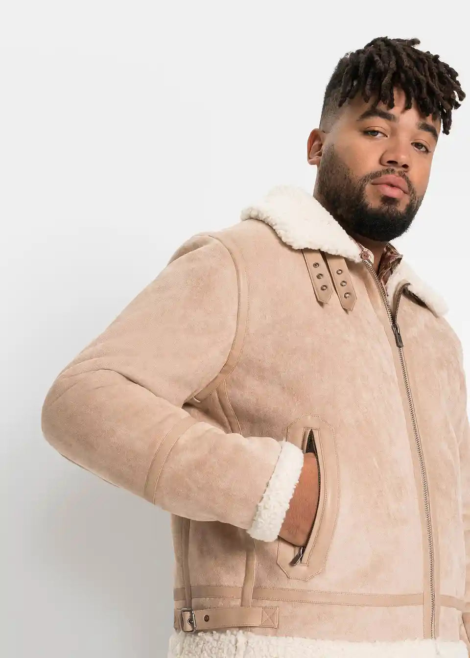 Robustna Bomber Jakna iz Imitacije Usnja s Podlogo Teddy