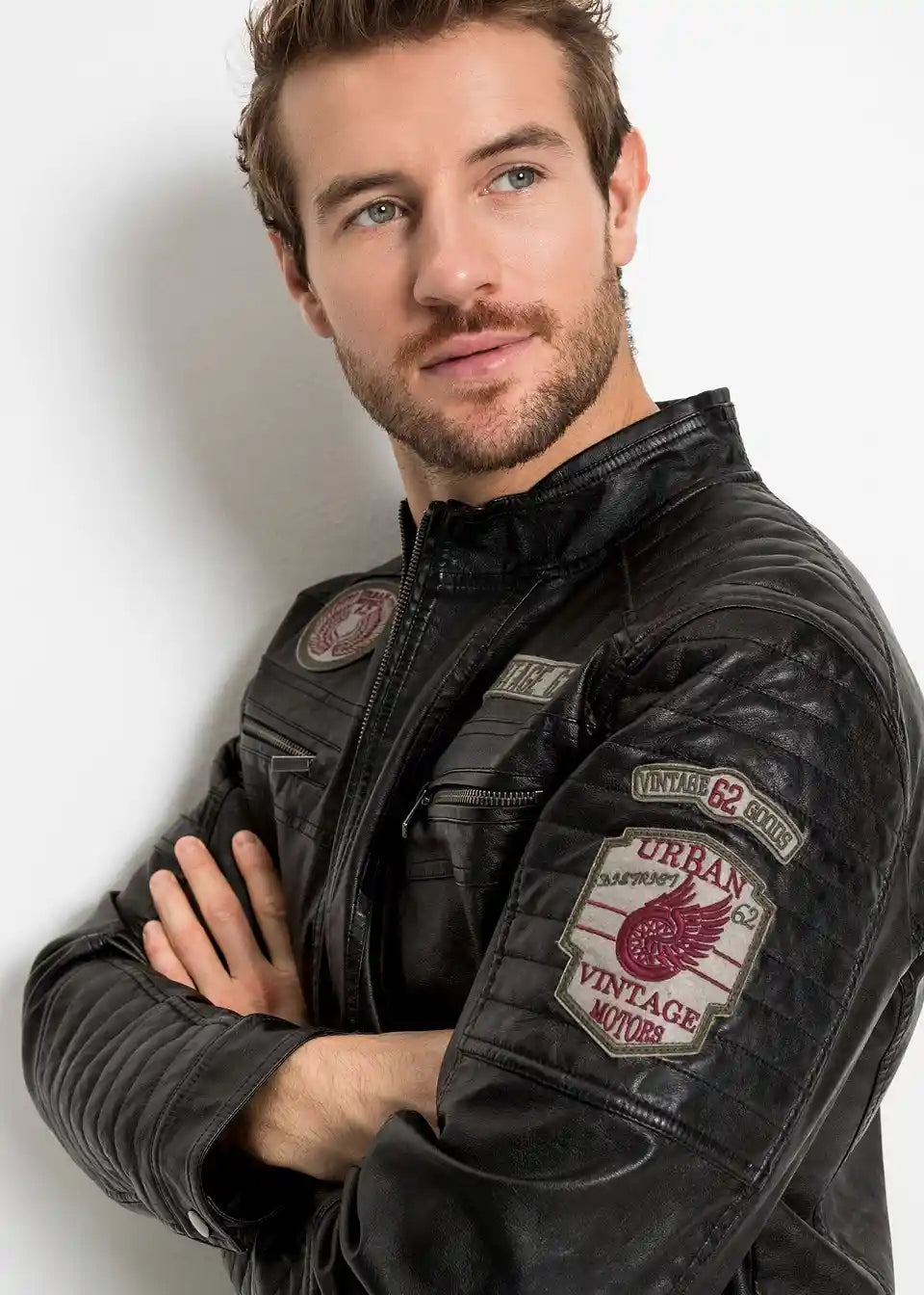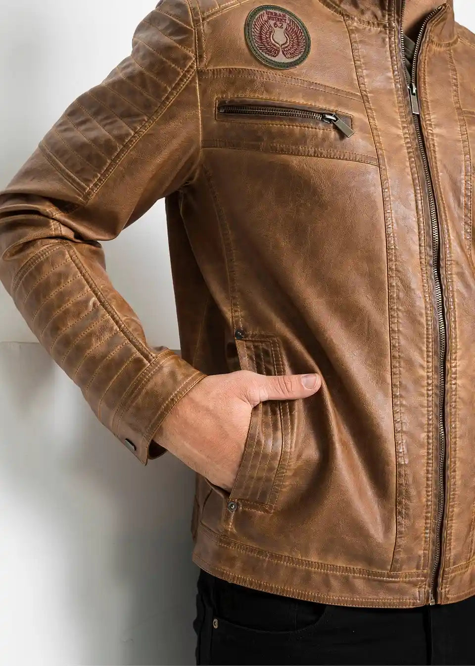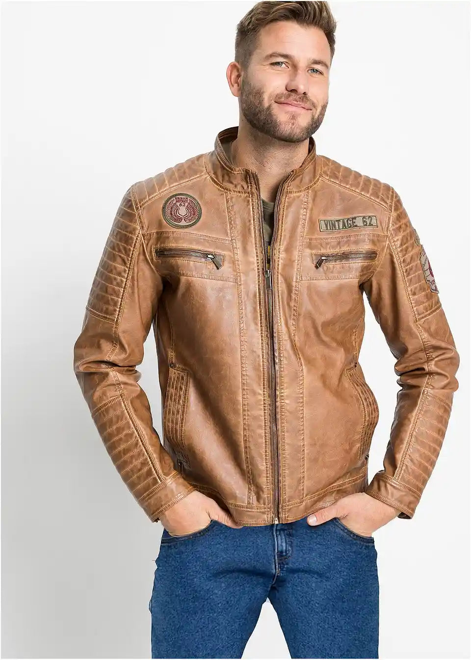 Jakna iz umetnega usnja z elegantnim prešitim vzorcem