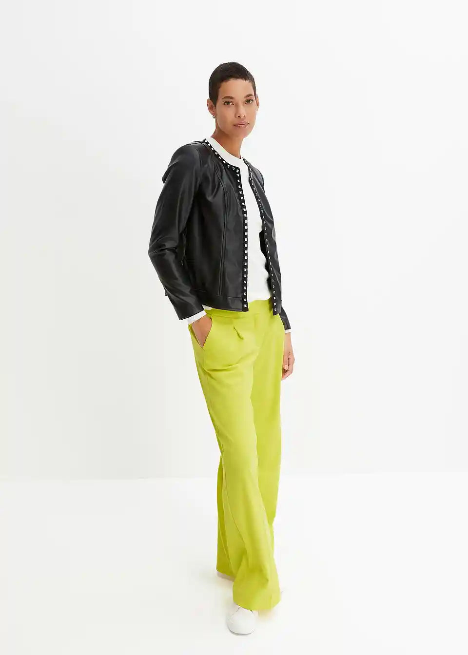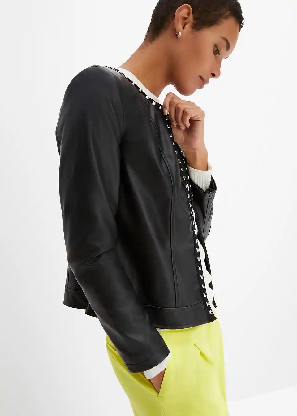 Brezčasen blazer iz umetnega usnja z zakovicami
