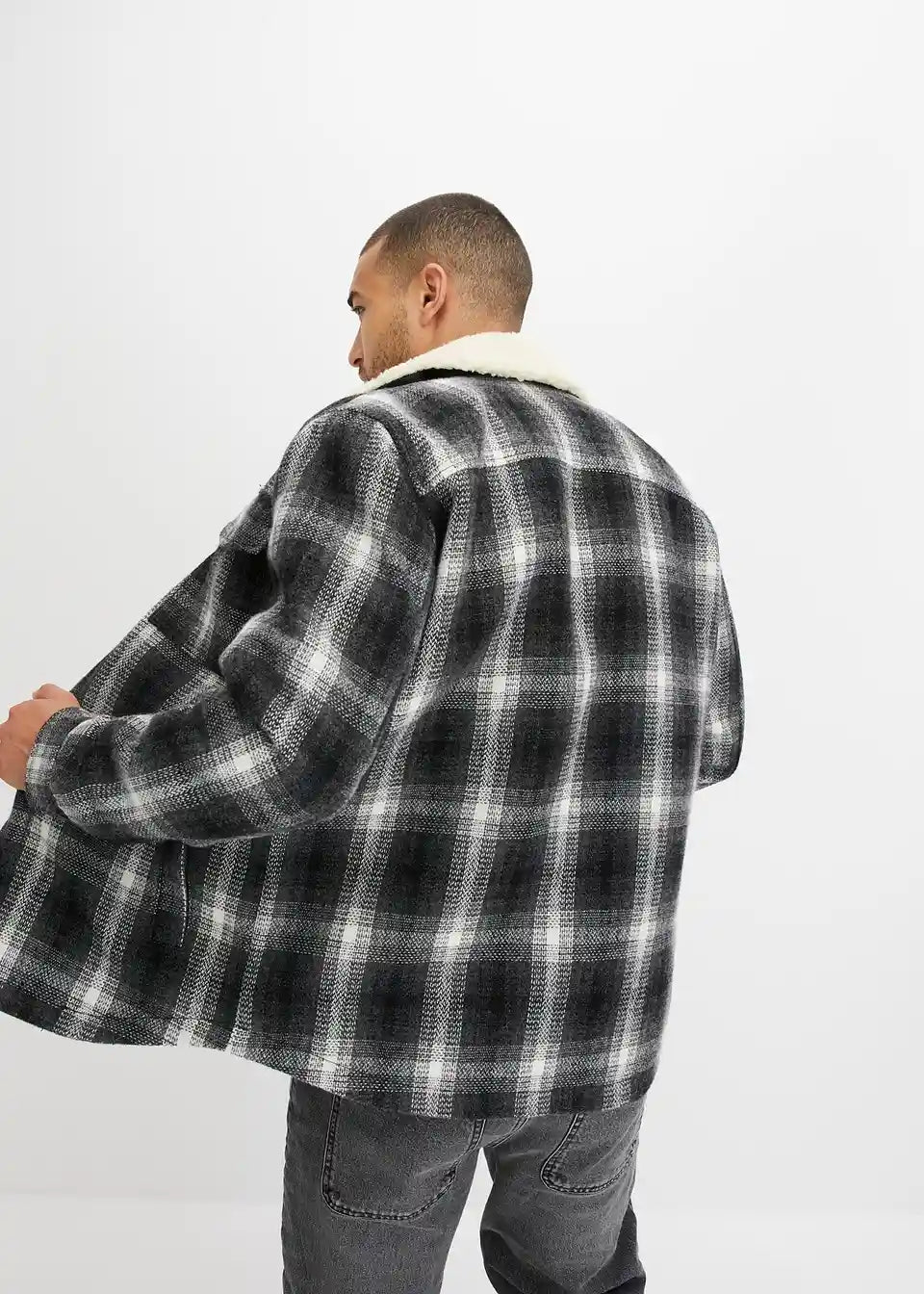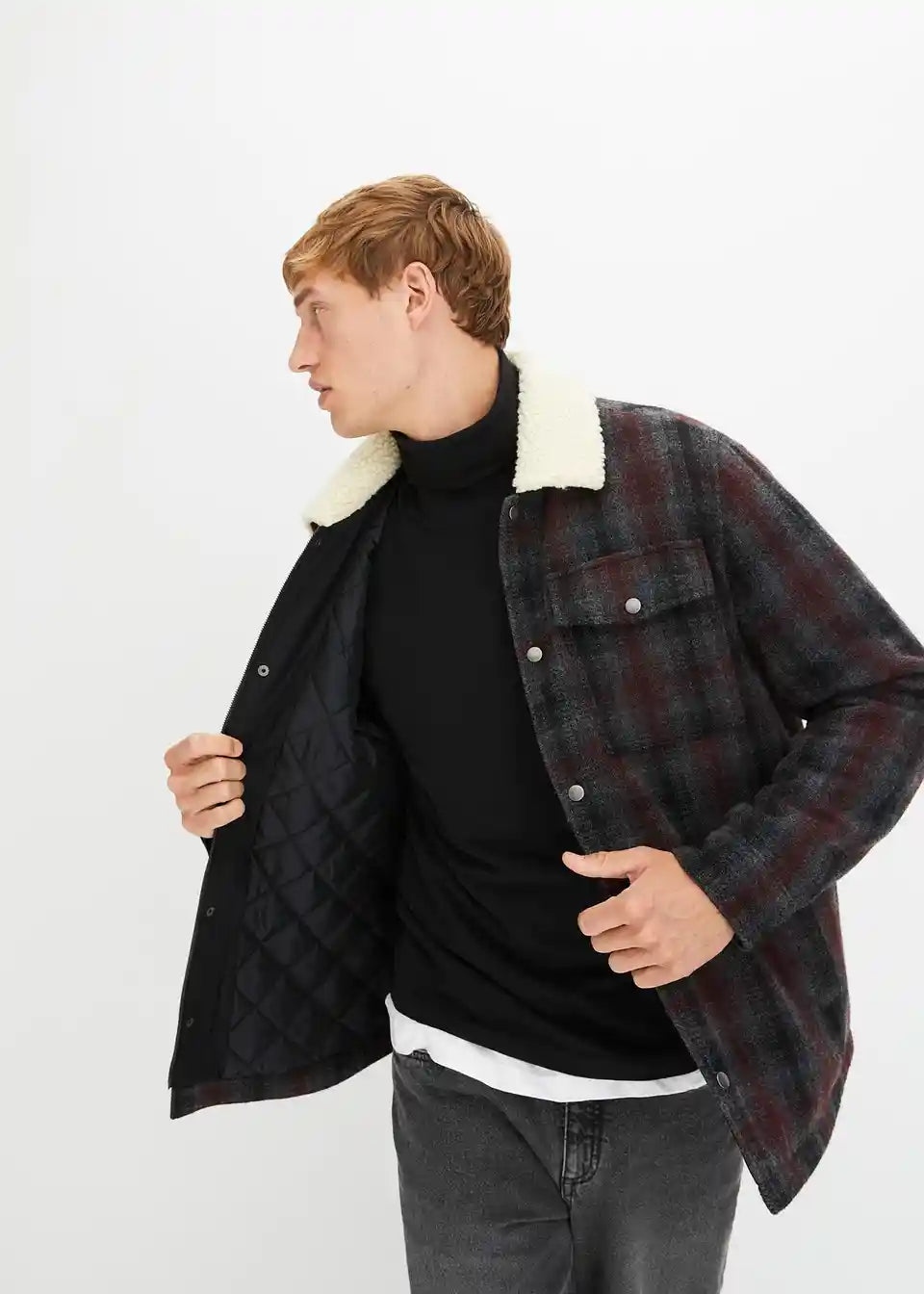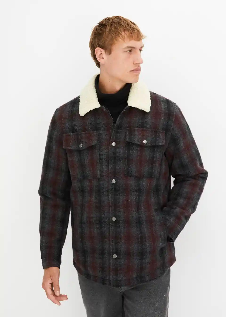 Srajčna jakna z ovratnikom iz umetnega ovčjega krzna
