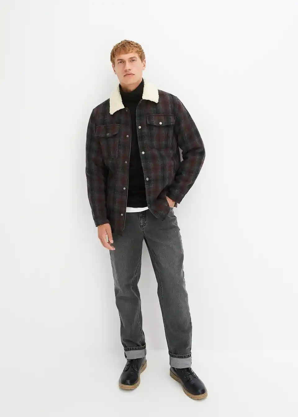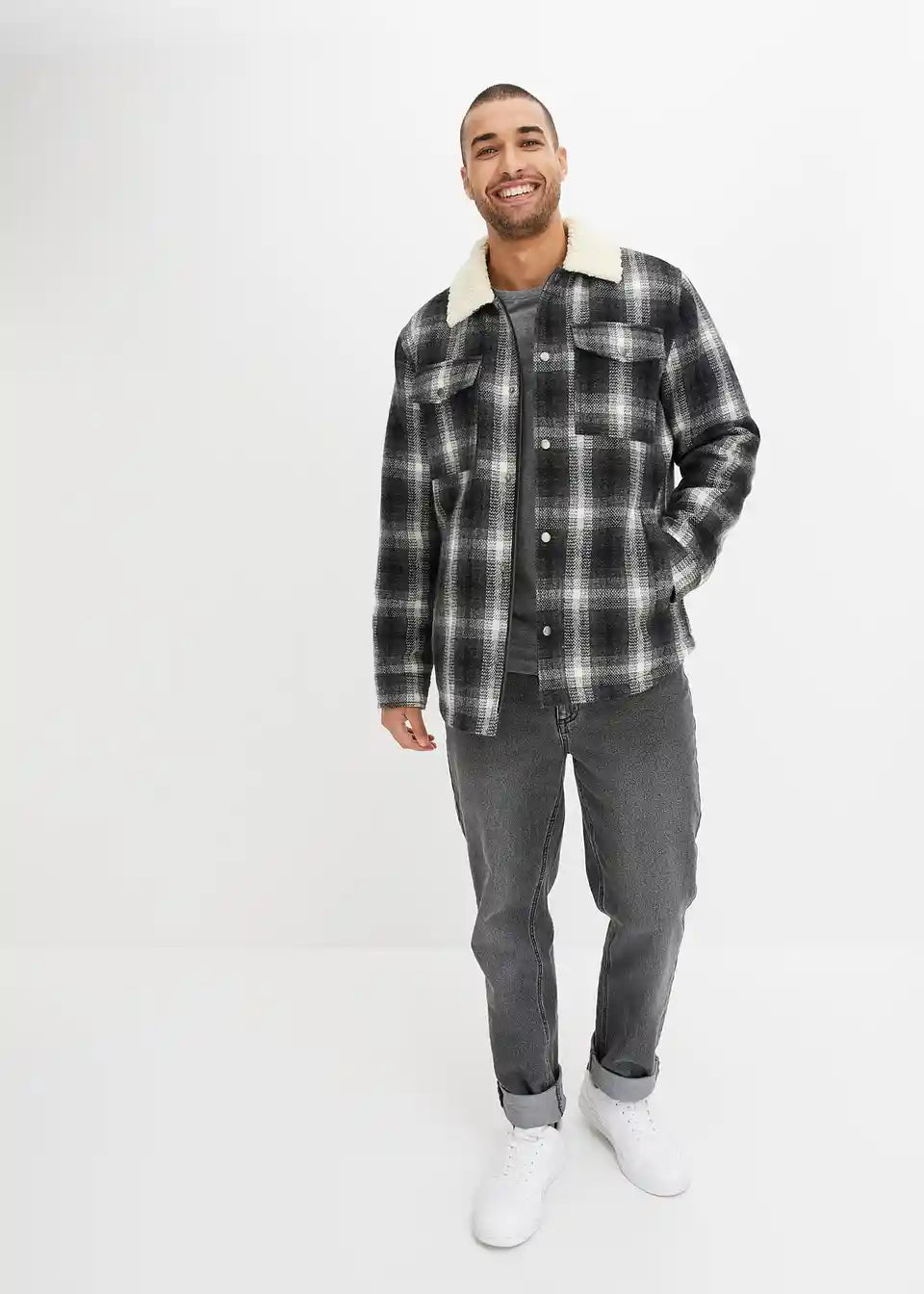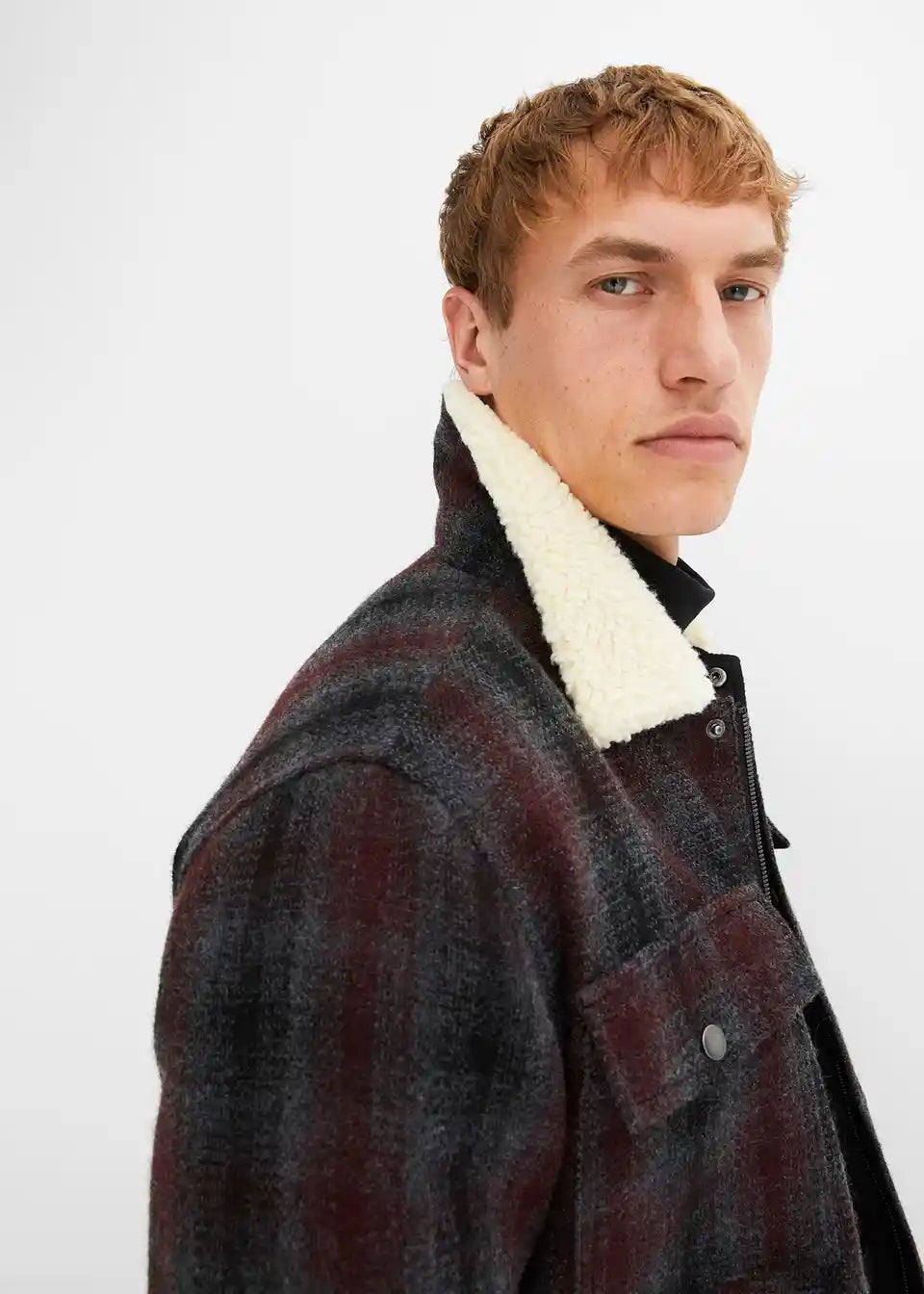 Srajčna jakna z ovratnikom iz umetnega ovčjega krzna