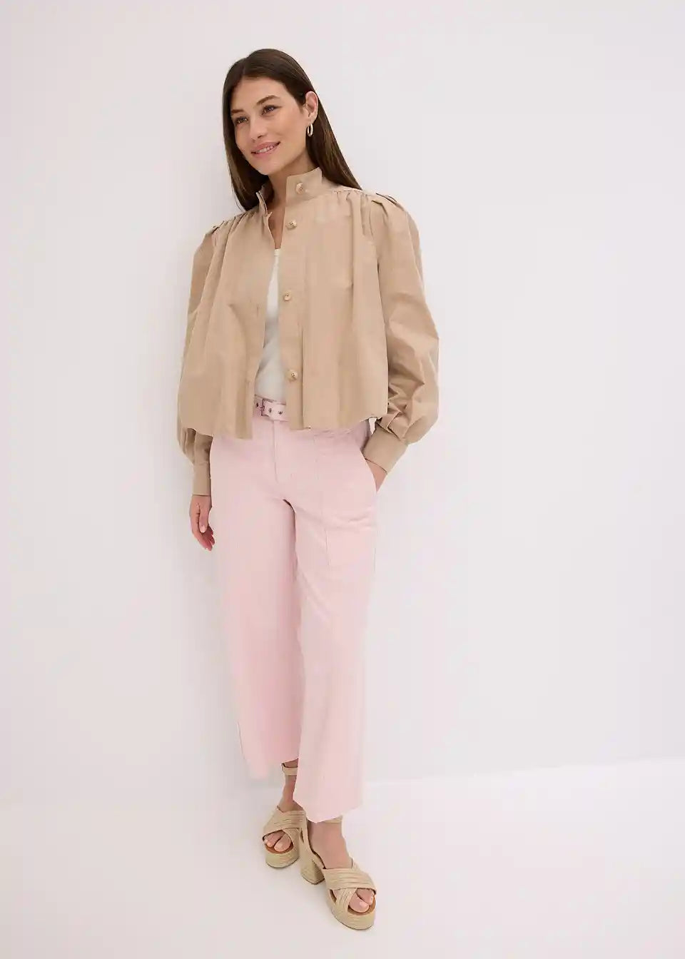 modna jakna z balonskim robom in voluminoznimi rokavi