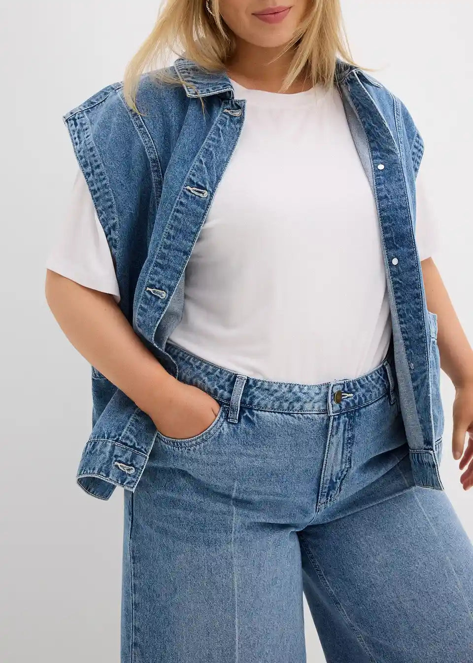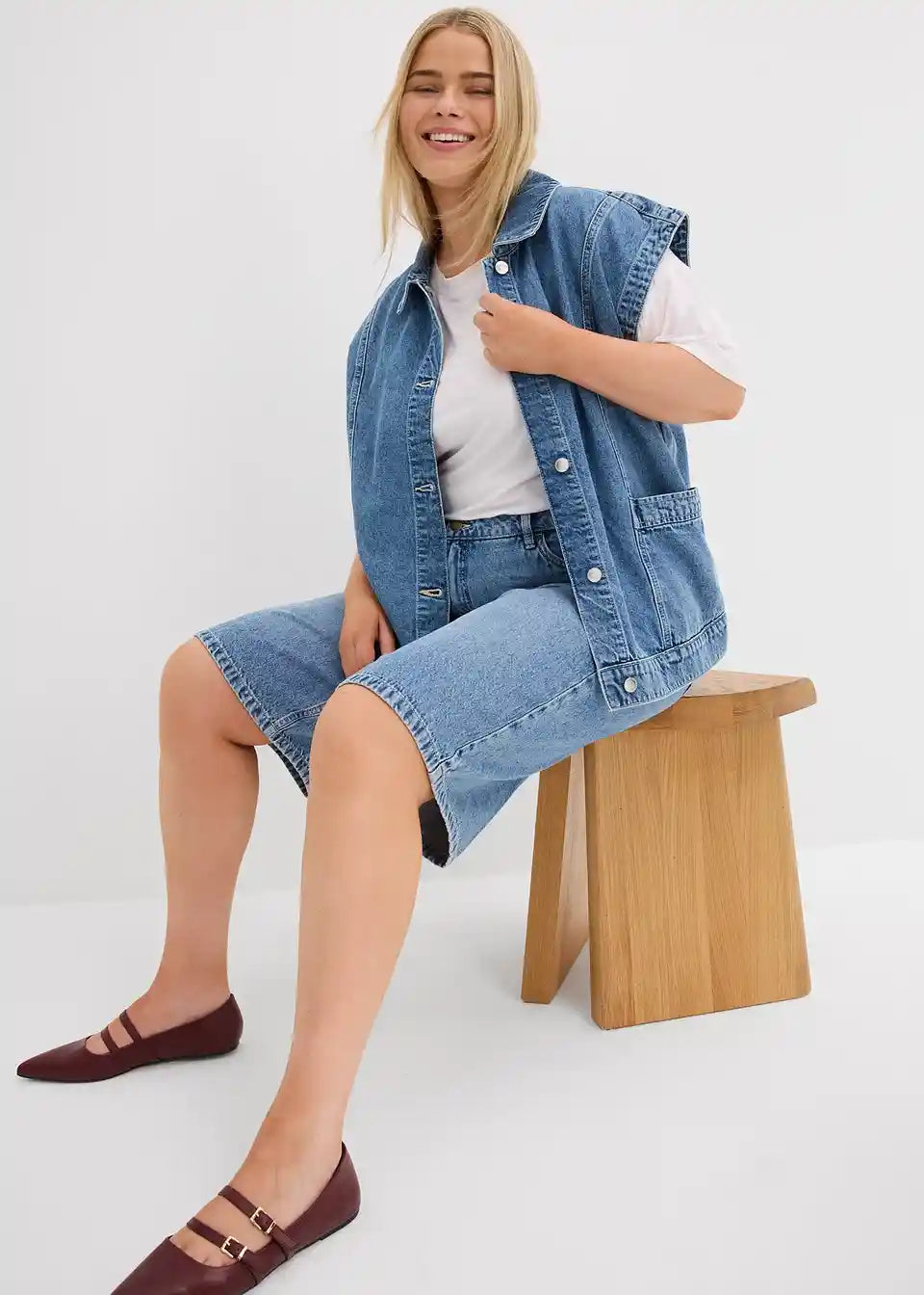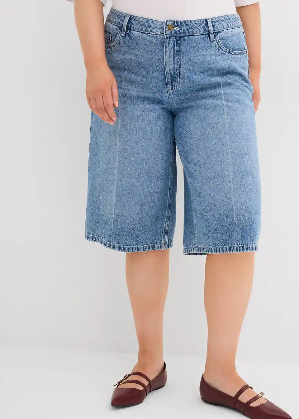 Bermuda kavbojke s srednje visokim pasom iz rahlo raztegljivega materiala