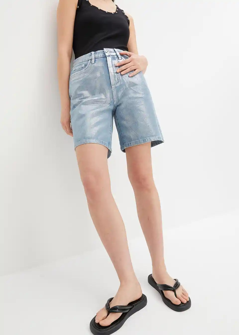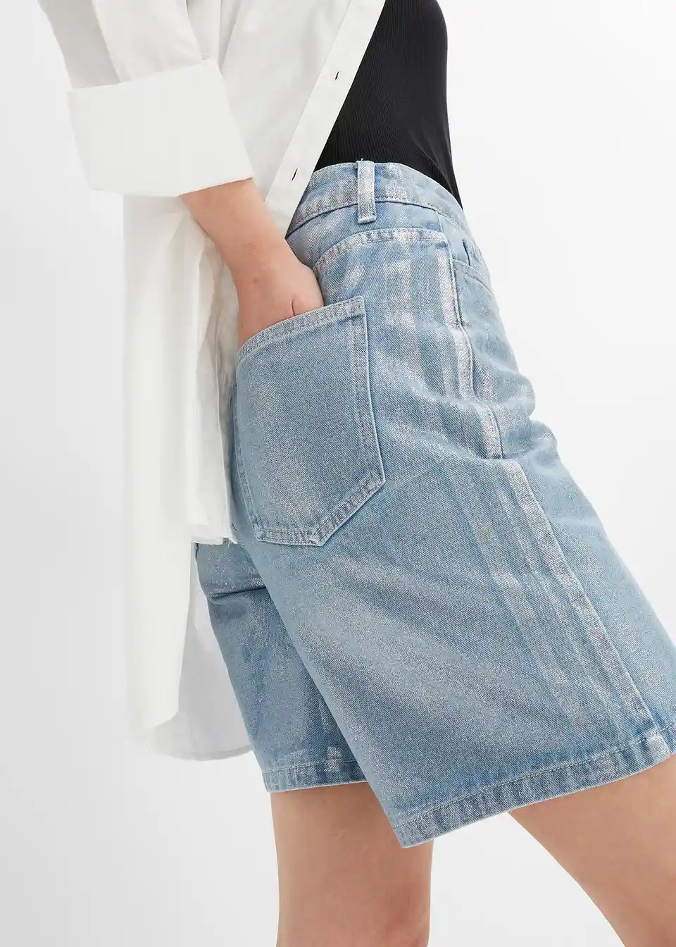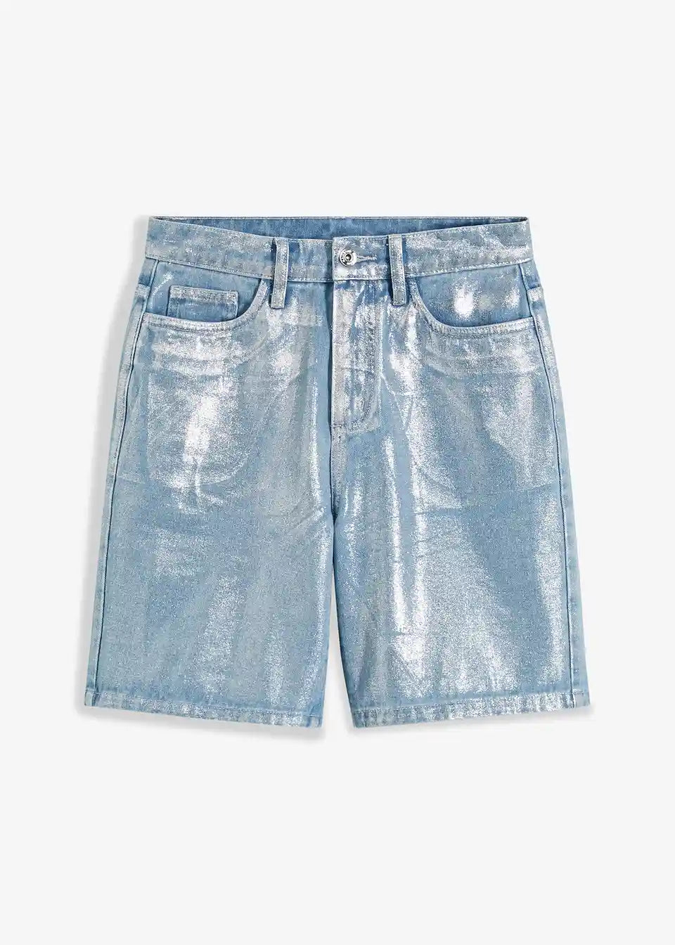 Trendy Jeans-Bermuda z modnim bleščečim premazom