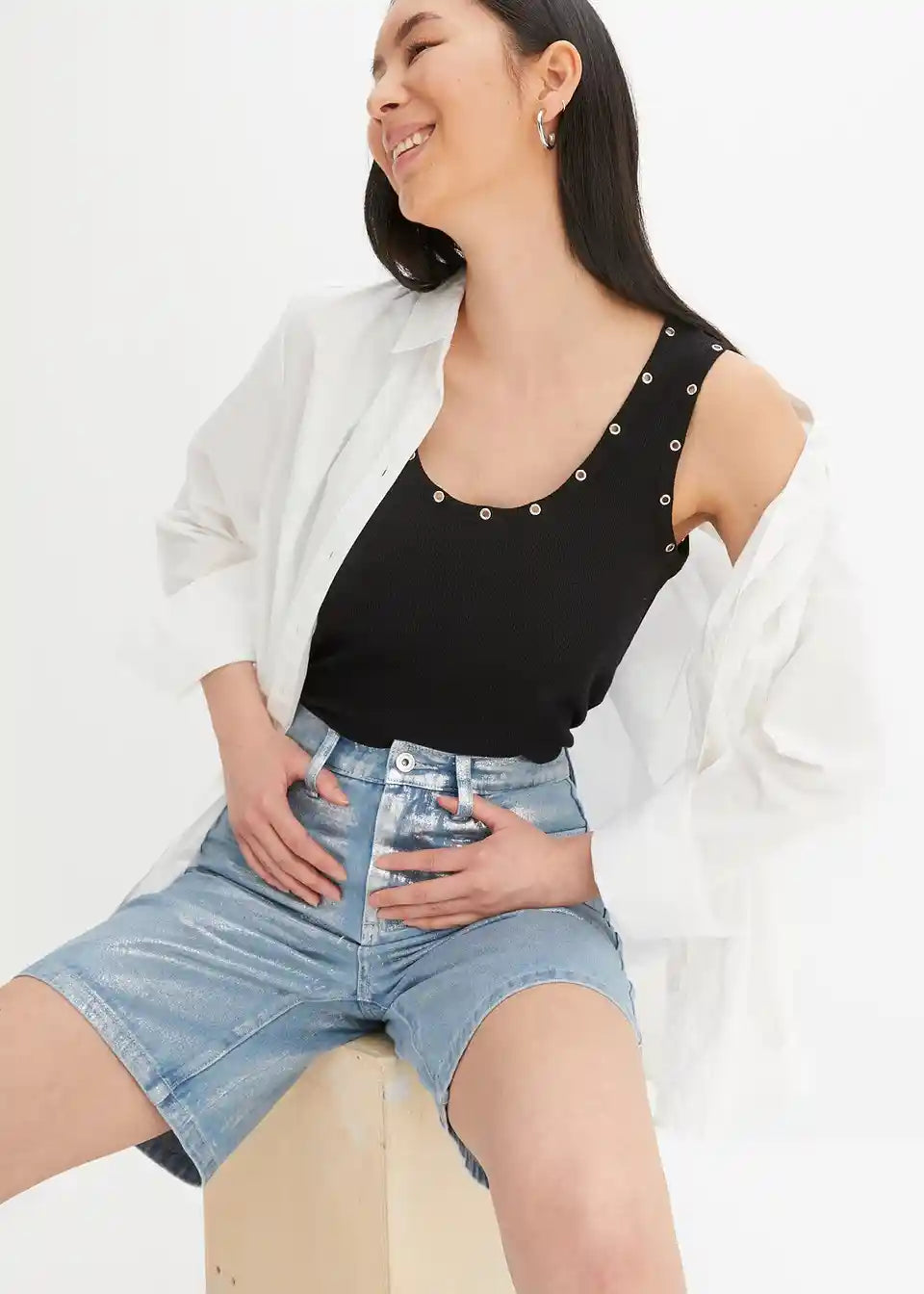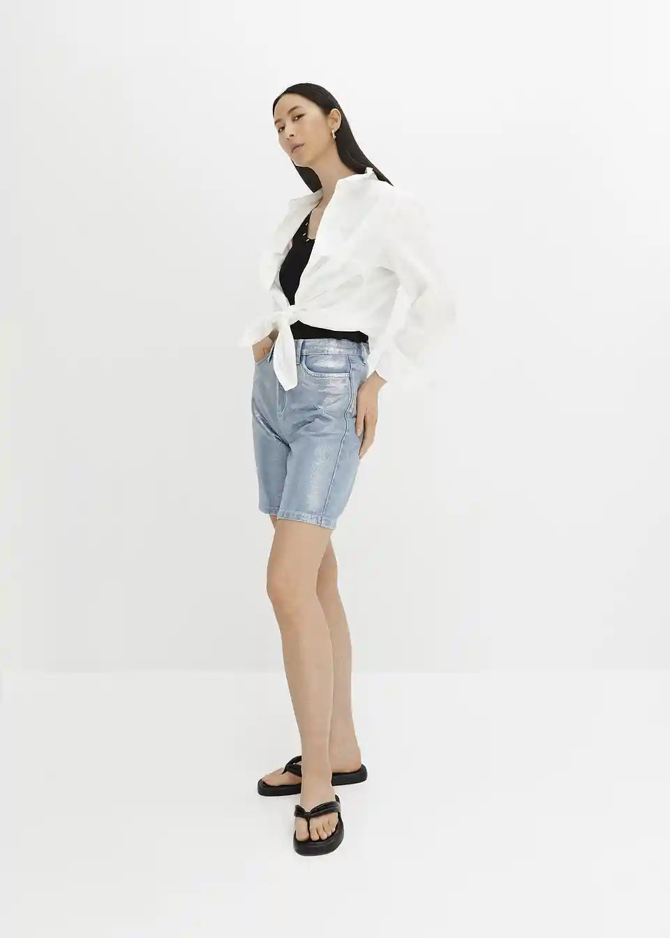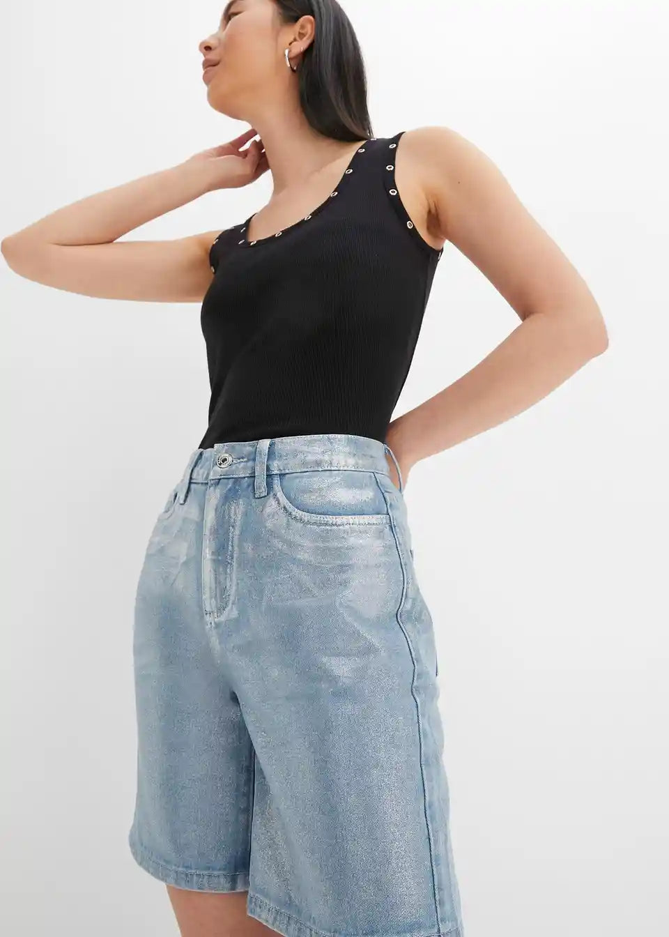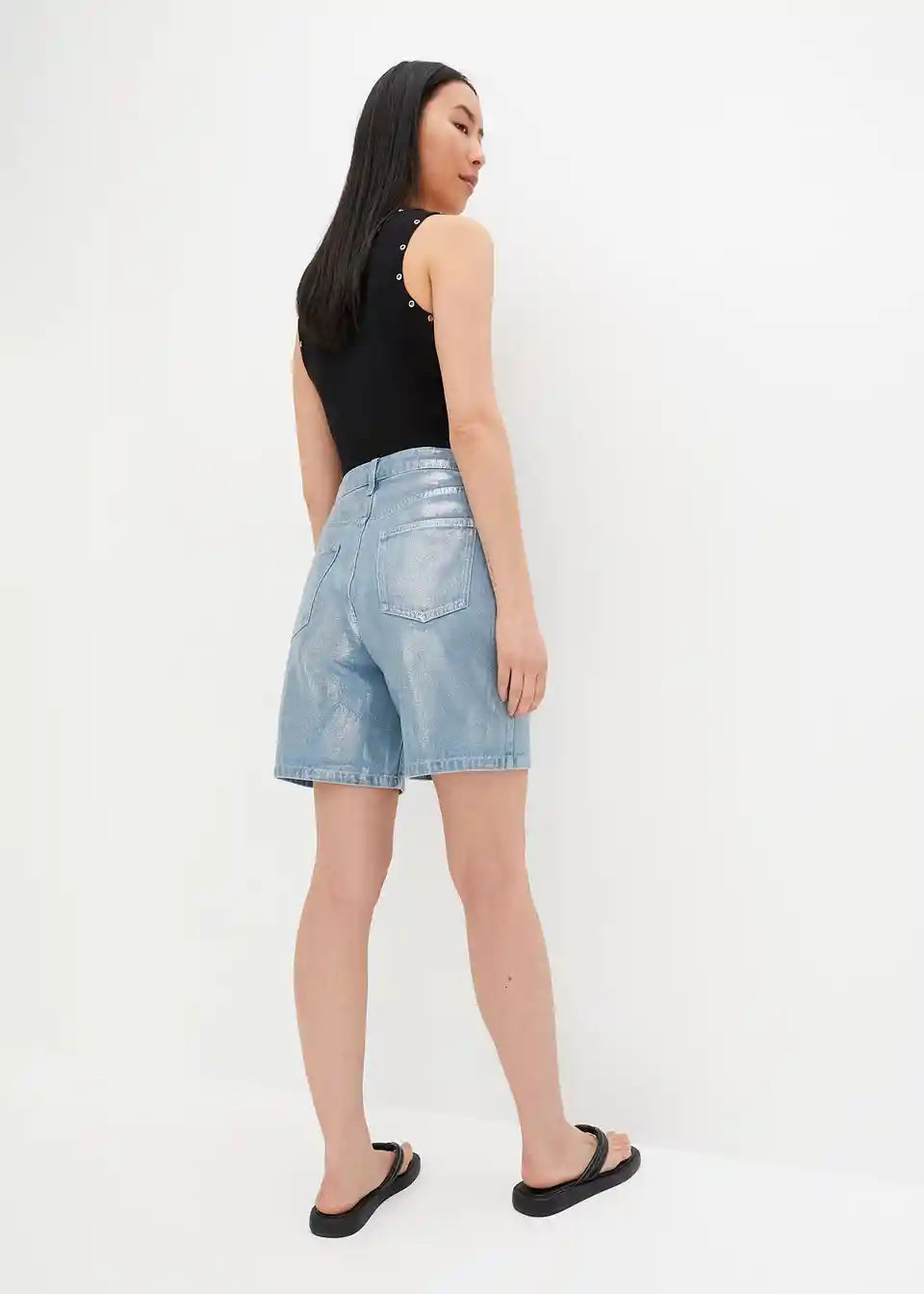 Trendy Jeans-Bermuda z modnim bleščečim premazom