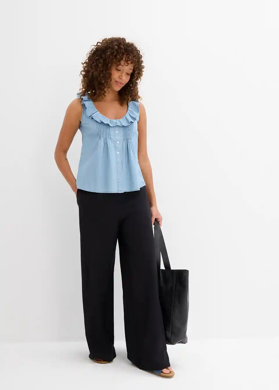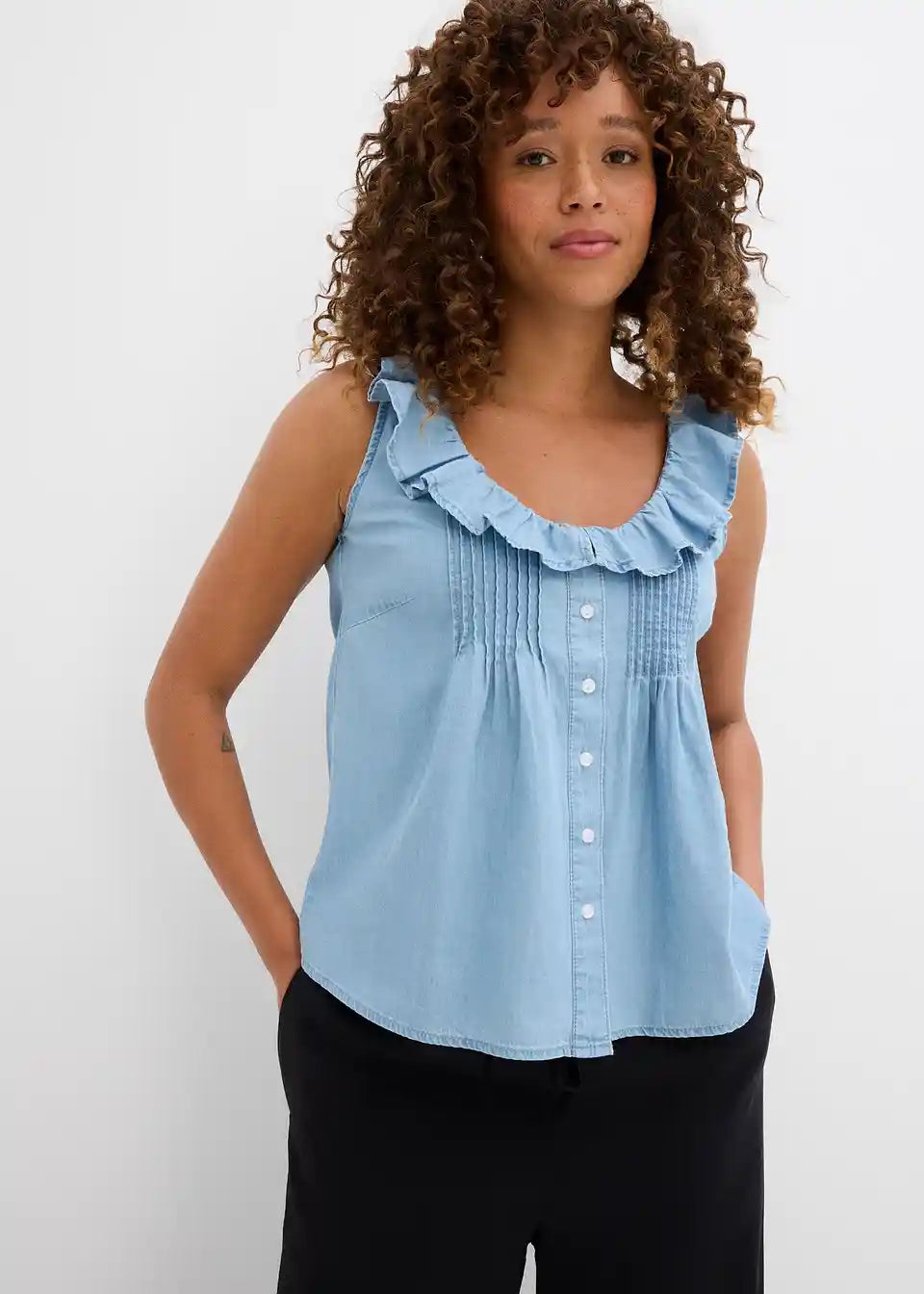 Jeans bluzni top iz organskega bombaža z naborki