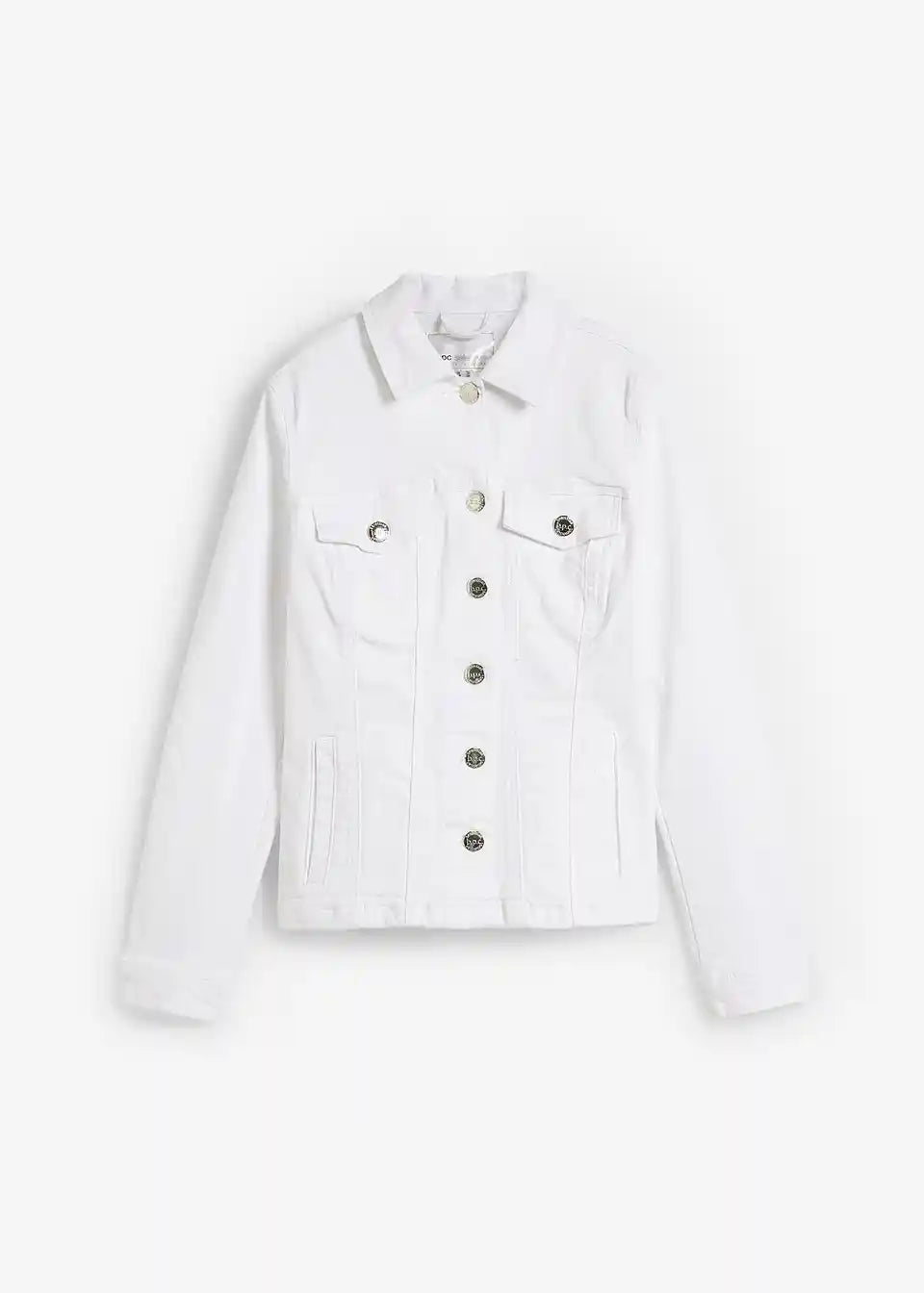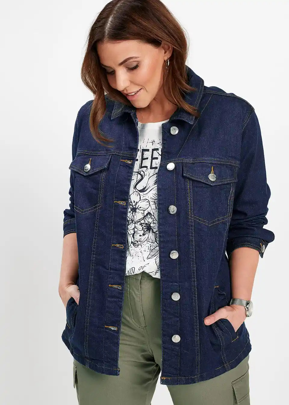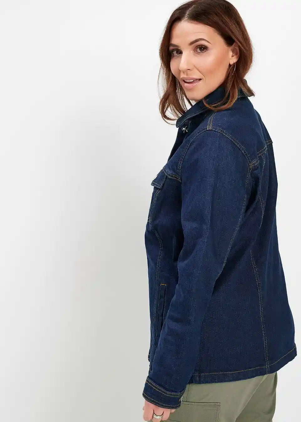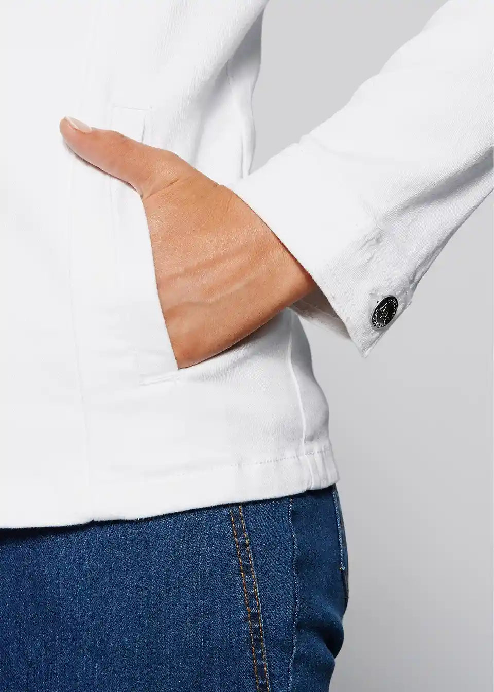 rahlo oprijeta, v stilu jeans jaken s stranskimi žepi, gumbnim zapenjanjem in tipičnimi delilnimi šivi, dolžina približno 57 cm (velikost 36) do približno 70 cm (velikost 52), pralna v pralnem stroju,