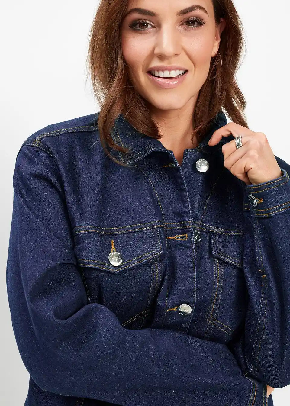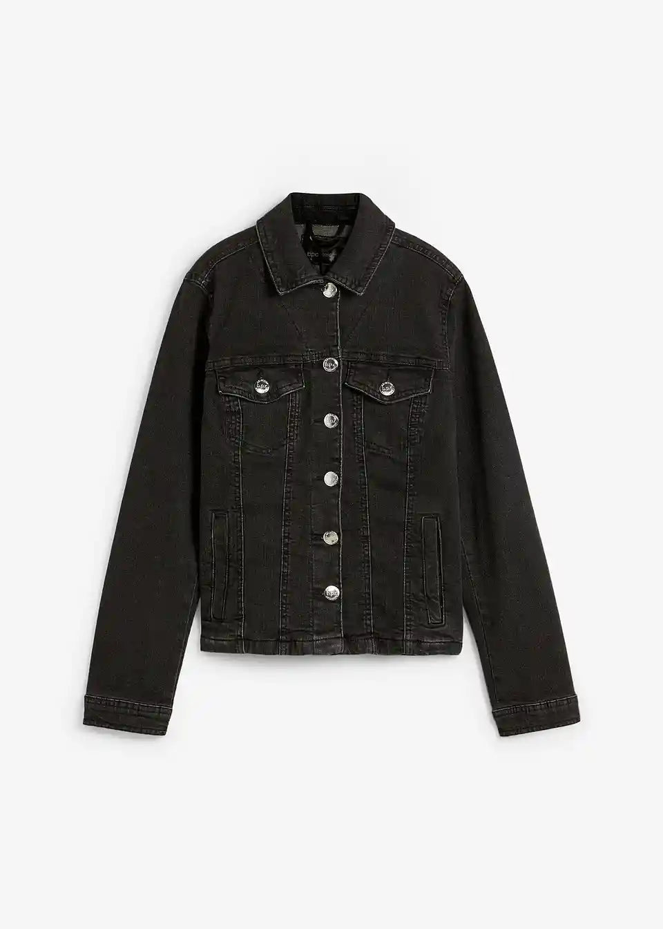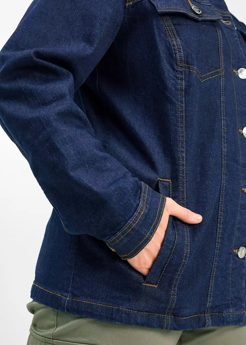 rahlo oprijeta, v stilu jeans jaken s stranskimi žepi, gumbnim zapenjanjem in tipičnimi delilnimi šivi, dolžina približno 57 cm (velikost 36) do približno 70 cm (velikost 52), pralna v pralnem stroju,