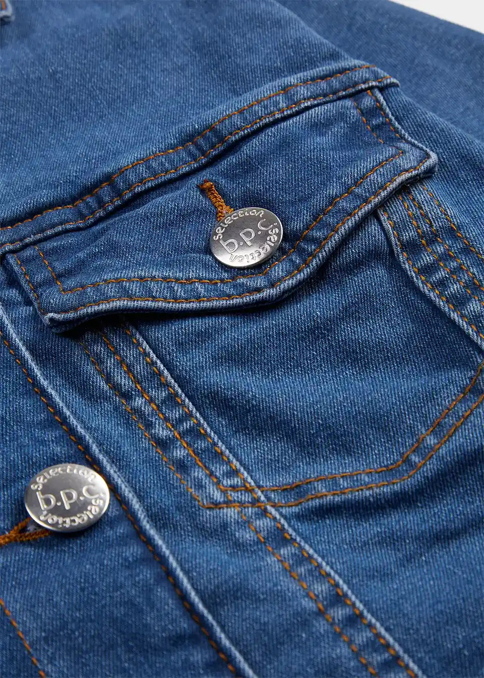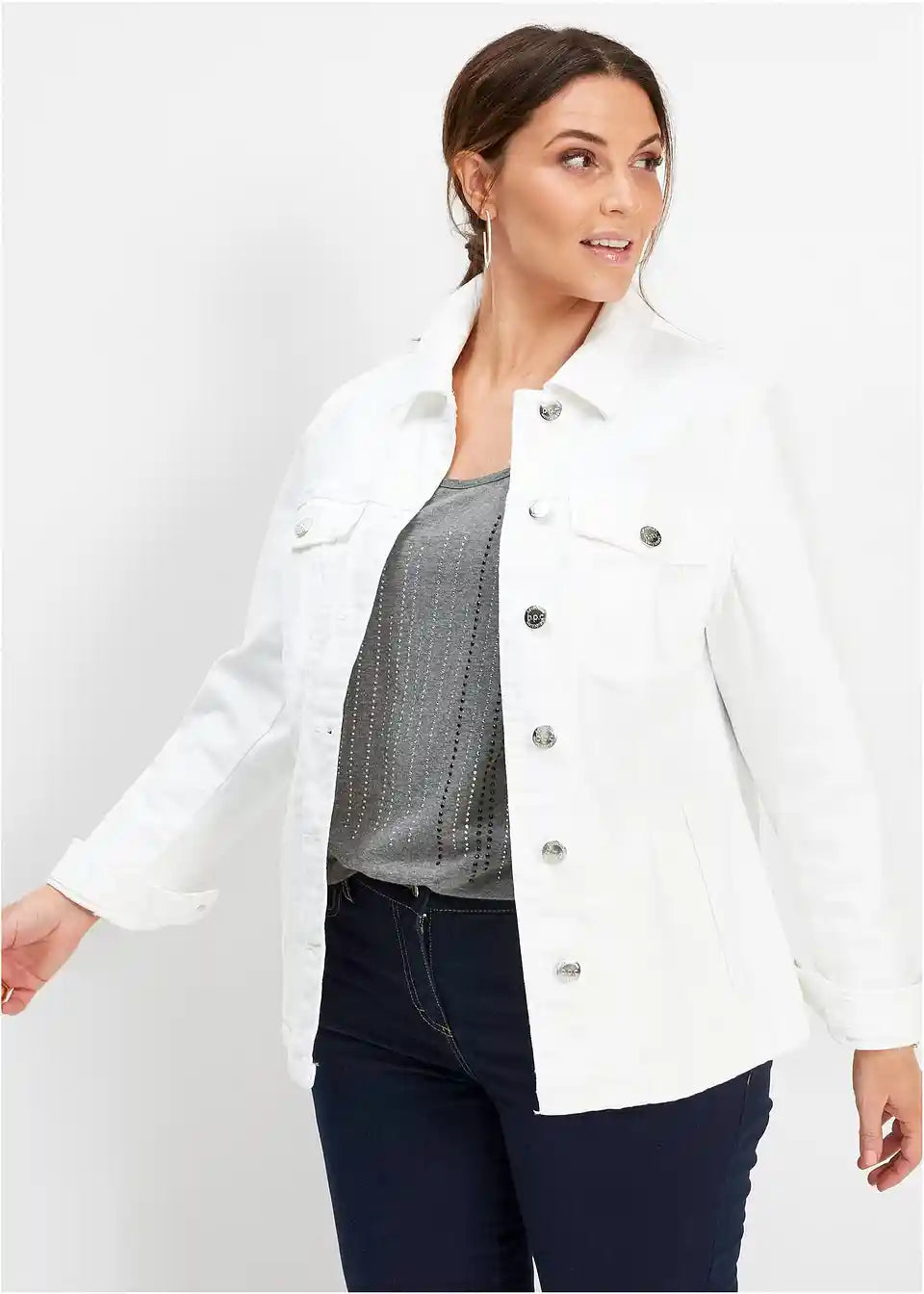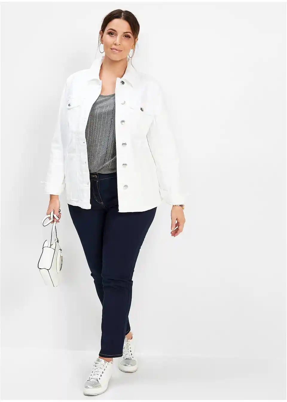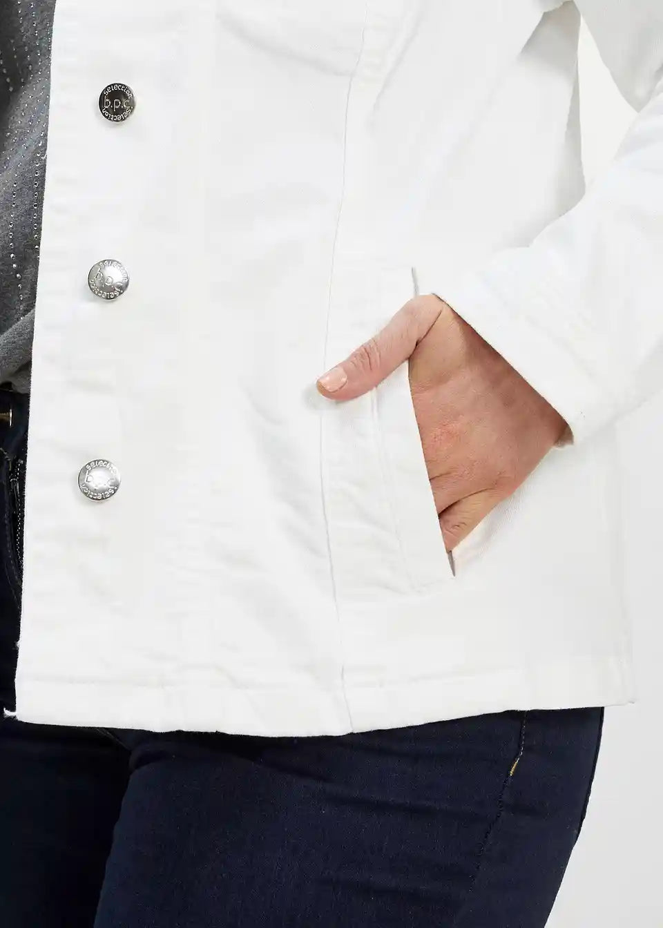 rahlo oprijeta, v stilu jeans jaken s stranskimi žepi, gumbnim zapenjanjem in tipičnimi delilnimi šivi, dolžina približno 57 cm (velikost 36) do približno 70 cm (velikost 52), pralna v pralnem stroju,