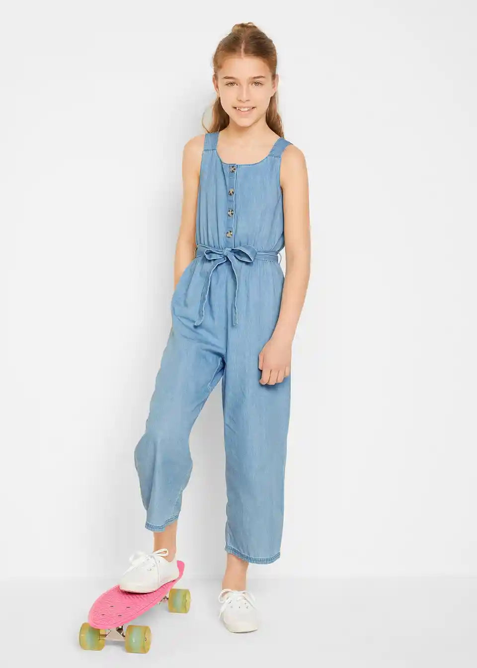 Ta trendovski jeans overall v videzu denima je prava poslastica za vsa kul dekleta. Ima široke naramnice in ravno krojene hlačnice za optimalno udobje pri nošenju.