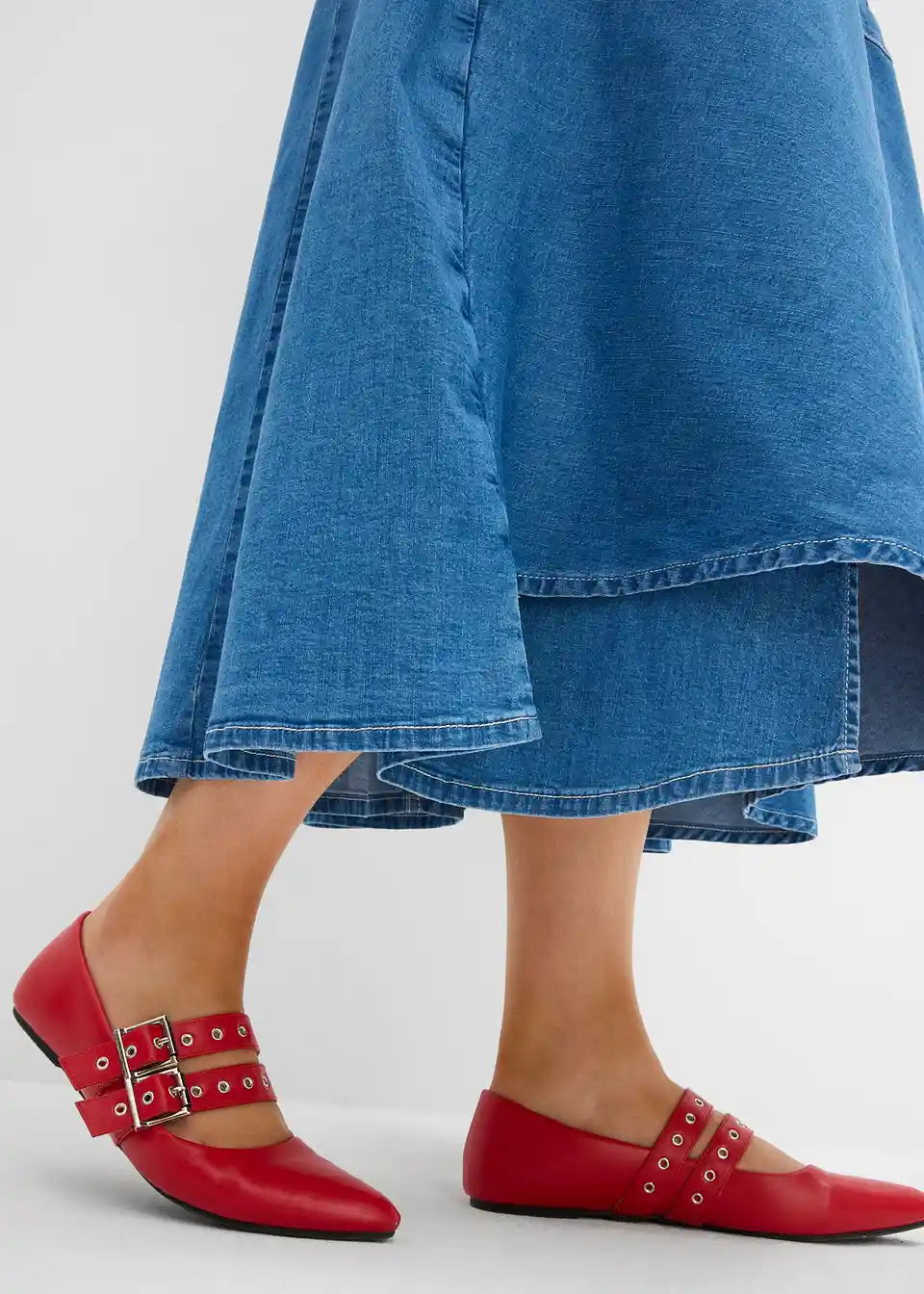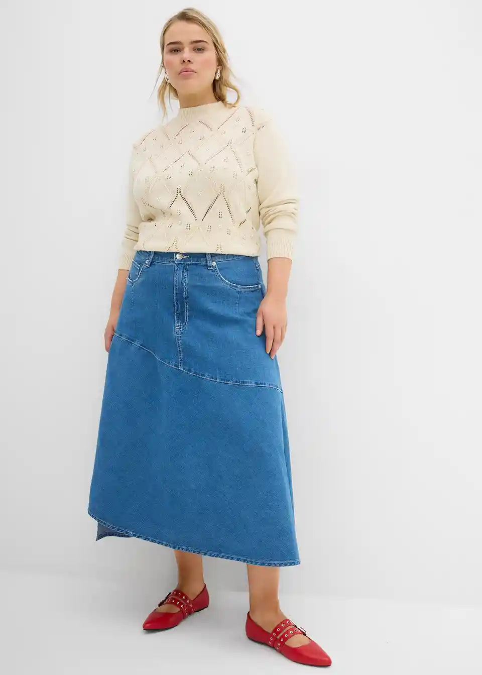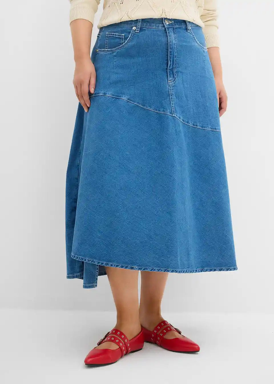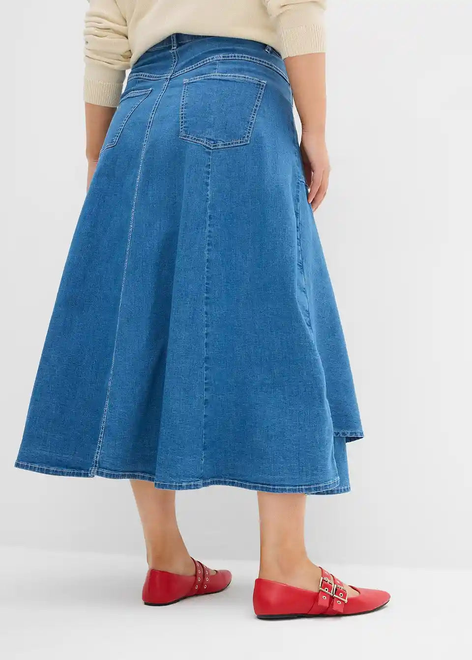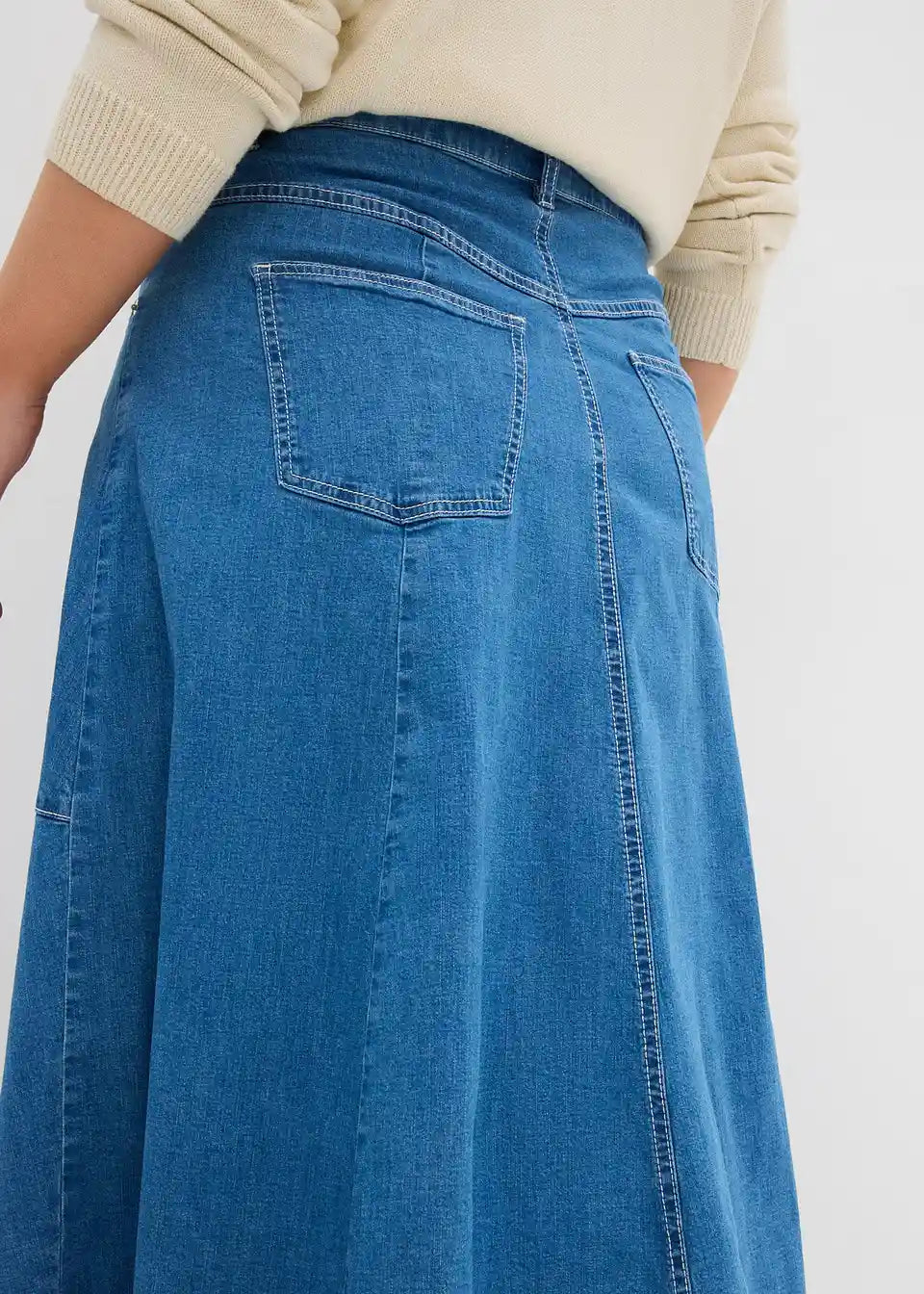 Krilo iz jeansa z visokim pasom v midi dolžini