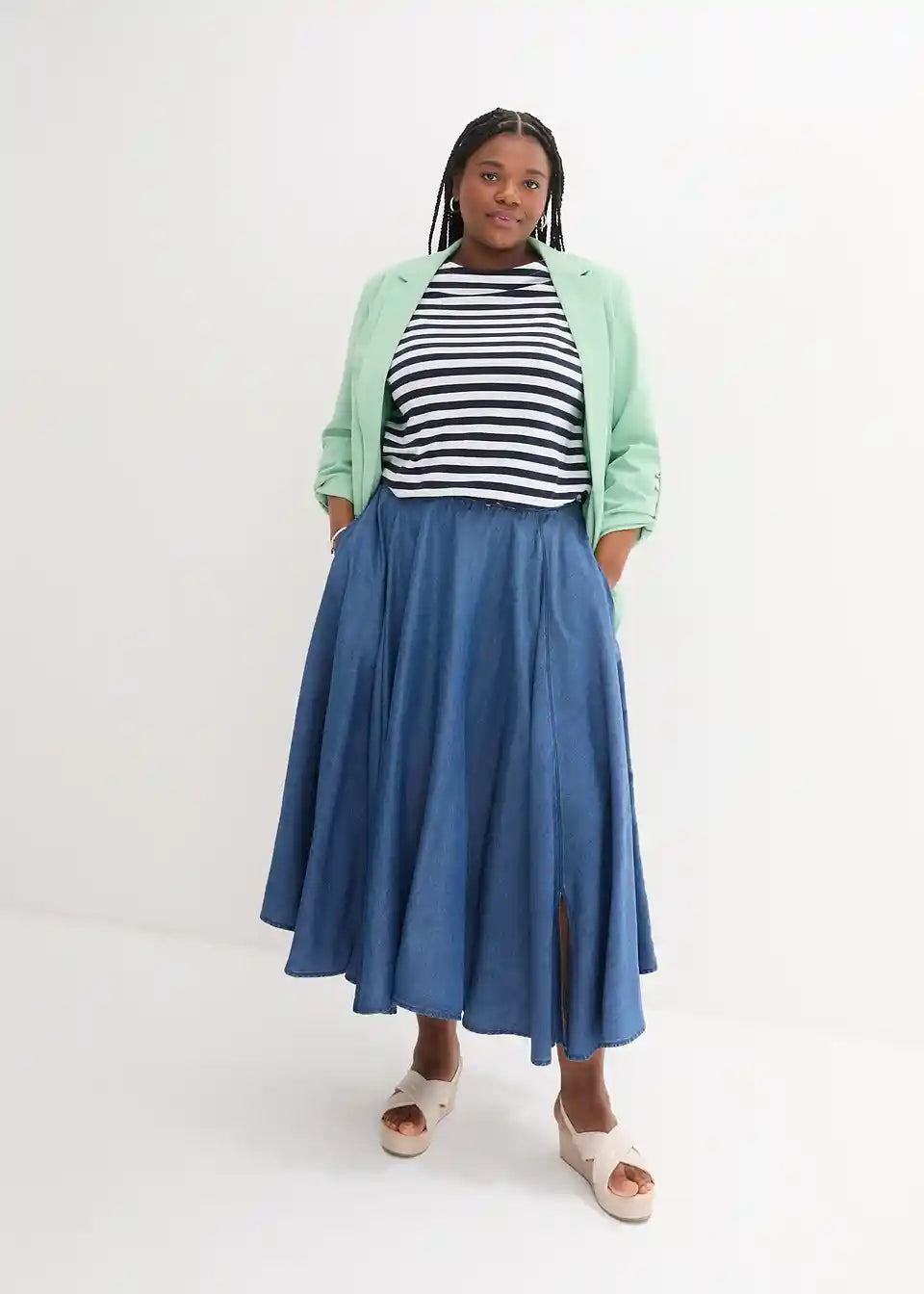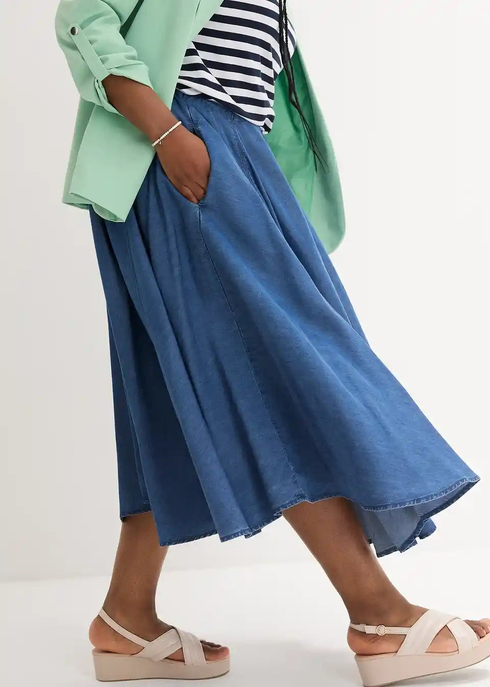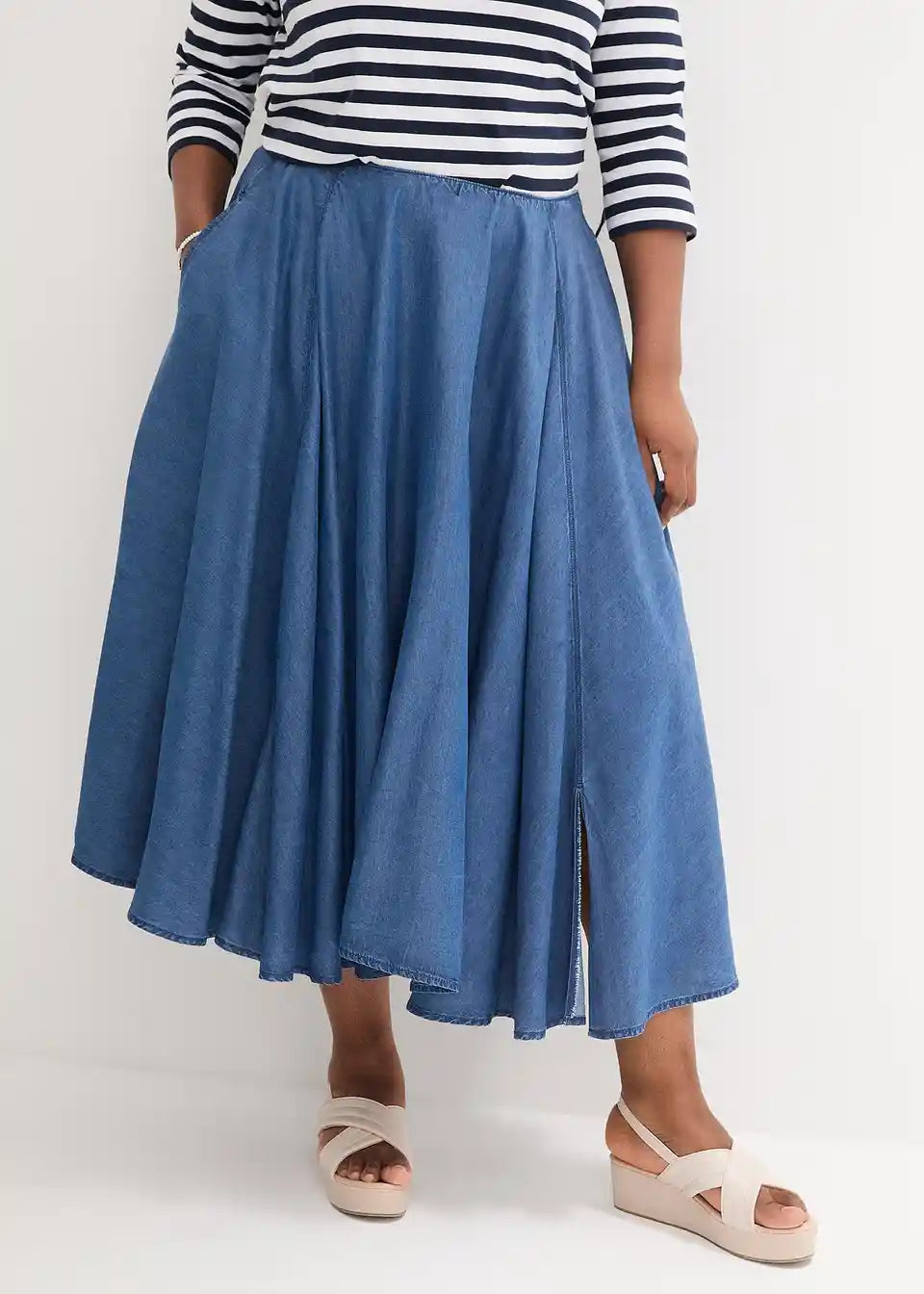 Lyocell krilo z udobnim pasom in žepi v midi dolžini
