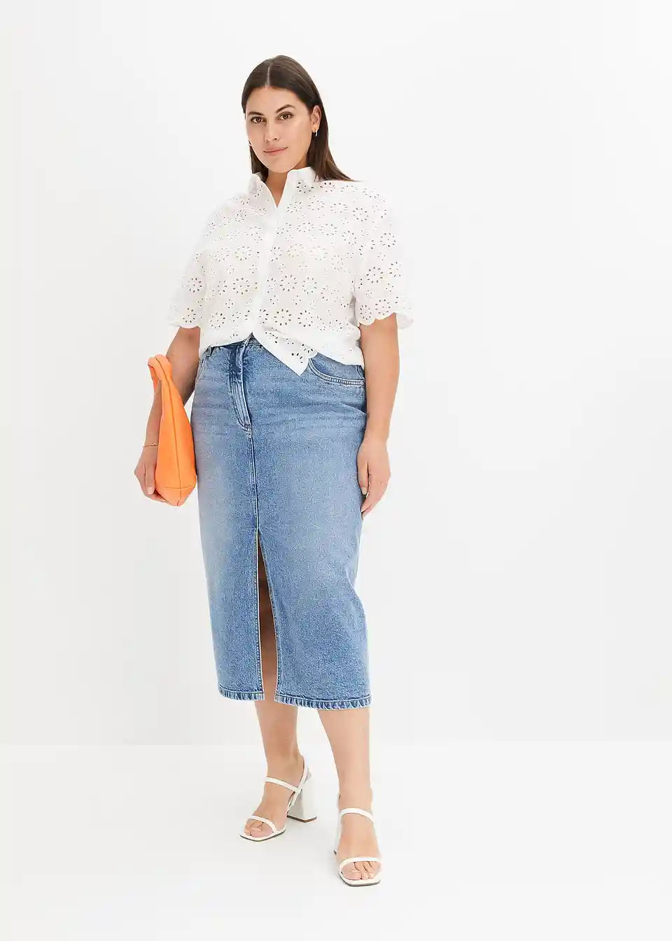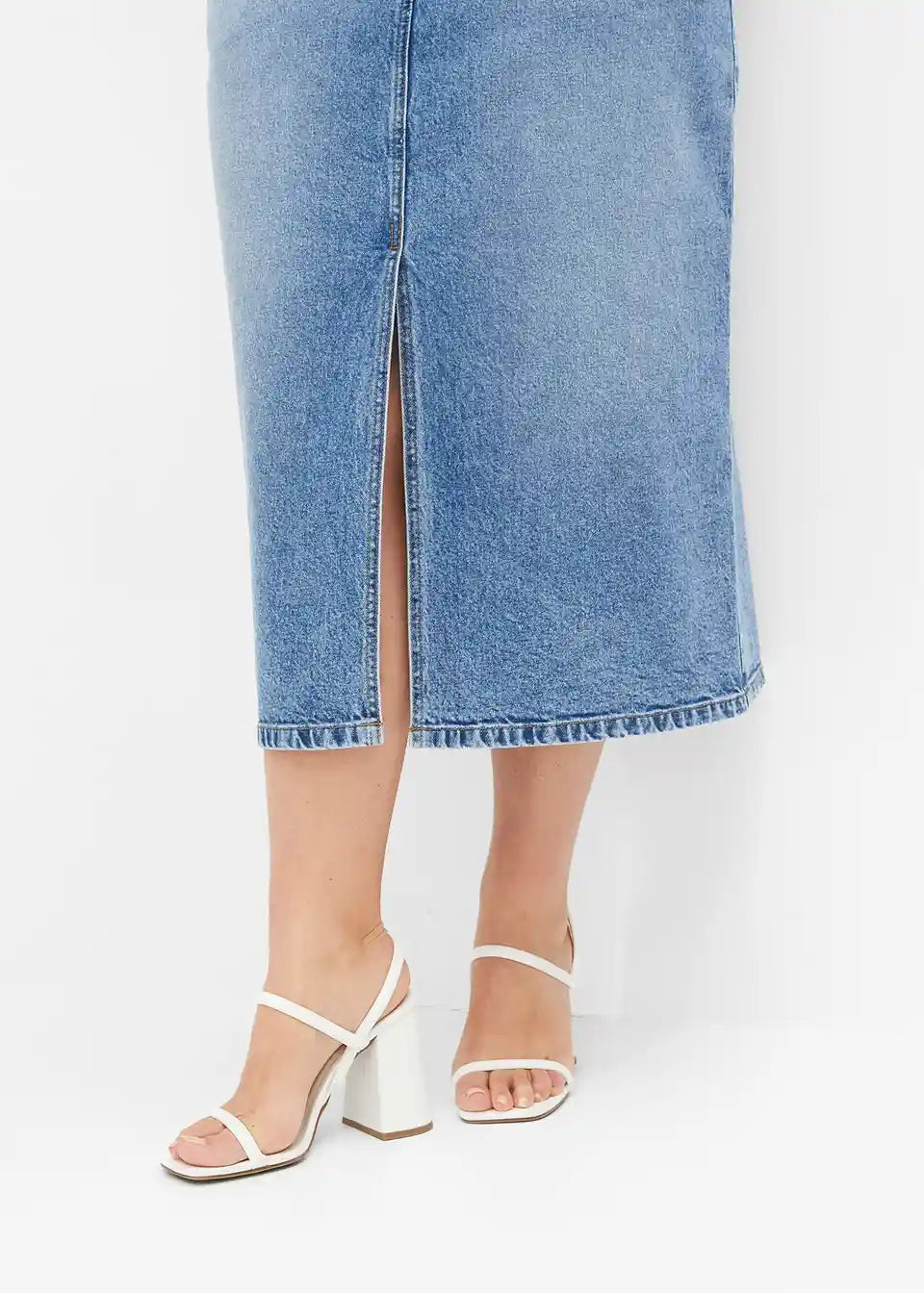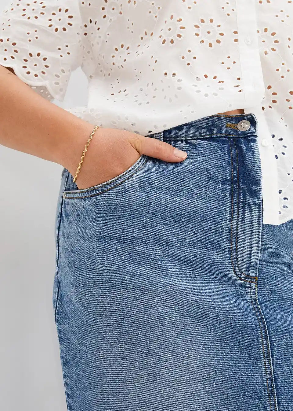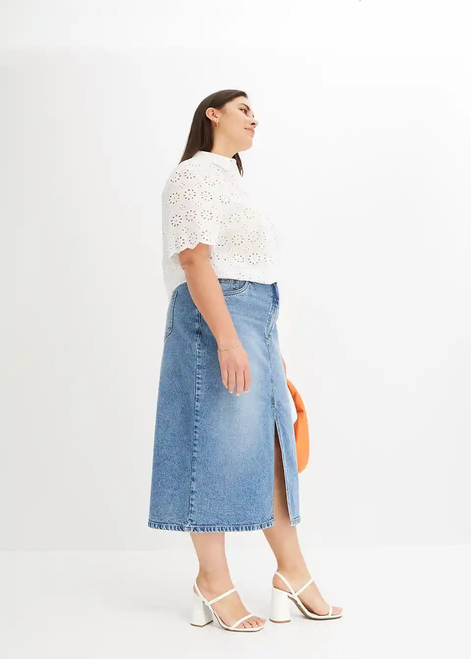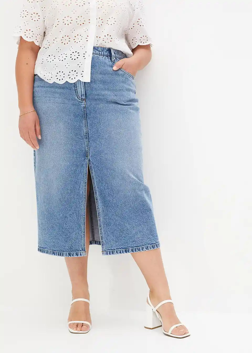Stilsko midi krilo iz denima s praktičnim hojnim razporkom