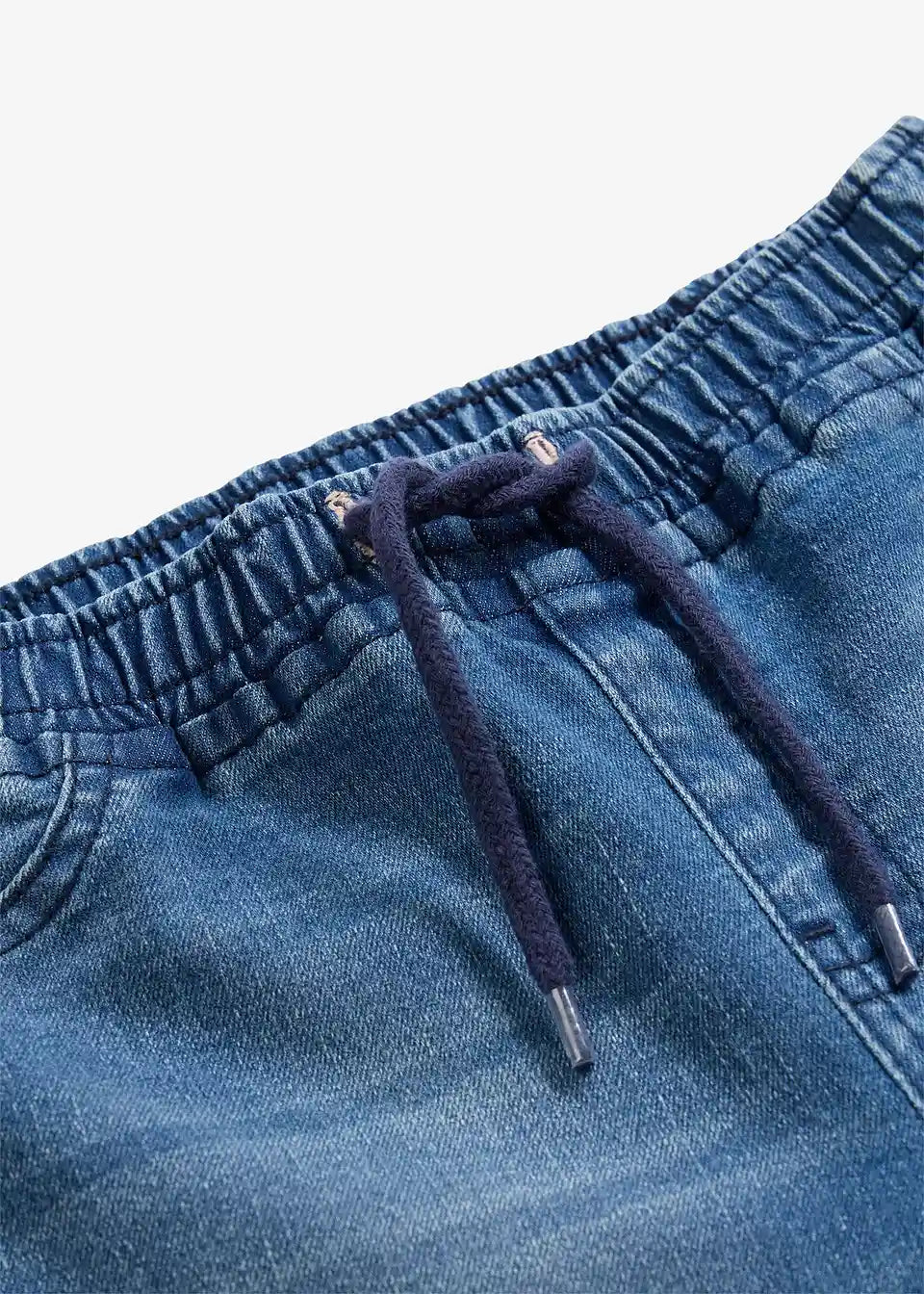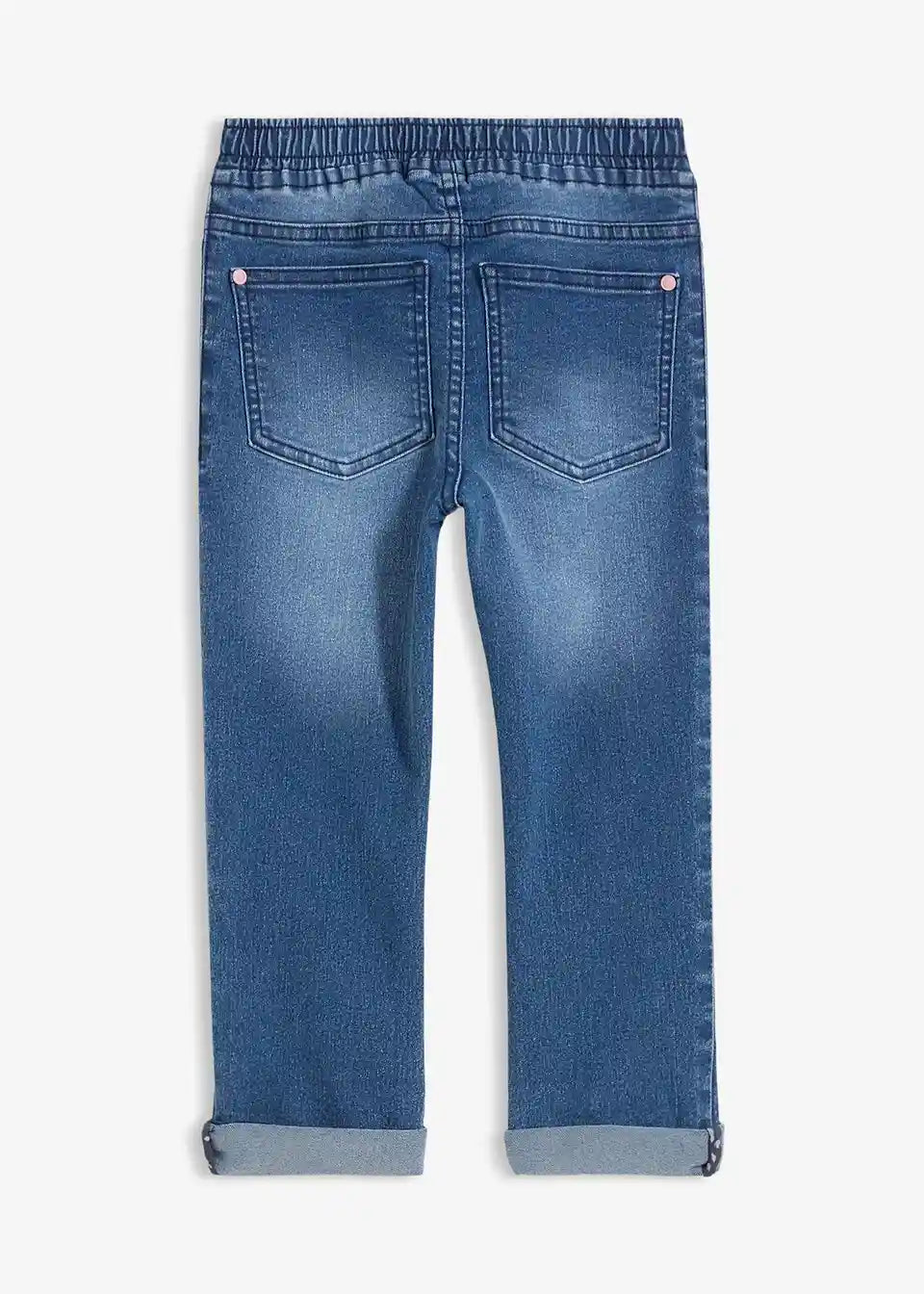 Udobne kavbojke brez zapenjanja z elastičnim pasom in kul spranimi predeli za sproščen moden videz