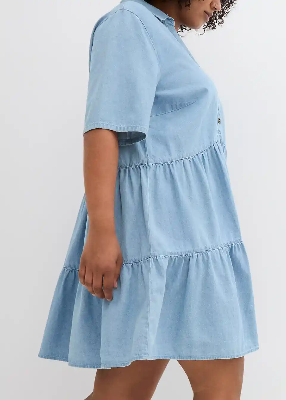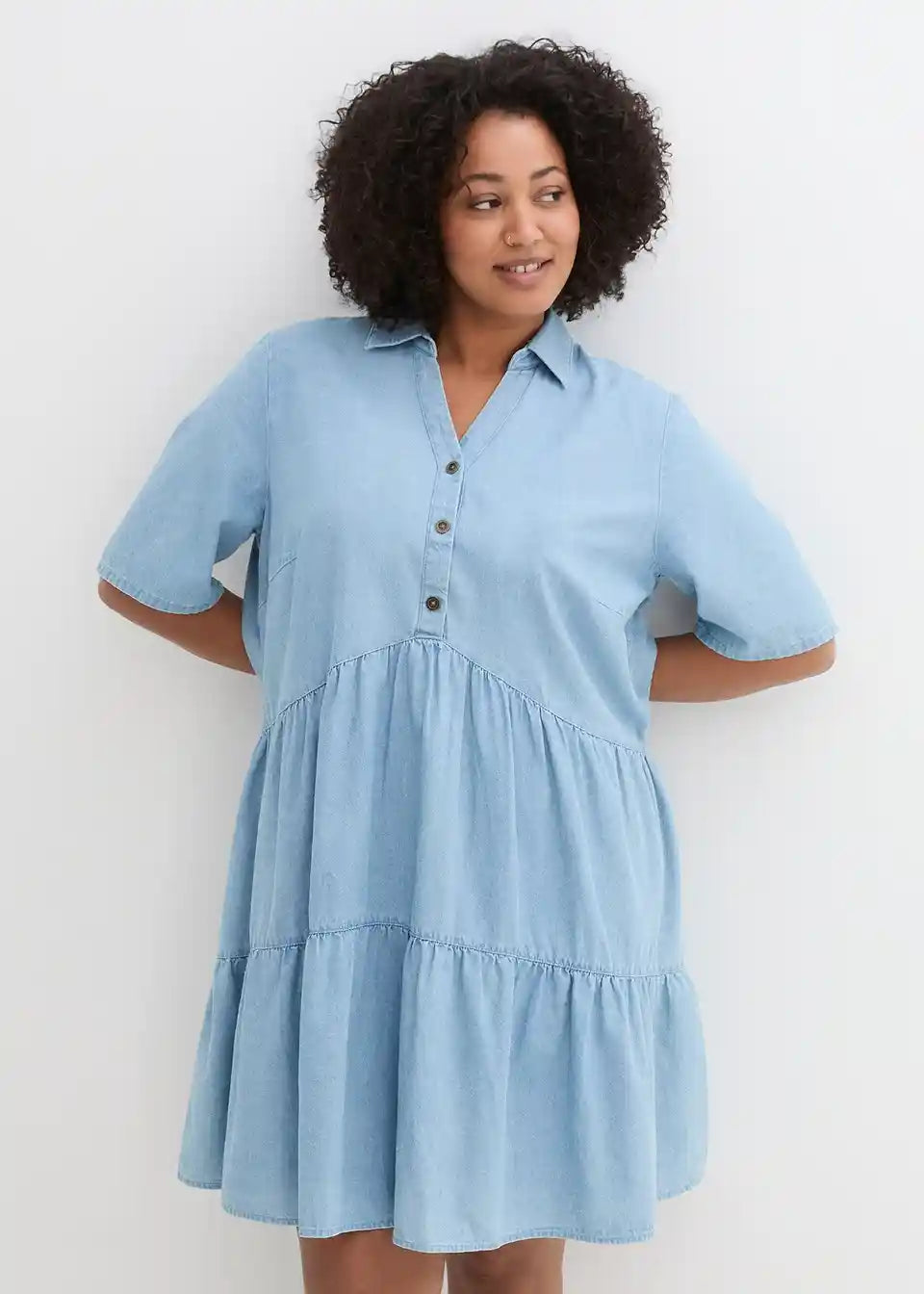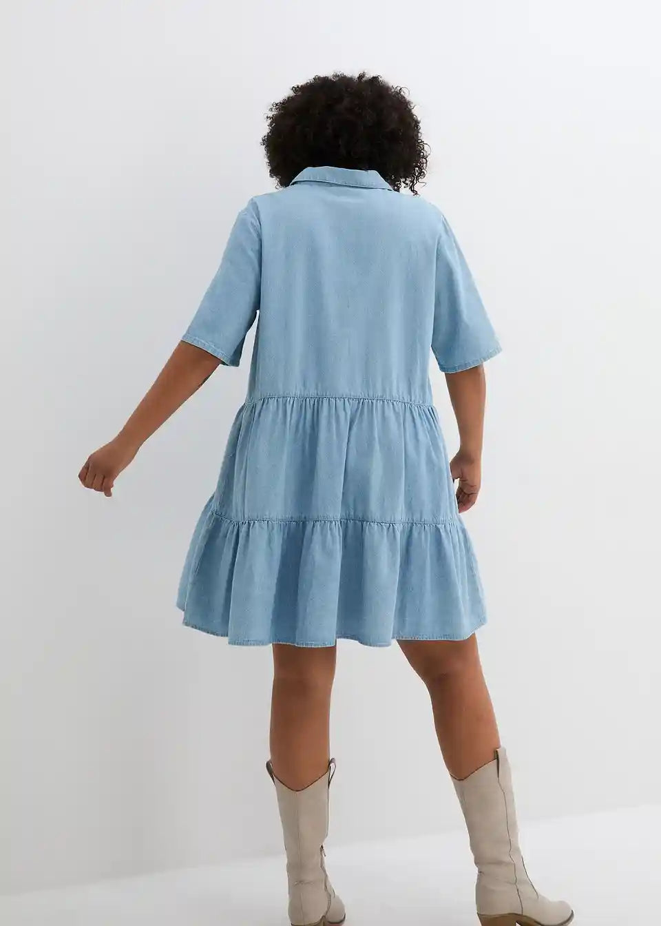 A-linijska jeans obleka z V-izrezom