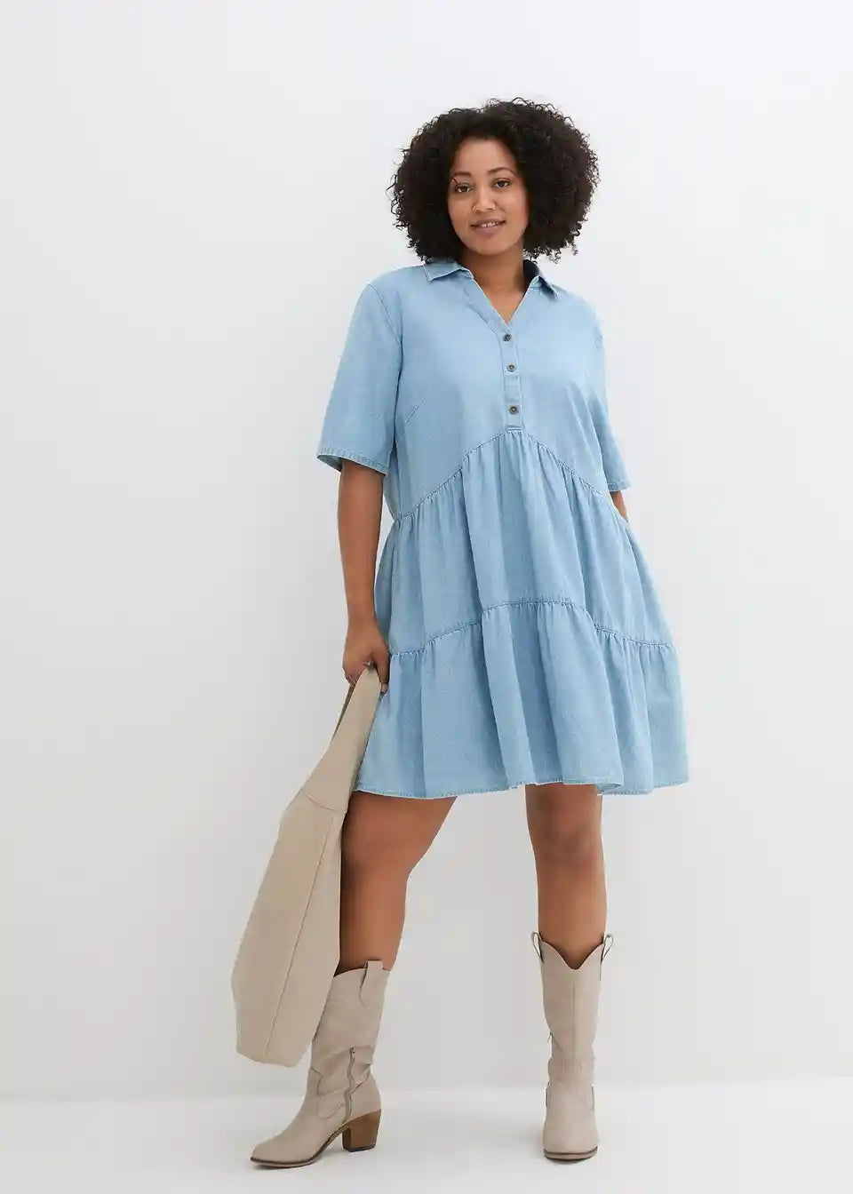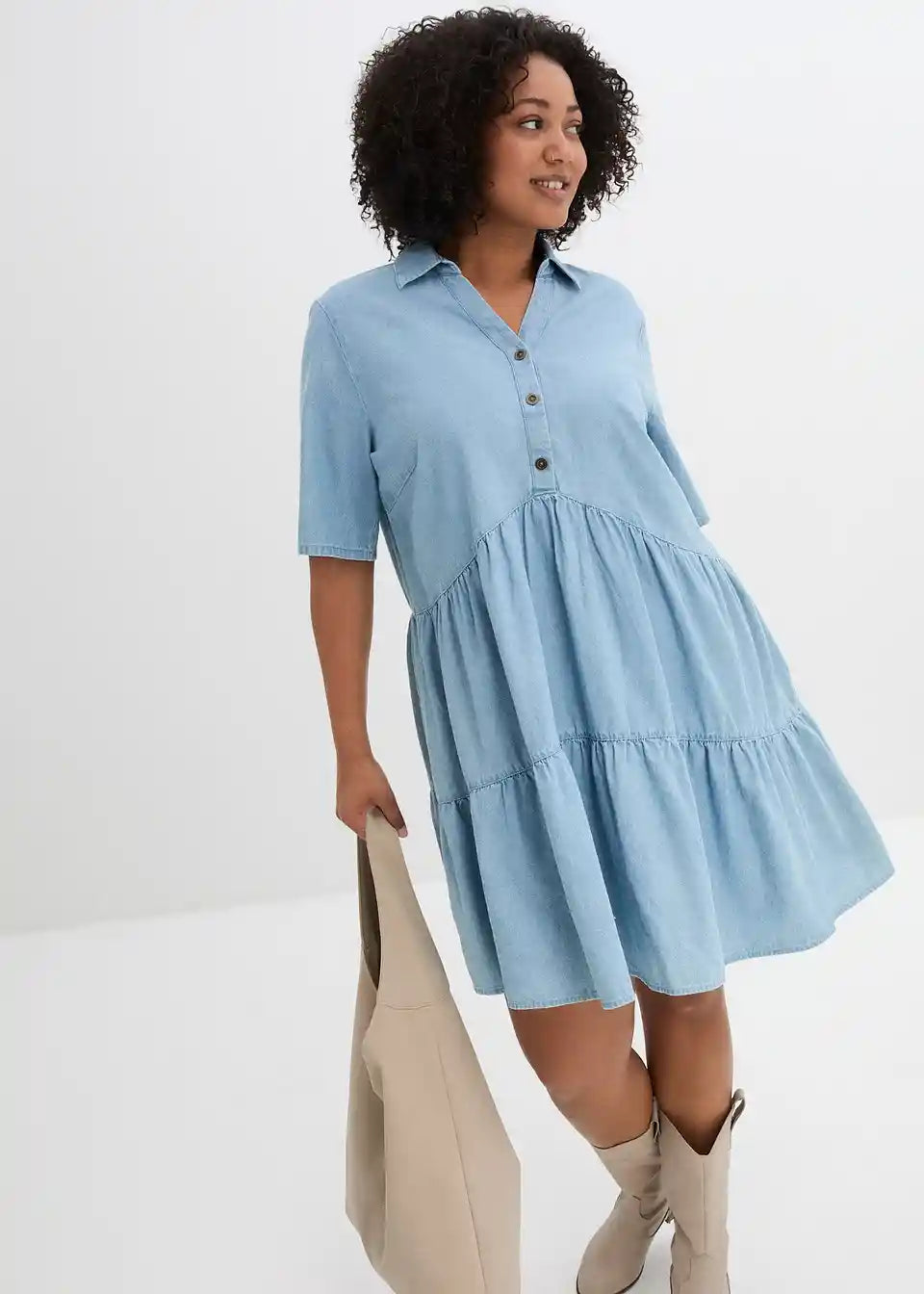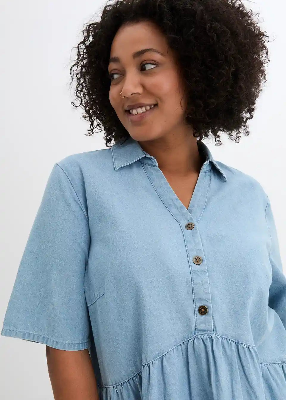 A-linijska jeans obleka z V-izrezom