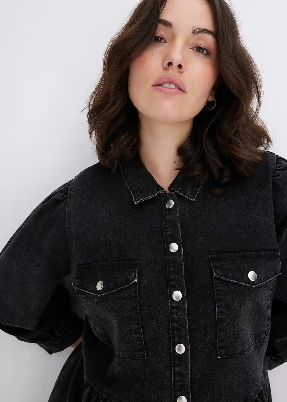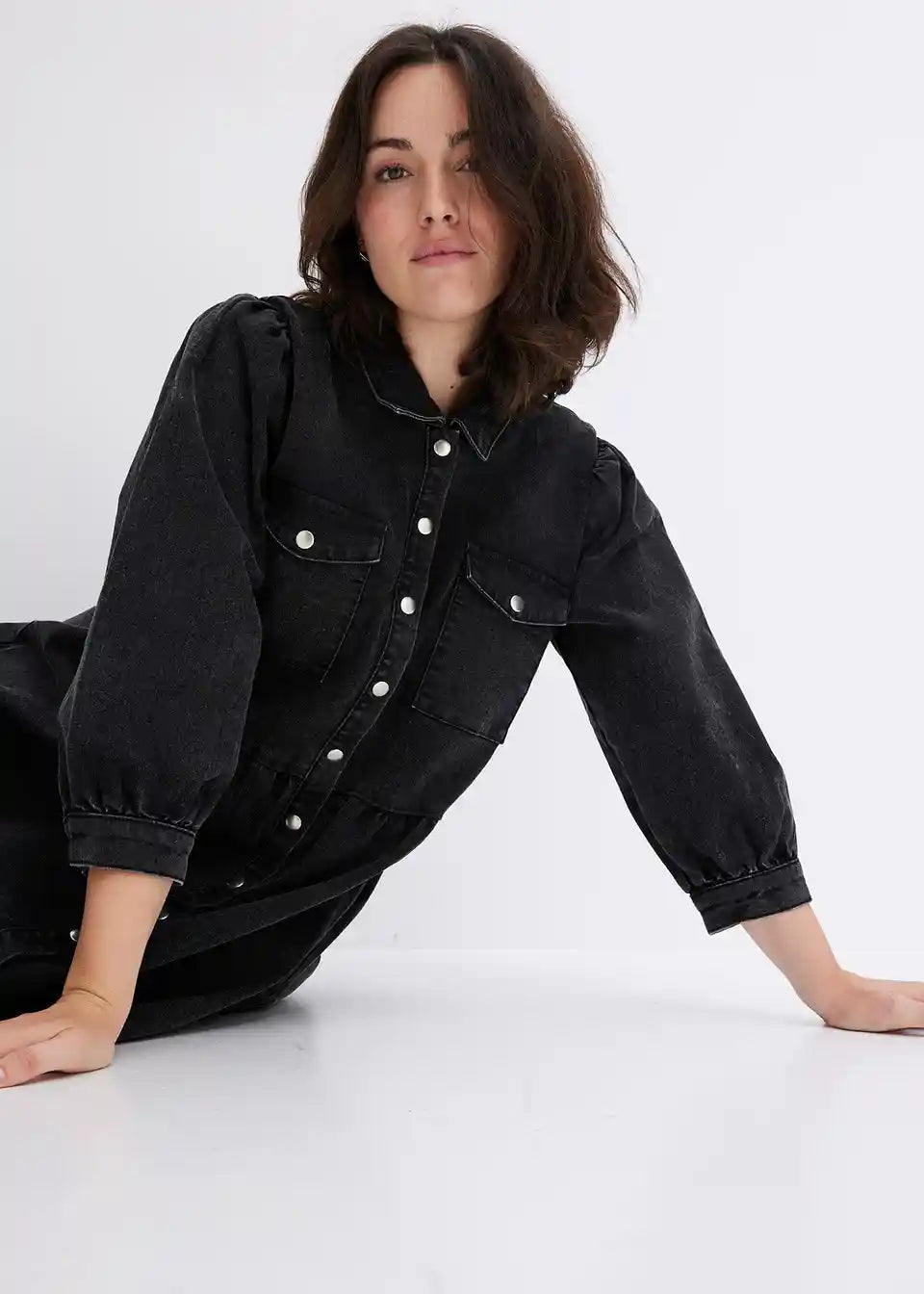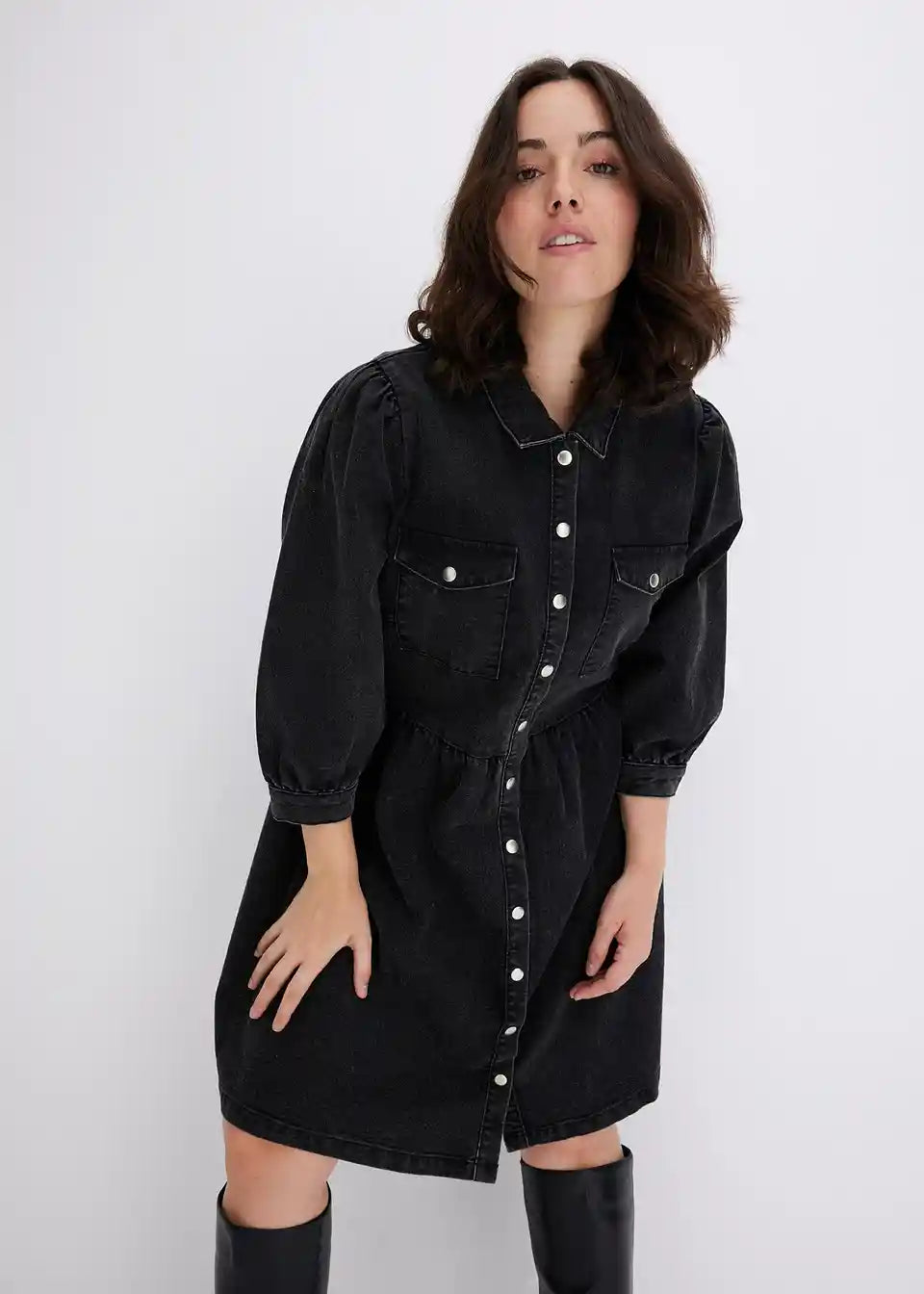 modna jeans obleka s sprednjim zapenjanjem na gumbe