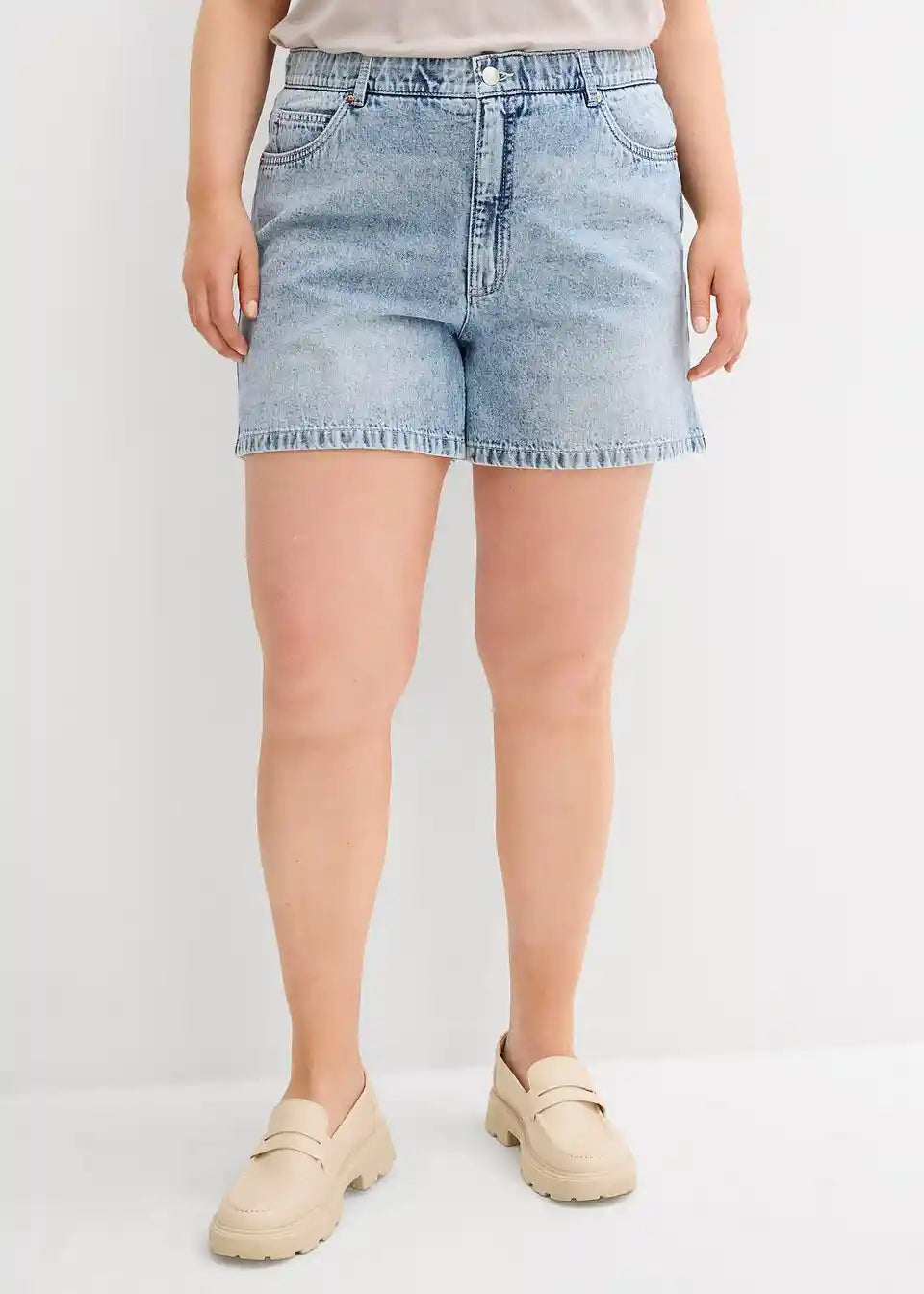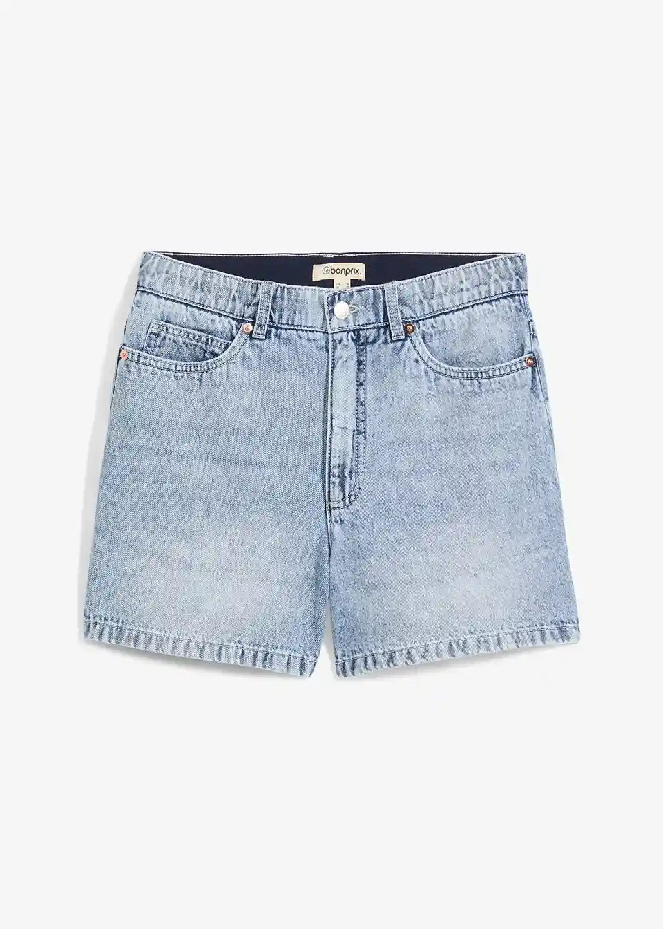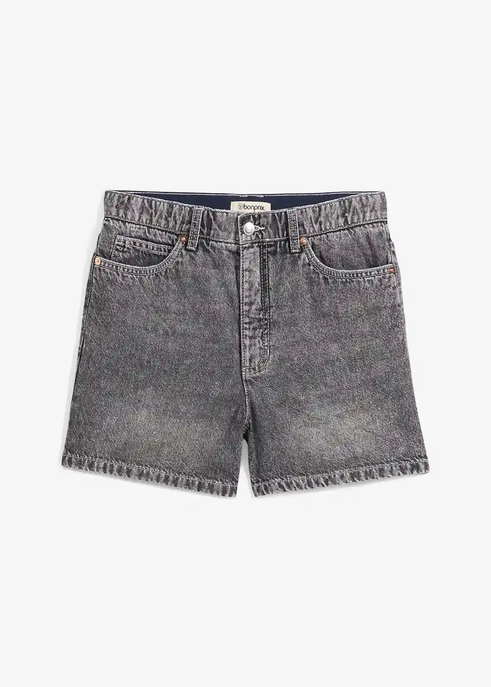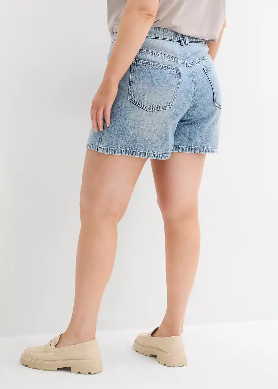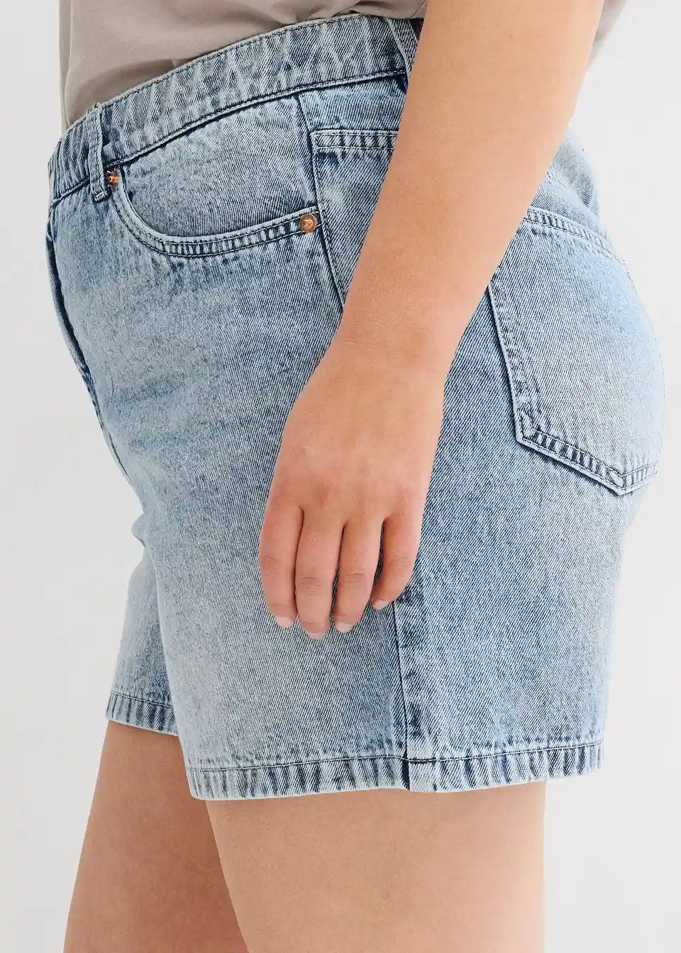 Ohlapne 5-žepne kratke hlače iz trdnega bombažnega denima, ki je sprva nekoliko trd, z nošenjem pa postane mehkejši in bolj udoben. Visok pas z zadrgo in gumbom. Dolžina notranjega šiva pri velikosti 42 cca 11,5 cm, primerno za pranje v pralnem stroju.
