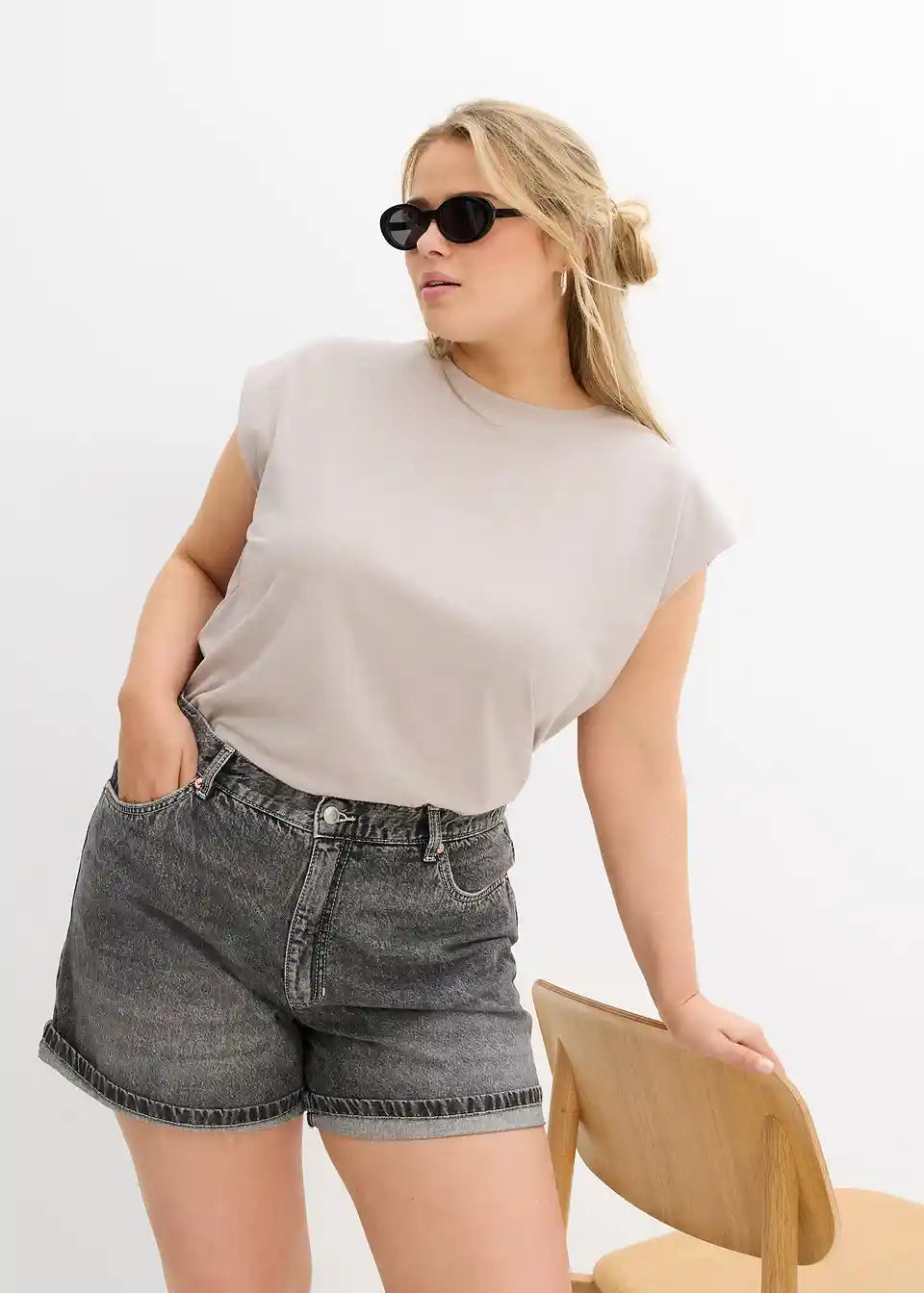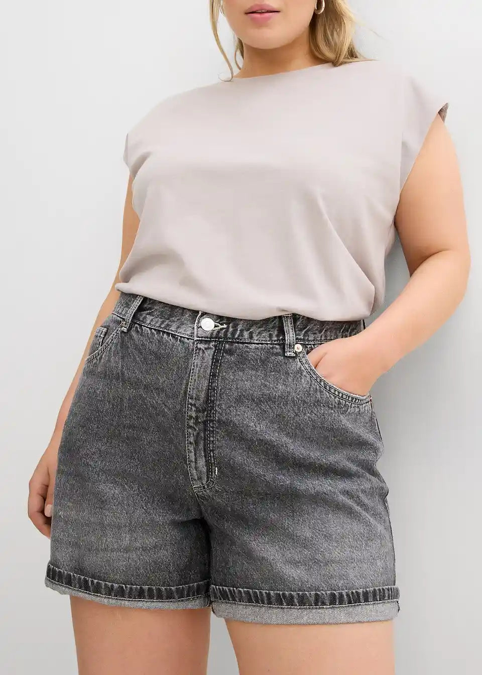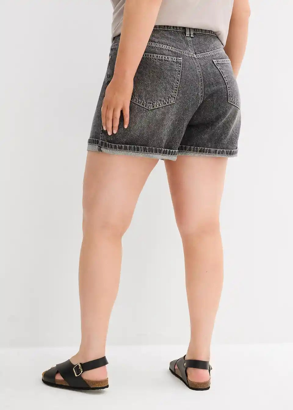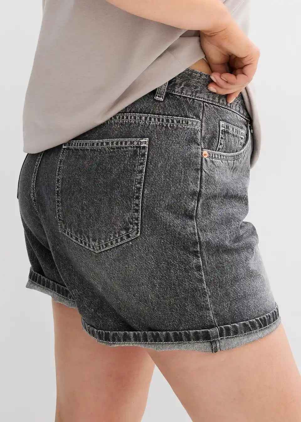Ohlapne 5-žepne kratke hlače iz trpežnega bombažnega denima, ki je na začetku nekoliko tog, a z nošenjem postane mehkejši in bolj udoben. Visok pas z zadrgo in gumbom. Dvakrat zavihani rob. Dolžina notranjega šiva pri st. 42 cca 11,5 cm, primerno za pranje v pralnem stroju.