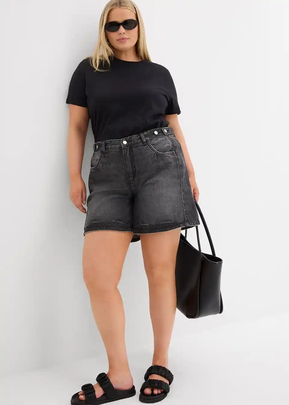 Ohlapne 5-žepne kratke hlače iz čvrstega bombažnega denima, ki je sprva nekoliko tog, z nošenjem pa postane mehkejši in bolj udoben. Srednje visok pas z nastavljivim paščkom v pasu. Dolžina notranjega šiva pri velikosti 42 cca 16,5 cm, pralno v pralnem stroju.