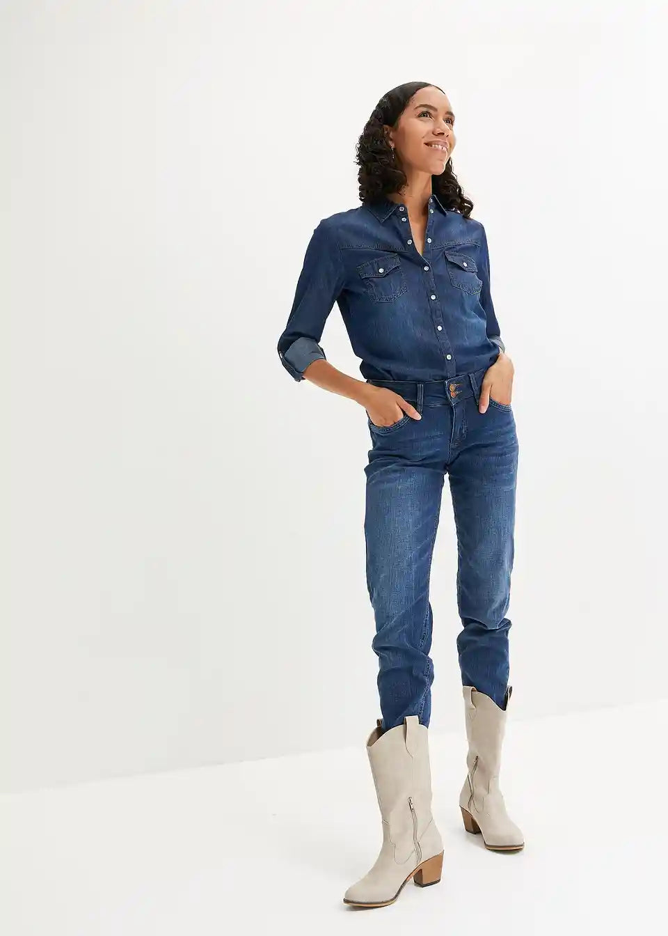 S to jeans srajco blagovne znamke John Baner dobite vsestranski talent za vašo garderobo. Jeans srajca izstopa s kontrastnimi pritiskači in prišitimi prsnimi žepi. Dolžino rokavov je mogoče prilagajati ter jih pritrditi s pritiskačem in zanko. To jeans srajco lahko nosite samostojno ali čez majice in kombinirate z jeansi ali hlačami chino kroja.