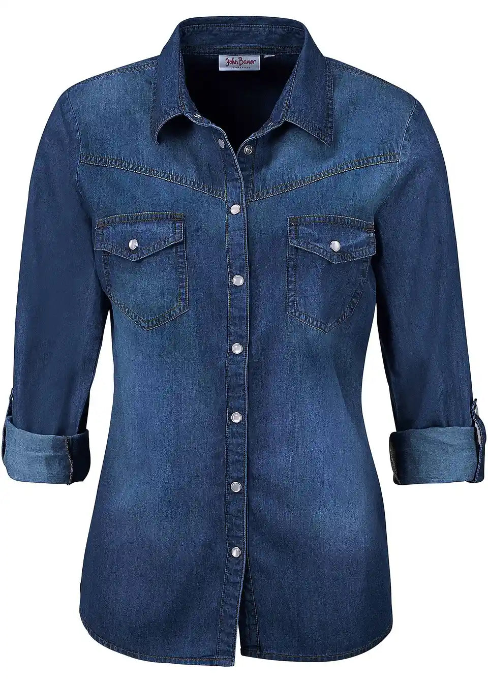 S to jeans srajco blagovne znamke John Baner dobite vsestransko oblačilo za vašo garderobo. Jeans srajca se ponaša s kontrastnimi pritiskači in apliciranimi prsni žepi. Dolžino rokavov je mogoče prilagoditi in jih pritrditi z gumbom in zavihkom. Nosite to jeans srajco samostojno ali čez tope ter jo kombinirajte z jeans ali chinos hlačami.