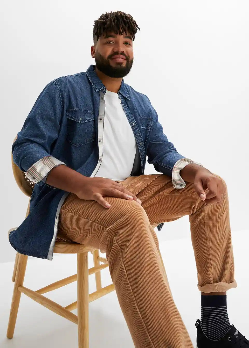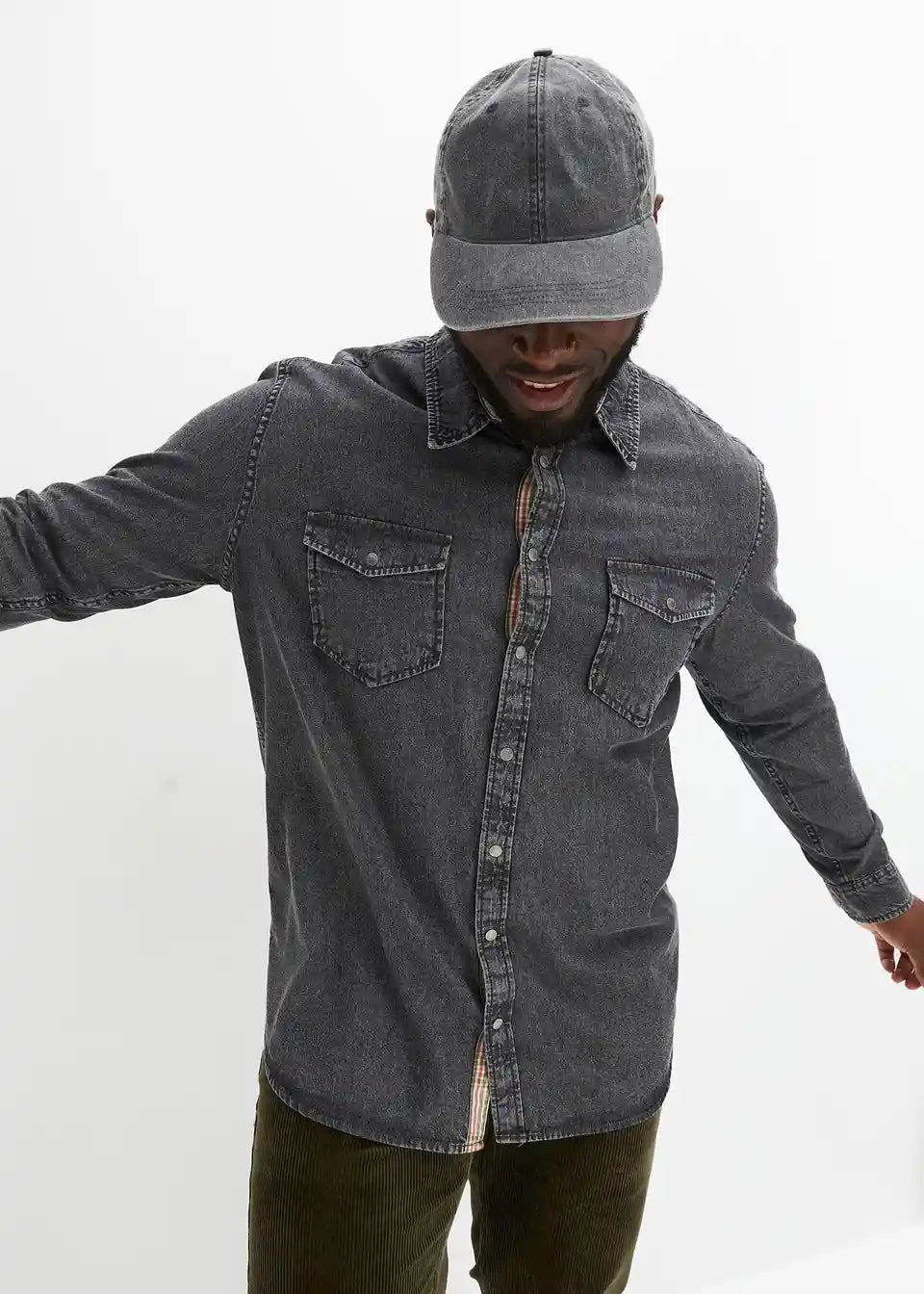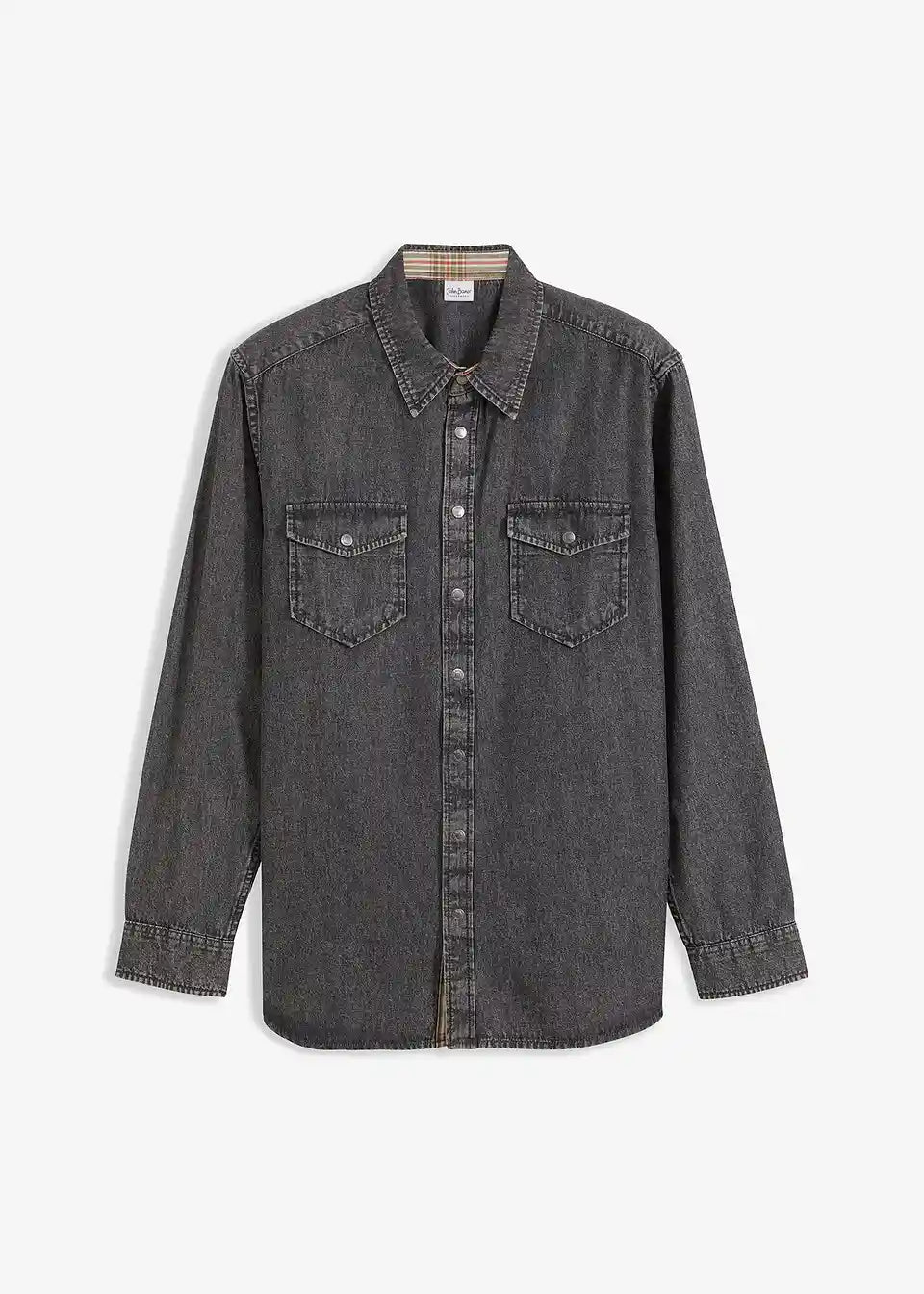 Moderna jeans srajca s kontrasti na notranji manšeti in notranjem ovratniku