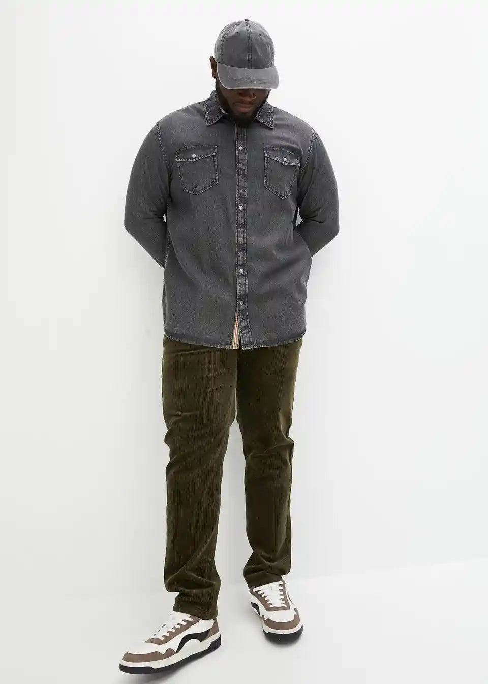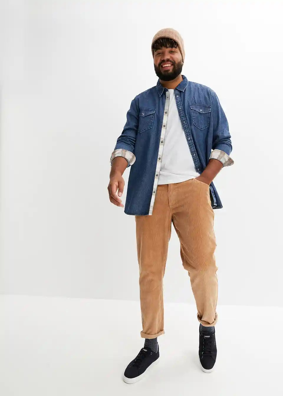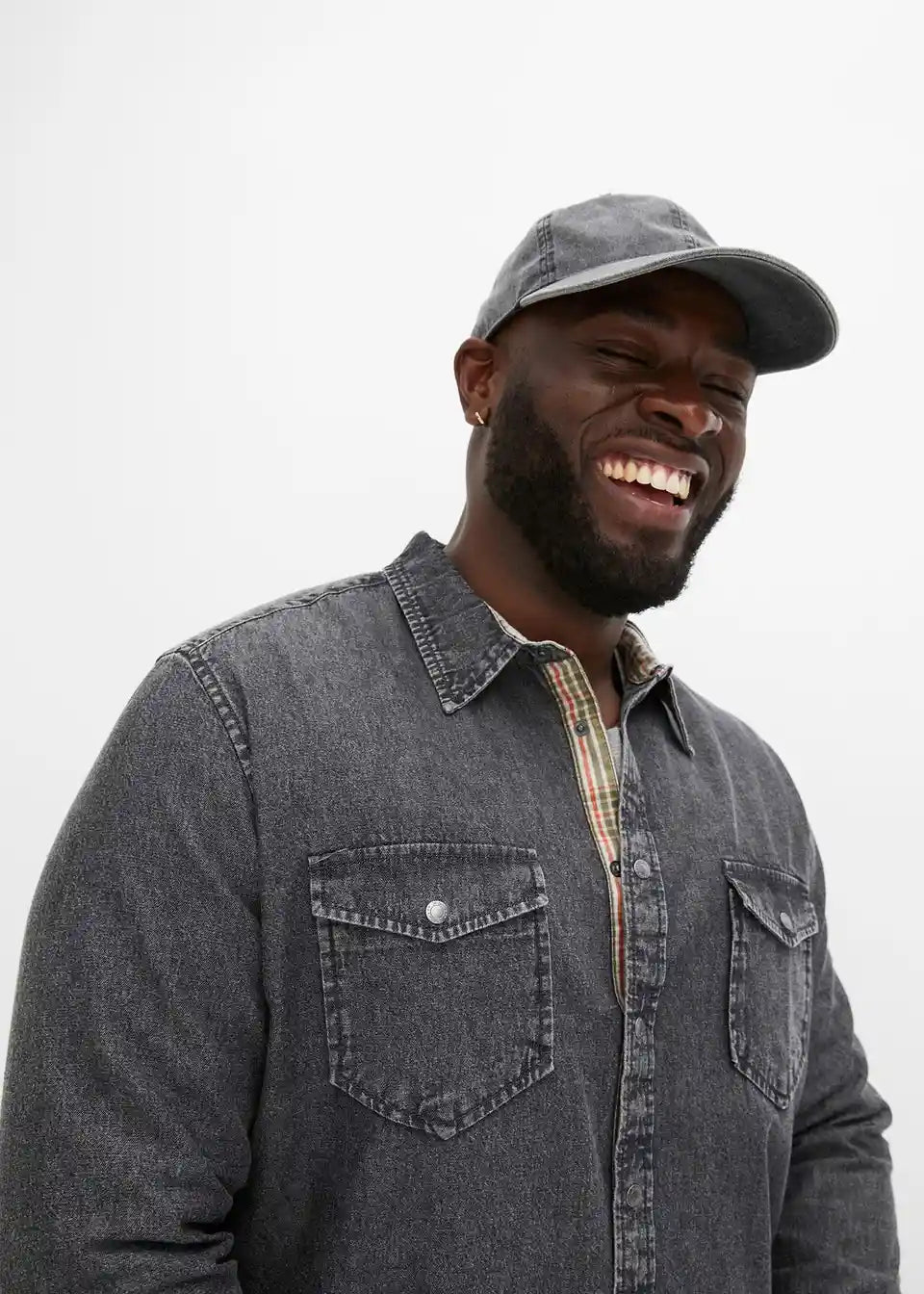 Moderna jeans srajca s kontrasti na notranji manšeti in notranjem ovratniku
